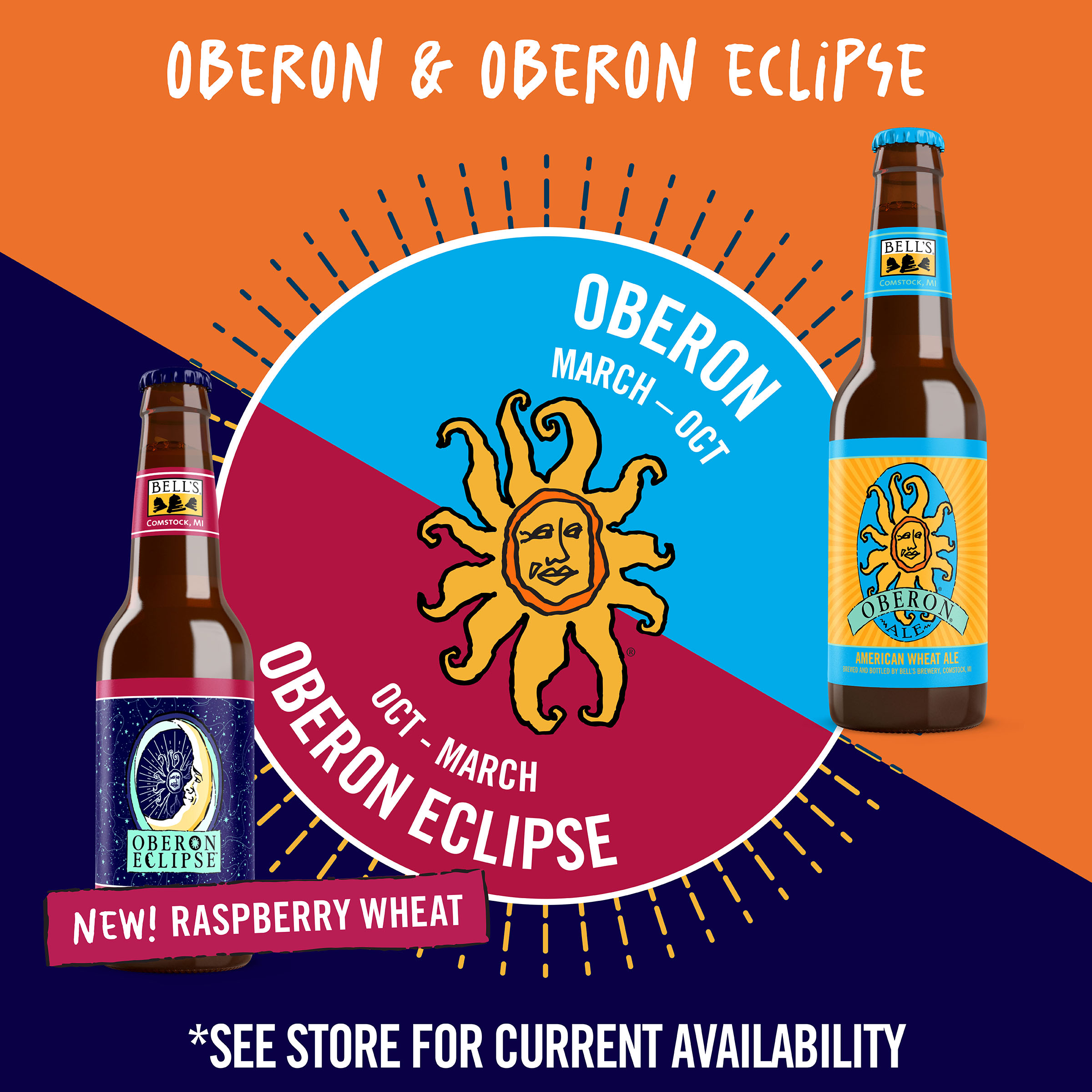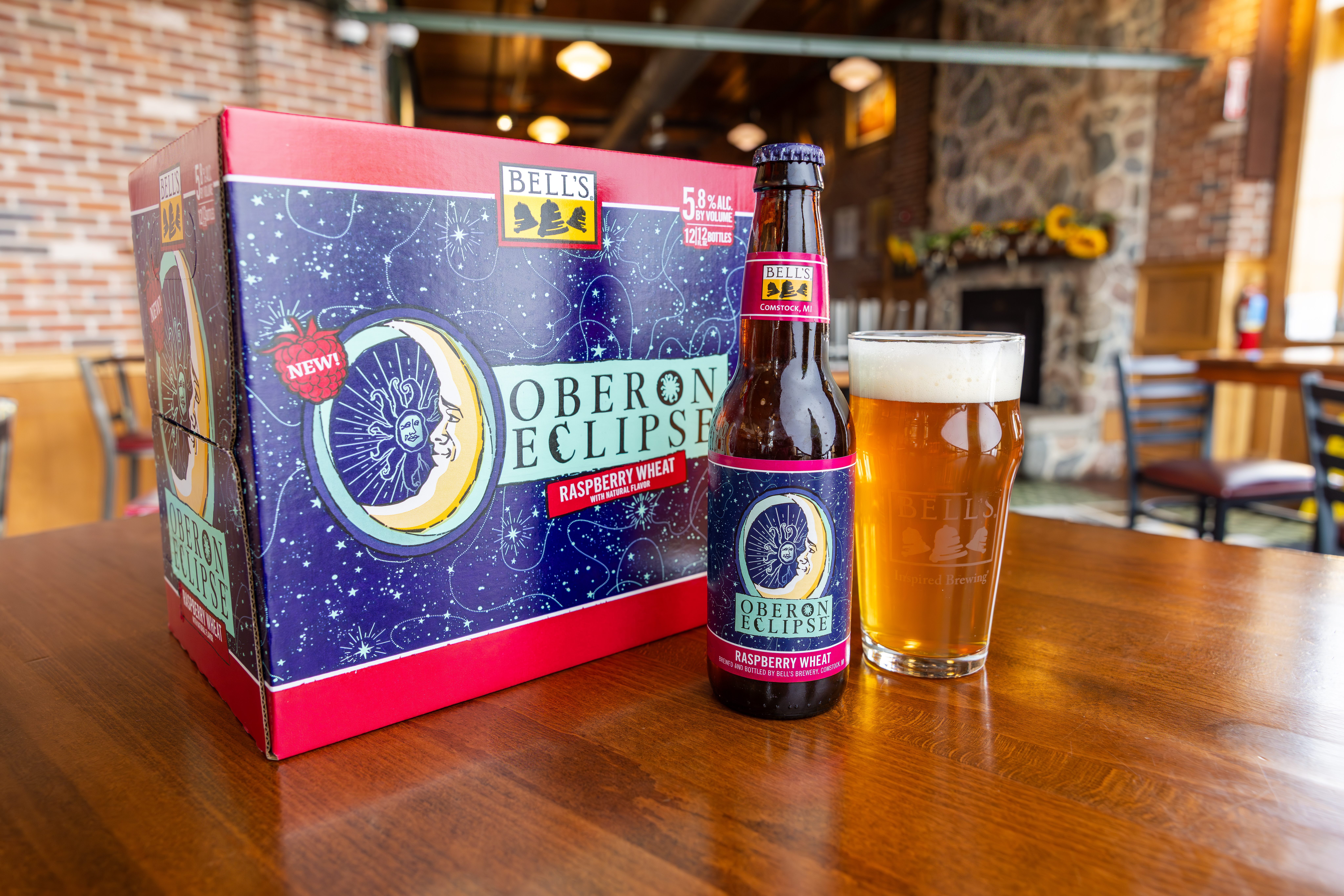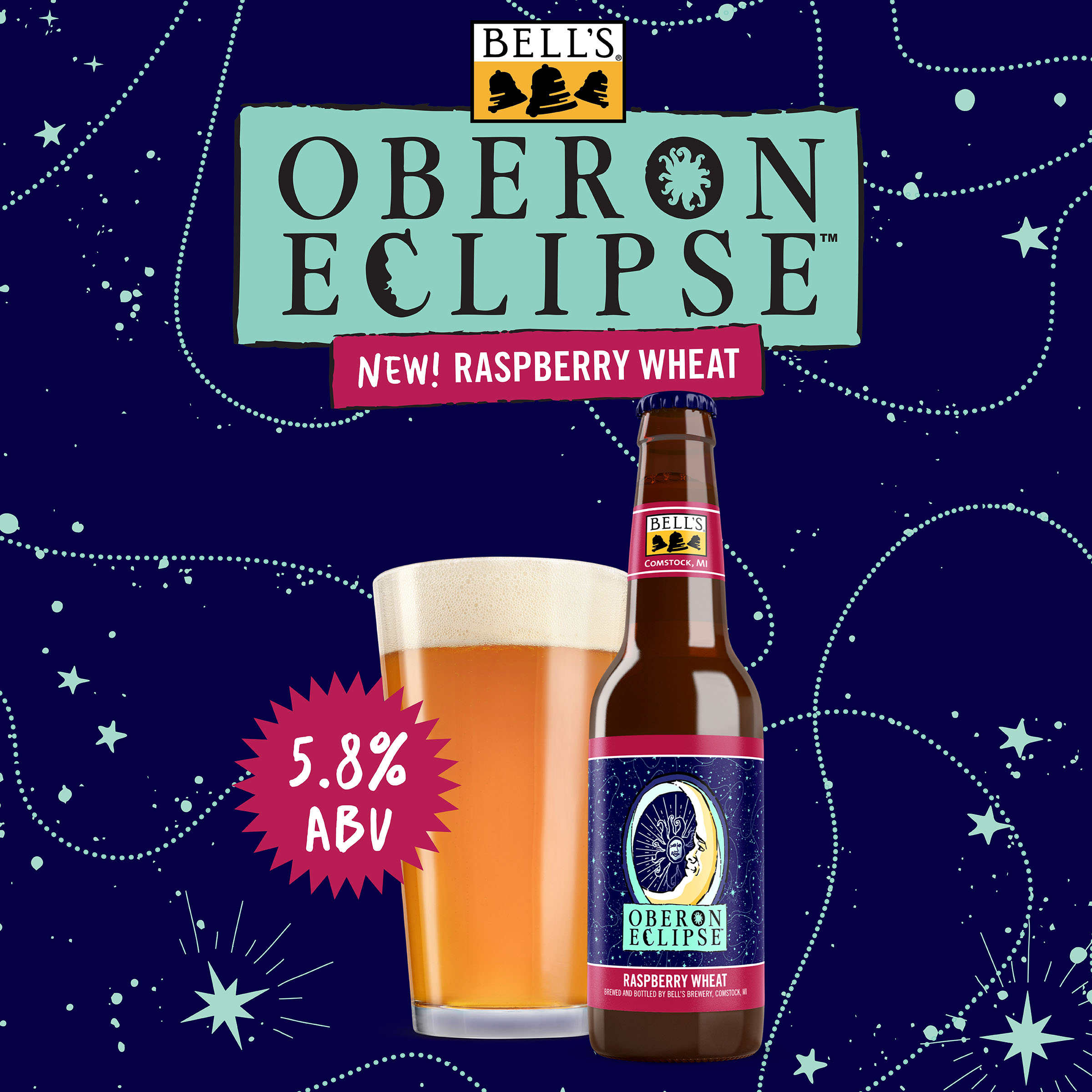 When the sun sets early, you've gotta make your own sunshine. Oberon Raspberry Eclipse is the latest incarnation of Bell’s Brewery’s Oberon family. A seasonal Raspberry Wheat Ale fermented with our signature house ale yeast, it contains subtle notes of bright raspberry that complement the wheat malt, giving it the perfect balance. Easy-drinking and refreshing, it's the perfect beer for cozy nights spent in good company. Shine on. 5.8% ABV. Brewed by Bell’s Brewing, which has been creating high quality craft beers in Michigan since 1985. UOM is 12 fluid ounces. Count per pack: twelve bottles. This release is seasonal, so get sipping while you can! Please note, it’s possible that you may get a different beer than the one shown on the website if your store is transitioning from Oberon Eclipse to Oberon.