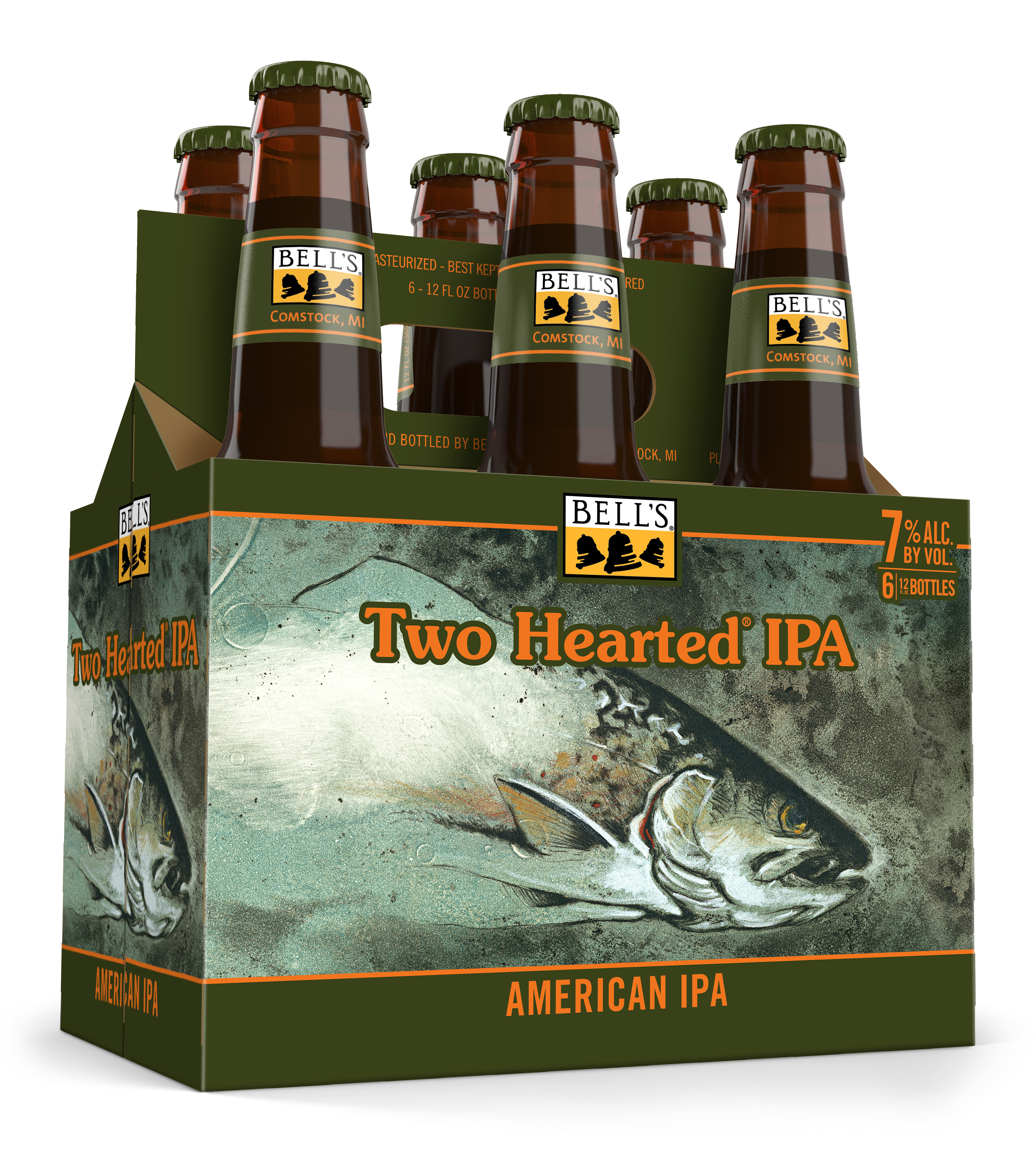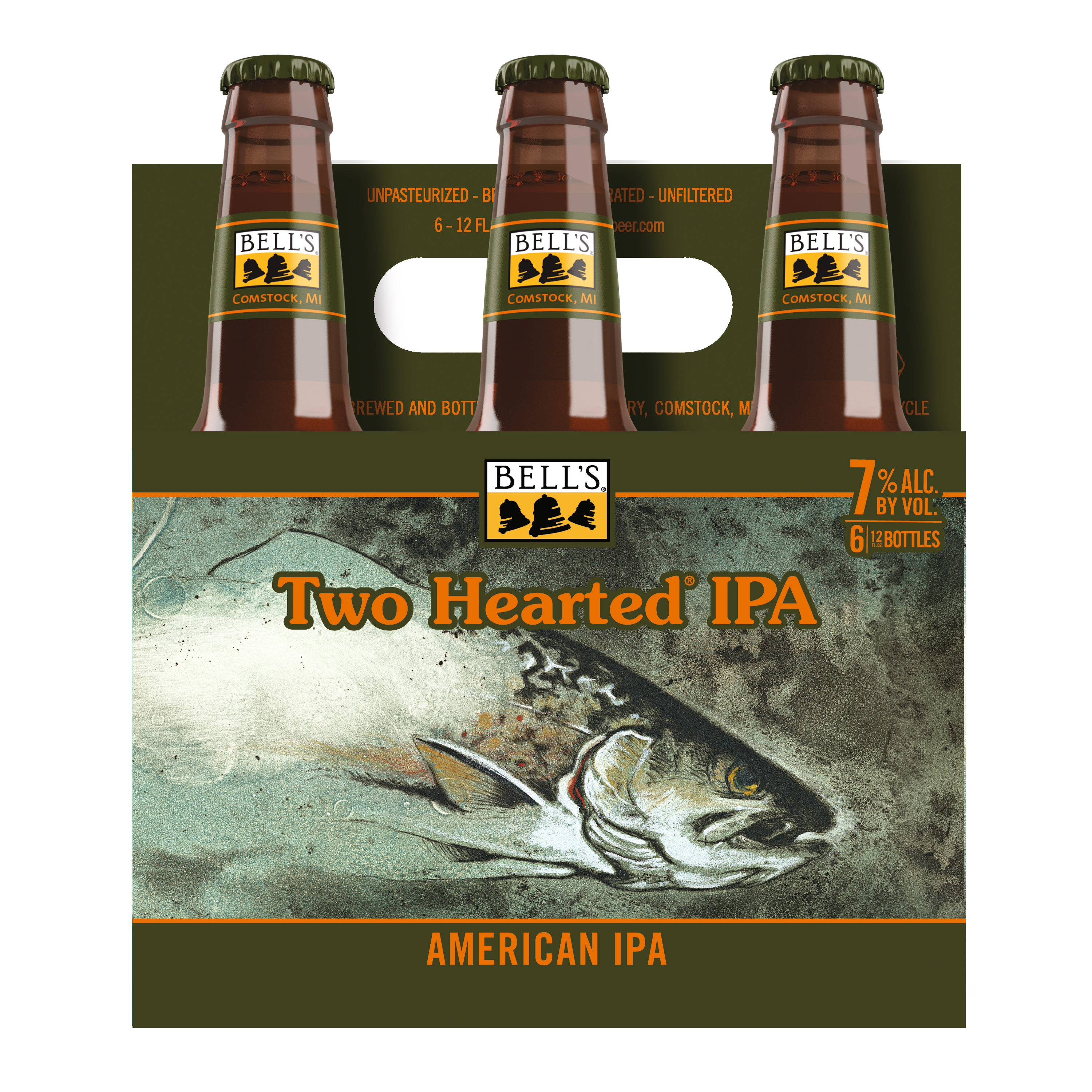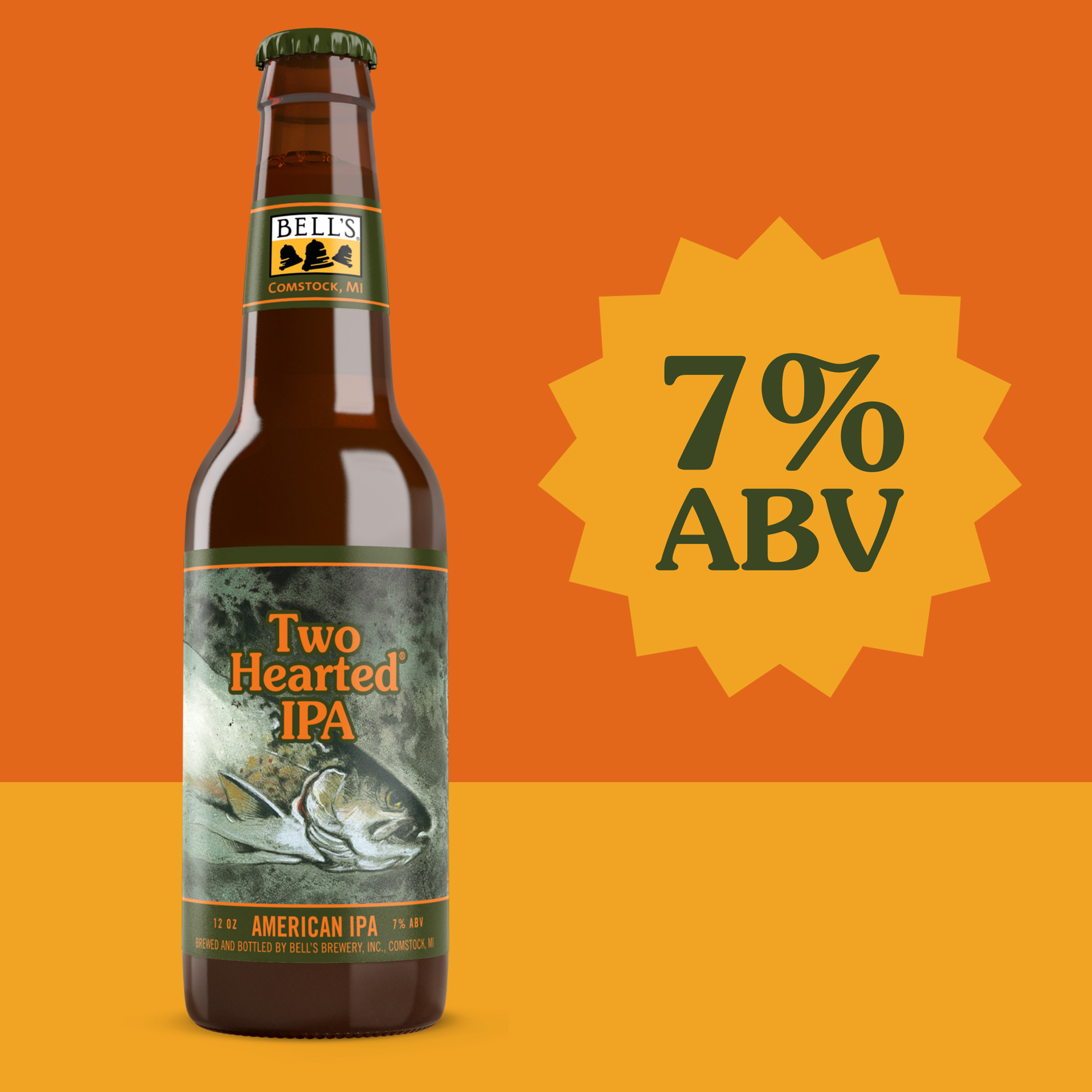 Two Hearted IPA from Bell's Brewery is an iconic American IPA suited for adventures everywhere. It's bursting with fresh hop aromas from 100% Centennial hops. It features bright, satisfying flavors that are smooth and refreshing. Two Hearted is piney, malty and bitter-forward, with hints of citrus. Overall, it is a very classic, balanced, and drinkable IPA. Named after fishing waters in Michigan's Upper Peninsula, Two Hearted is beloved by longtime and new craft beer drinkers alike. Two Hearted IPA is proudly brewed by Bell’s Brewing. Since 1985, Bell’s has been committed to quality and flavor. 7% ABV. UOM is 12 fluid ounces. Count per pack: six bottles.