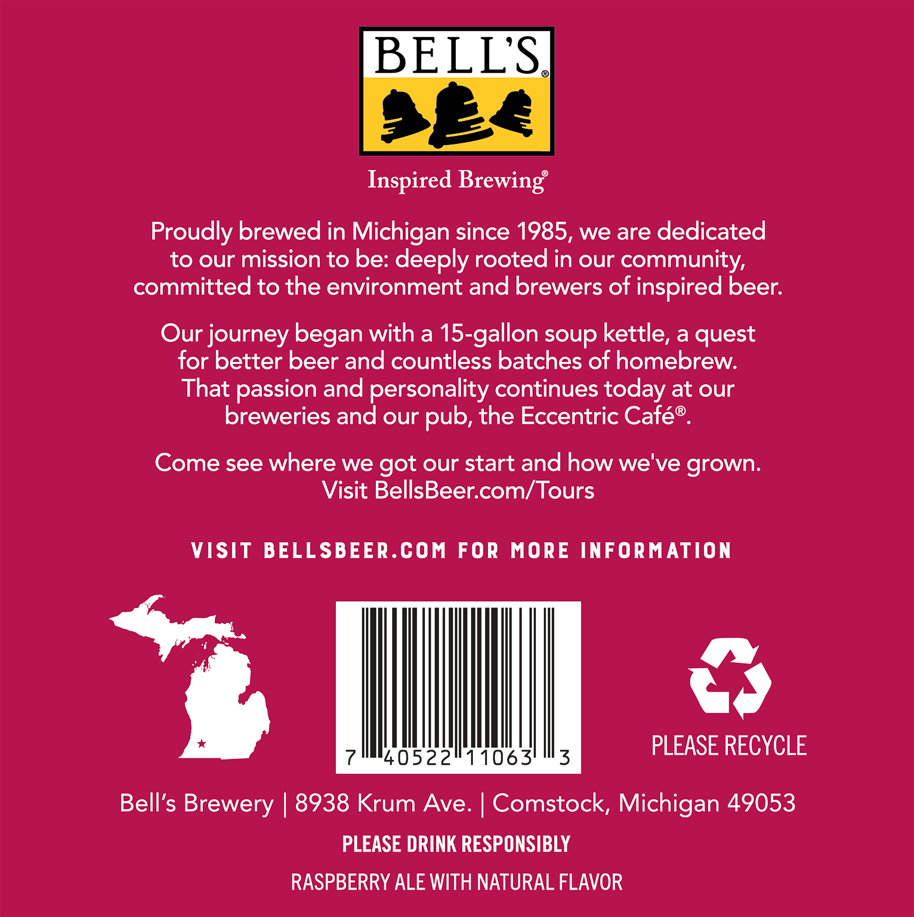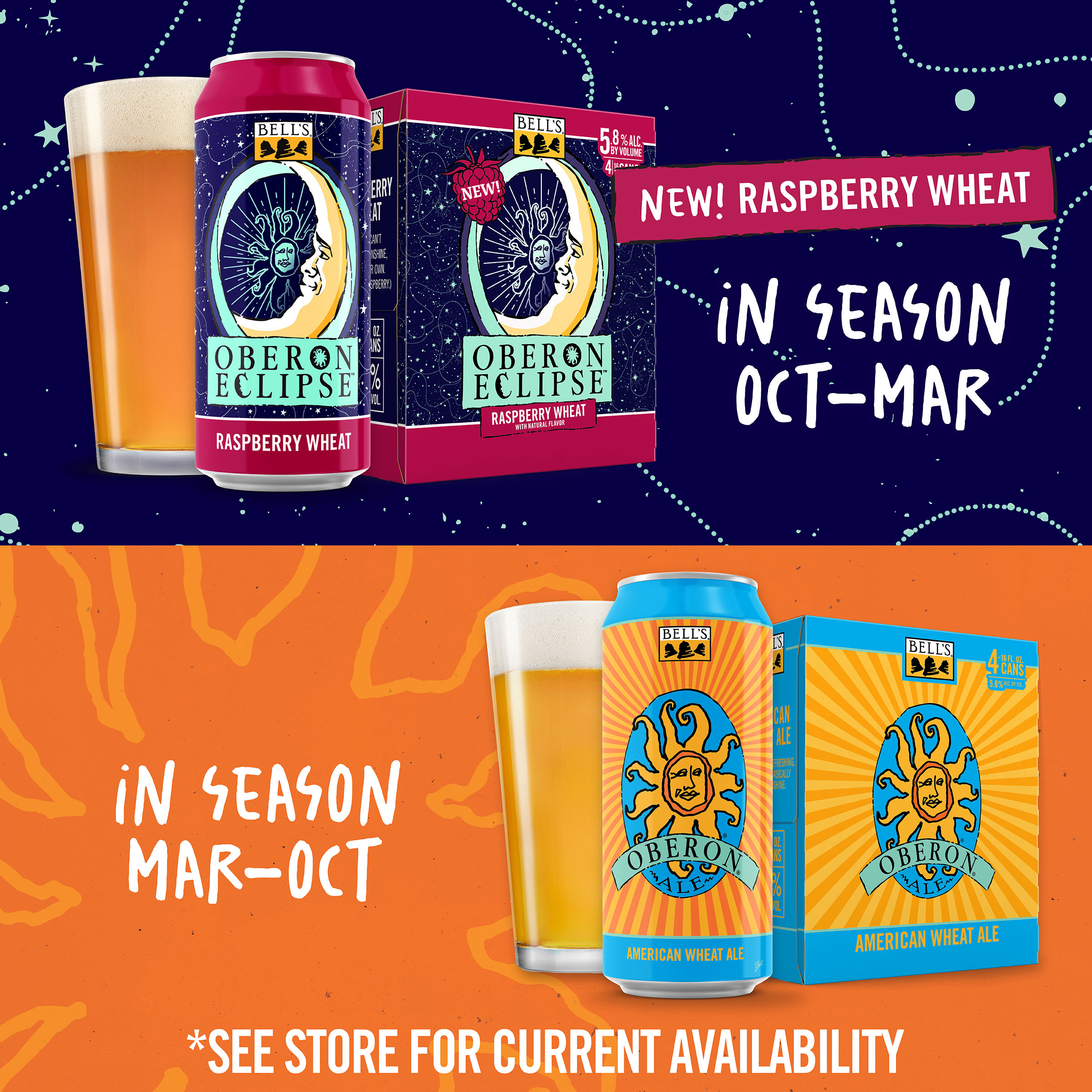 When the sun sets early, you've gotta make your own sunshine. Oberon Raspberry Eclipse is the latest incarnation of Bell’s Brewery’s Oberon family. A seasonal Raspberry Wheat Ale fermented with our signature house ale yeast, it contains subtle notes of bright raspberry that complement the wheat malt, giving it the perfect balance. Easy-drinking and refreshing, it's the perfect beer for cozy nights spent in good company. Shine on. 5.8% ABV. Brewed by Bell’s Brewing, which has been creating high quality craft beers in Michigan since 1985. UOM is 16 fluid ounces. Count per pack: four cans. This release is seasonal, so get sipping while you can! Please note, it’s possible that you may get a different beer than the one shown on the website if your store is transitioning from Oberon Eclipse to Oberon.