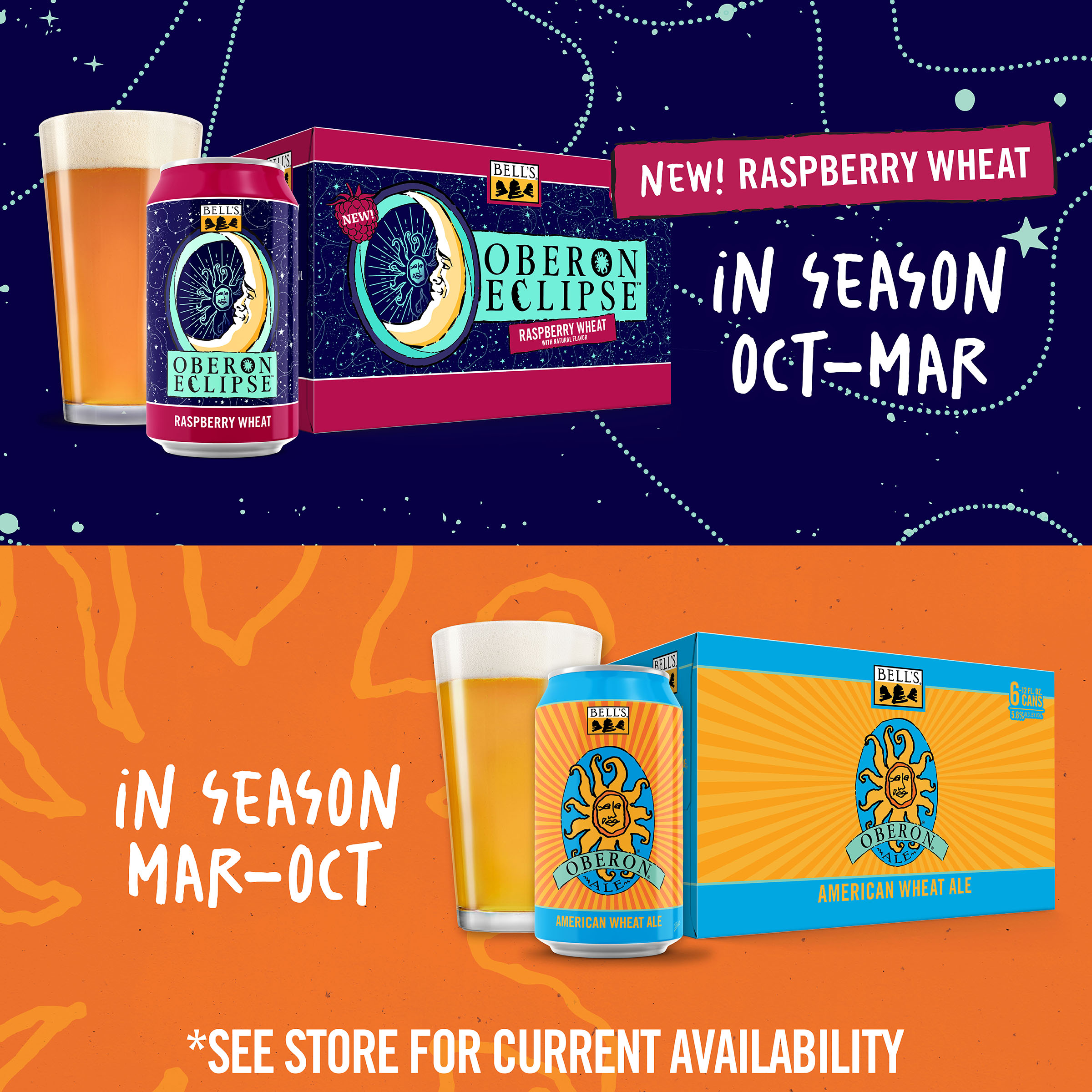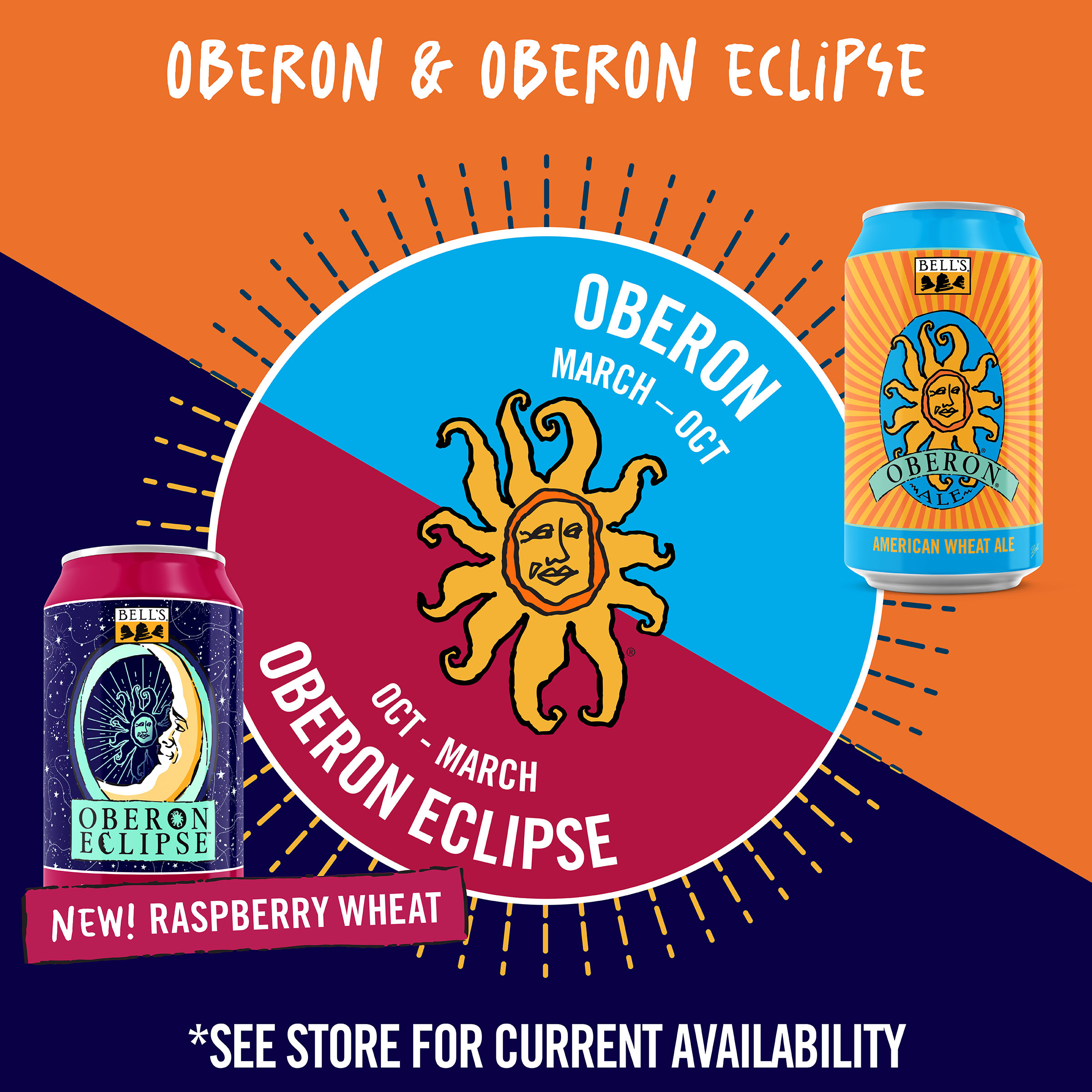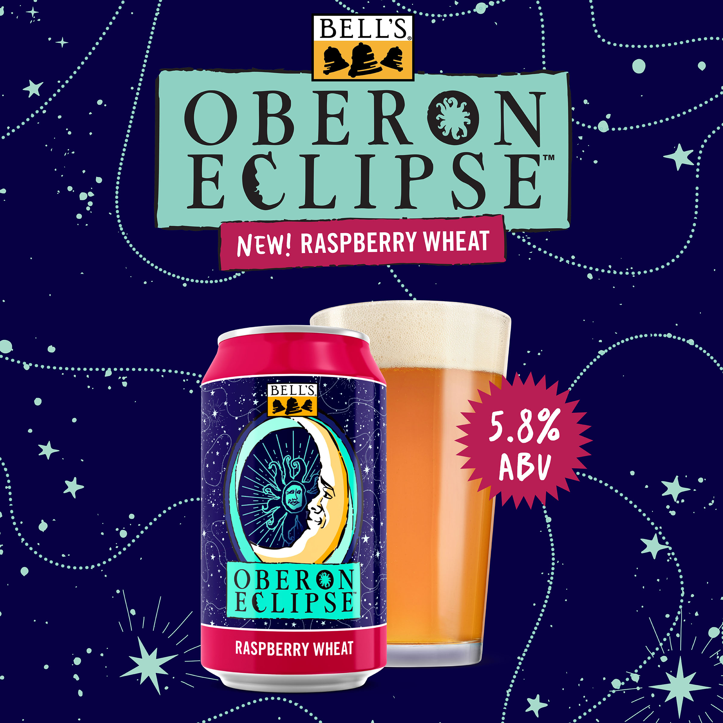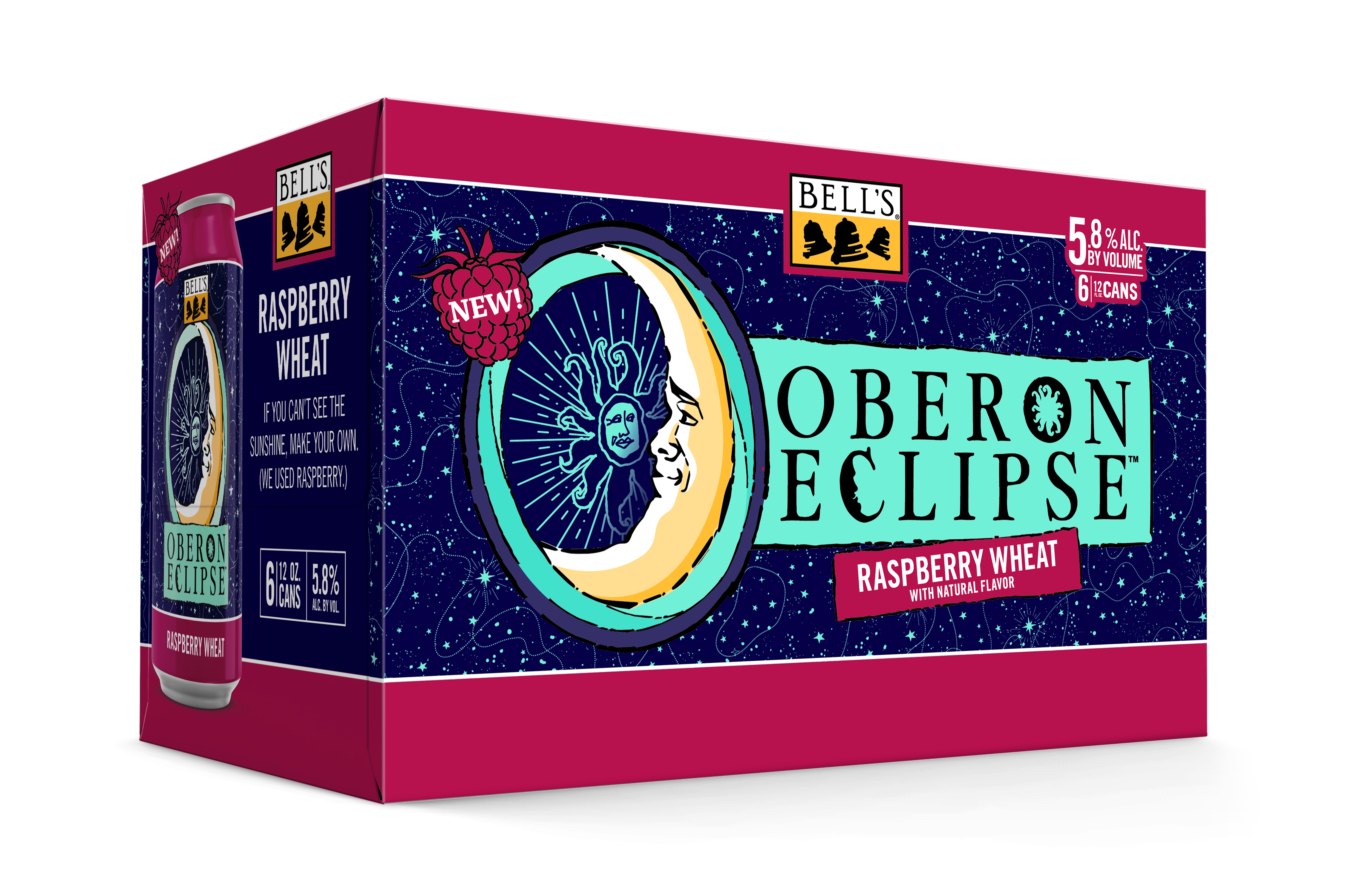 When the sun sets early, you've gotta make your own sunshine. Oberon Raspberry Eclipse is the latest incarnation of Bell’s Brewery’s Oberon family. A seasonal Raspberry Wheat Ale fermented with our signature house ale yeast, it contains subtle notes of bright raspberry that complement the wheat malt, giving it the perfect balance. Easy-drinking and refreshing, it's the perfect beer for cozy nights spent in good company. Shine on. 5.8% ABV. Brewed by Bell’s Brewing, which has been creating high quality craft beers in Michigan since 1985. UOM is 12 fluid ounces. Count per pack: six cans. This release is seasonal, so get sipping while you can! Please note, it’s possible that you may get a different beer than the one shown on the website if your store is transitioning from Oberon Eclipse to Oberon.