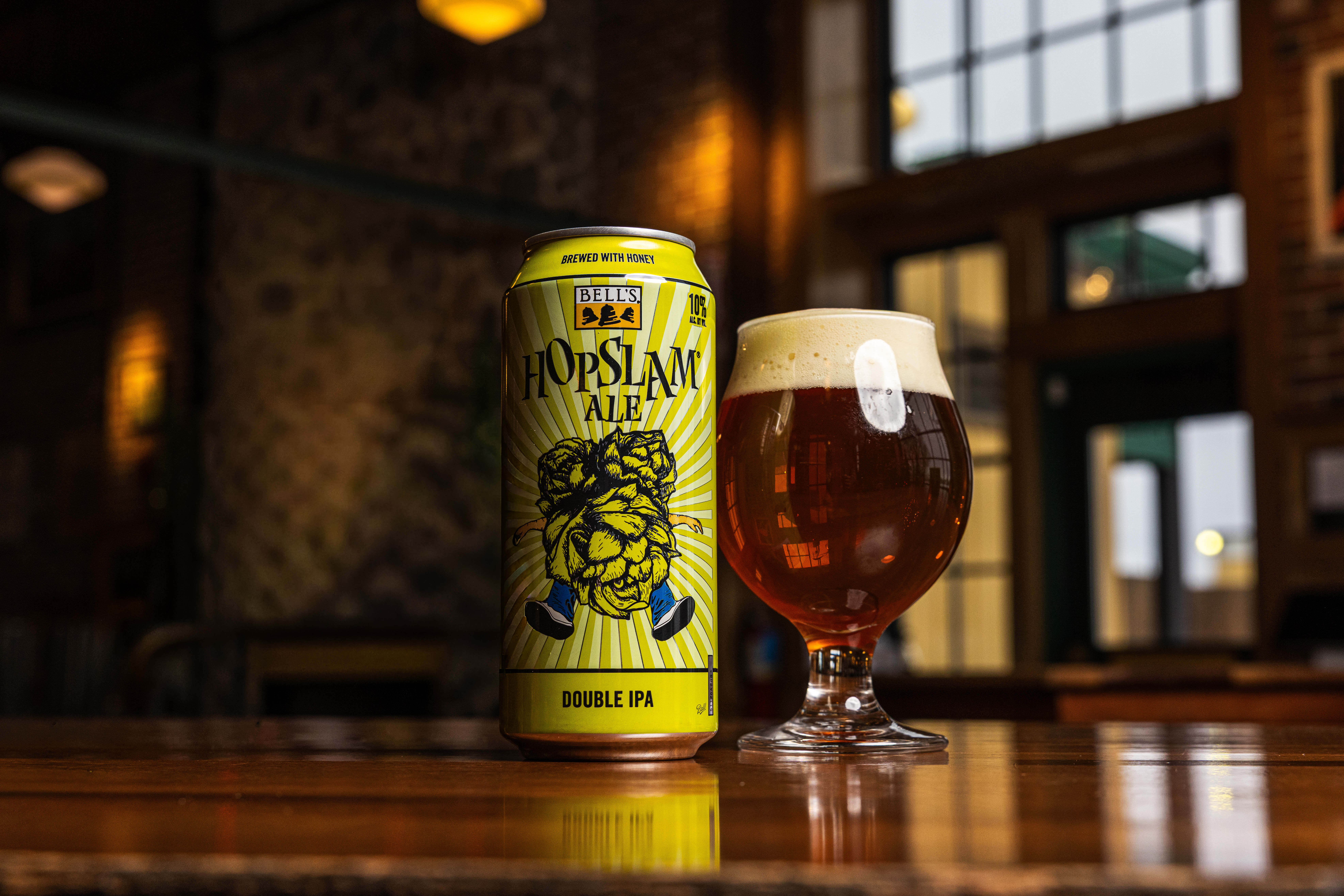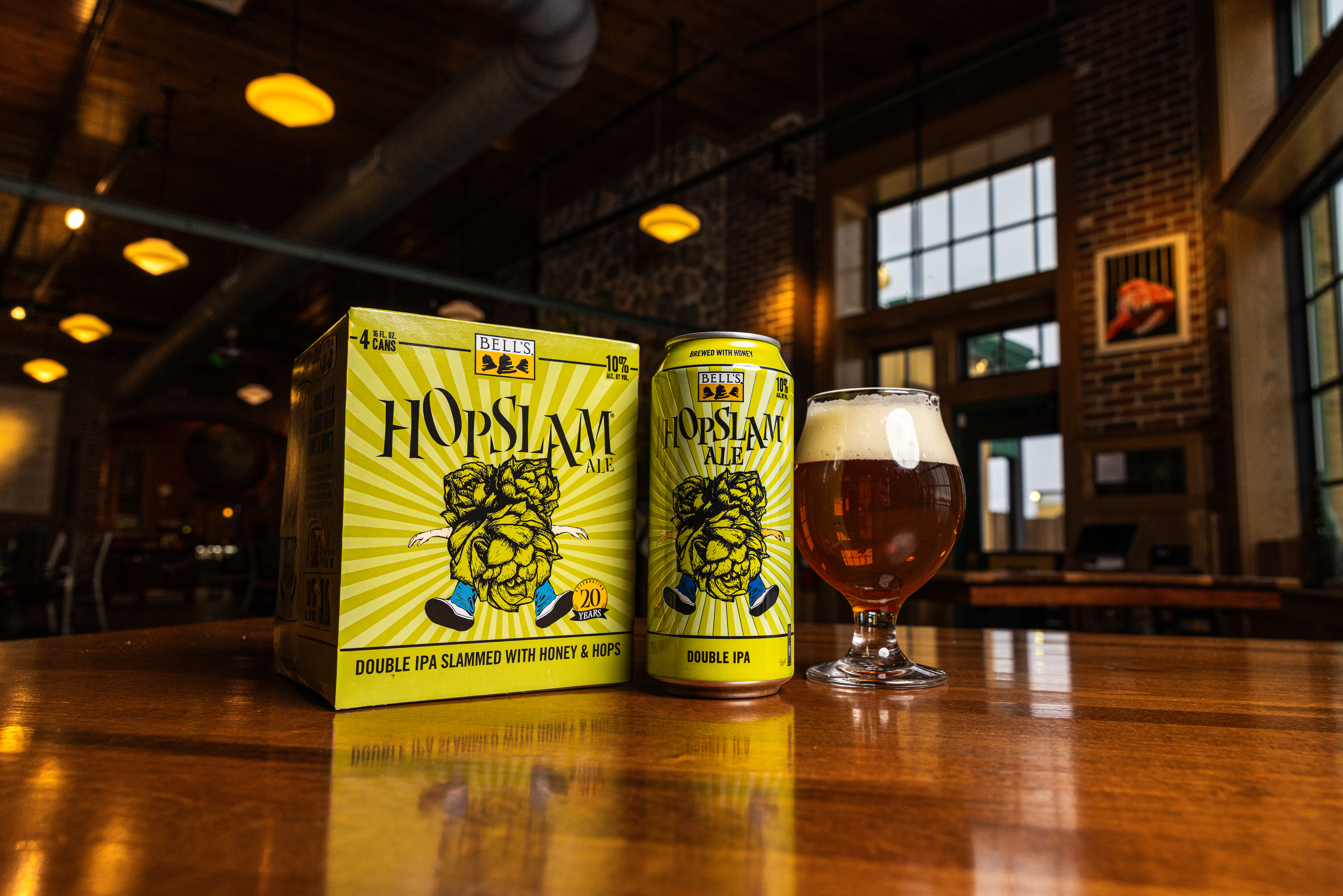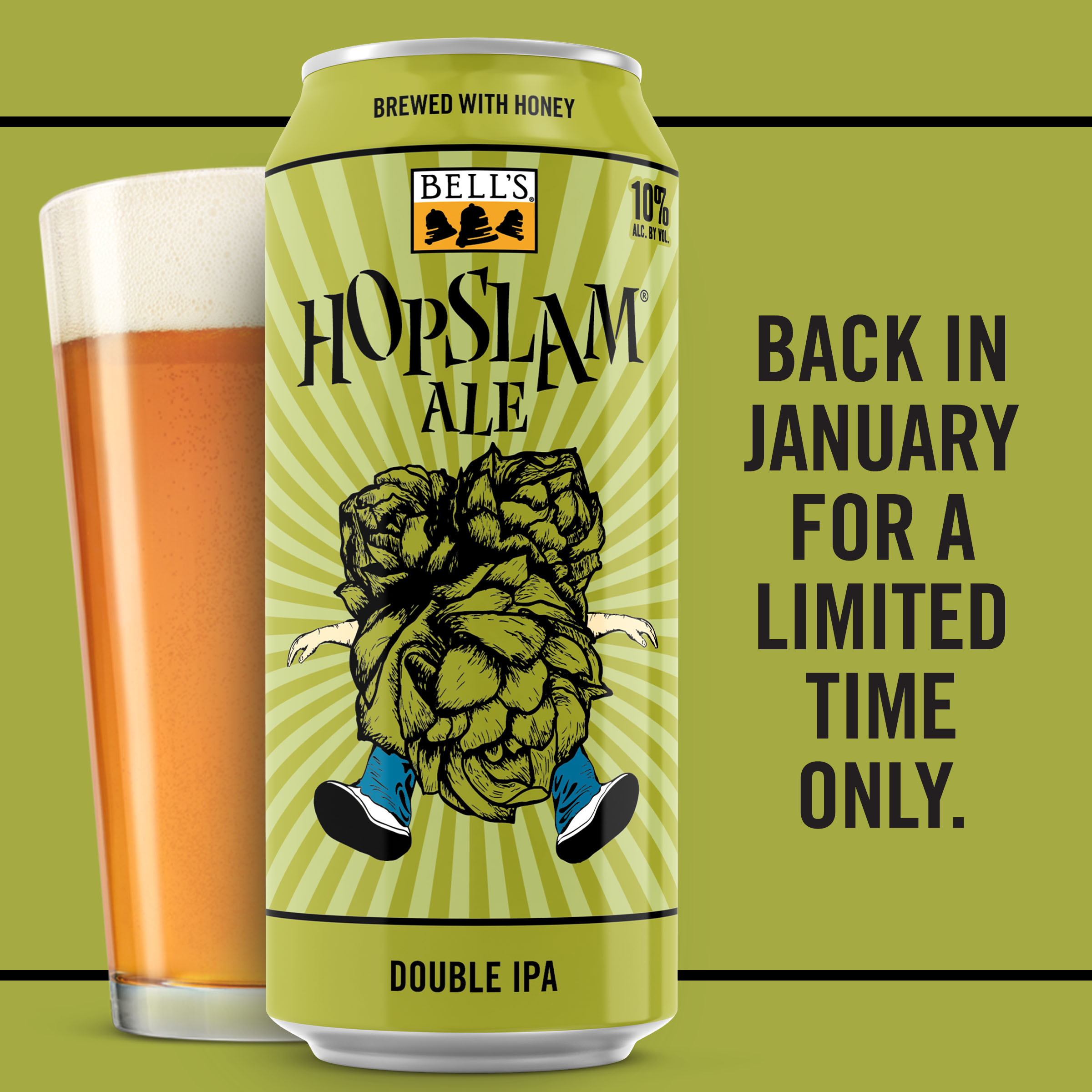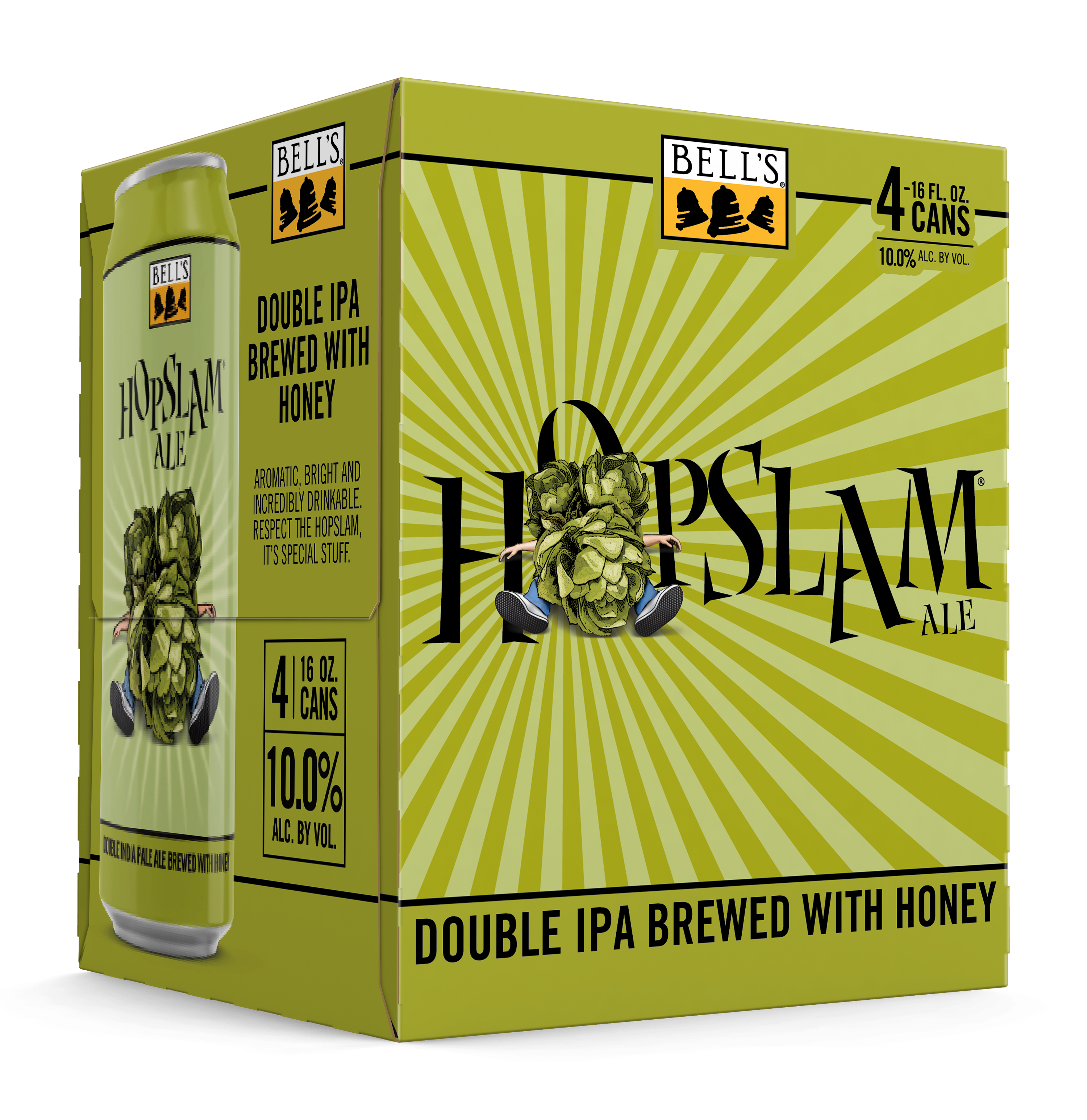 Hopslam IPA is a complex and flavorful double IPA. We add six different hop varietals to the brew kettle, culminating with a massive dry-hop addition of Simcoe hops, in the most complex hopping schedule of all Bell’s beers. Pacific Northwest hops are selected specifically for their aromatic qualities, contributing a pungent blend of grapefruit, stone fruit and floral notes. A generous malt bill with a solid dollop of honey provides a remarkably balanced, drinkable double craft IPA with a 10% ABV. Proudly brewed by Bell’s Brewing, which has been creating high quality craft beers in Michigan since 1985 and is a Certified B-Corp. UOM is 16 fluid ounces. Count per pack: four pack, cans.