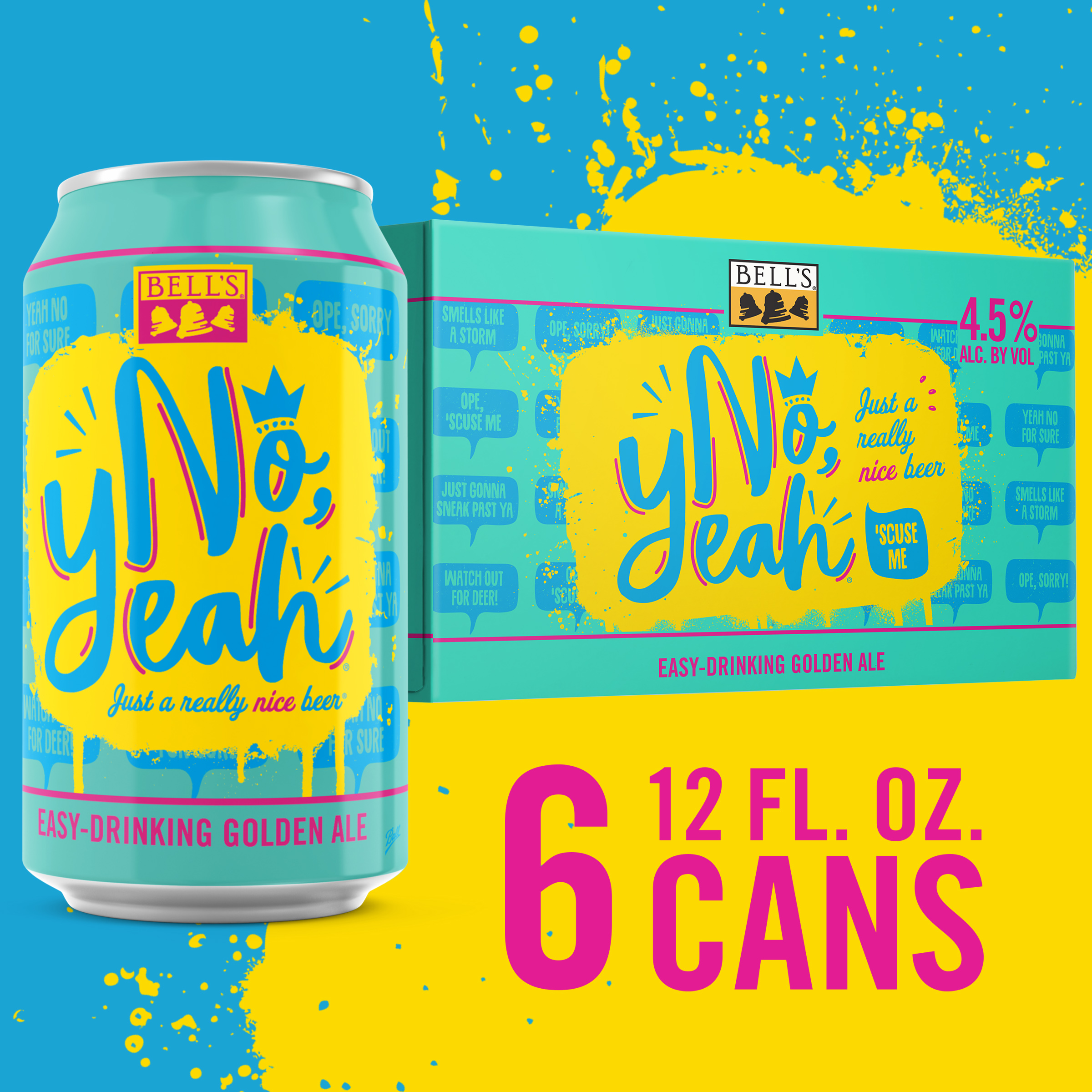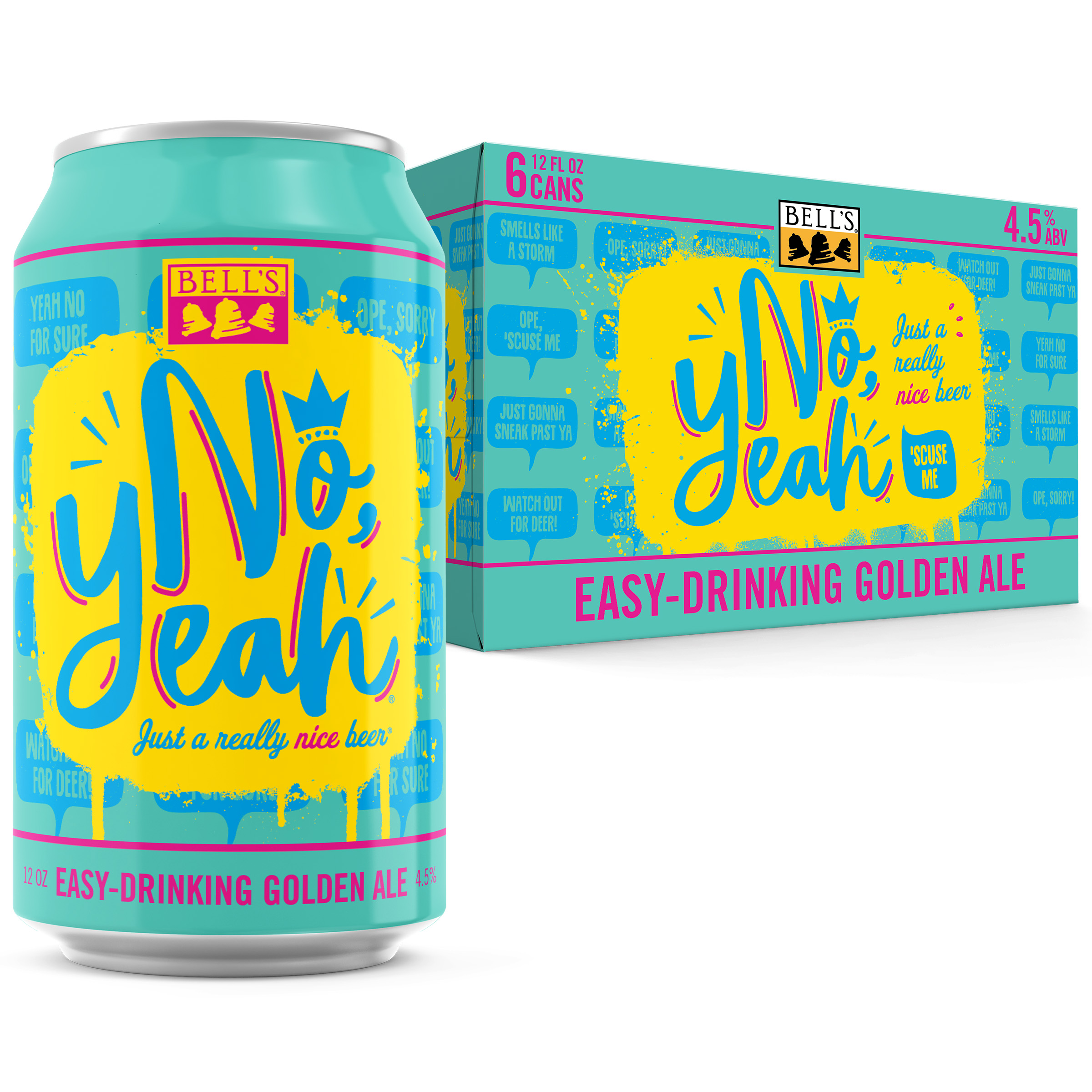 No, Yeah is an easy-drinking golden ale from Bell's Brewing. Inspired by classic Midwestern politeness, this craft beer is nice, bright and crisp. It is a light-bodied ale that’s equal parts refreshing and classic. Like a good Midwestern phrase, this sessionable, light ale demands repeating over and over again. This lighter craft beer option is crisp and dry with a slightly sweet flavor profile. It is balanced, not overly bitter, and will resonate with fans of lagers and those just looking for a really nice beer. What can we say? We love an ale that's perfectly balanced but still flavorful. It's just a really nice beer. No, Yeah is proudly brewed by Bell’s Brewing, which has been creating high quality craft beers in Michigan since 1985. 4.5% ABV. UOM is 12 fluid ounces. Count per pack: six pack, cans.