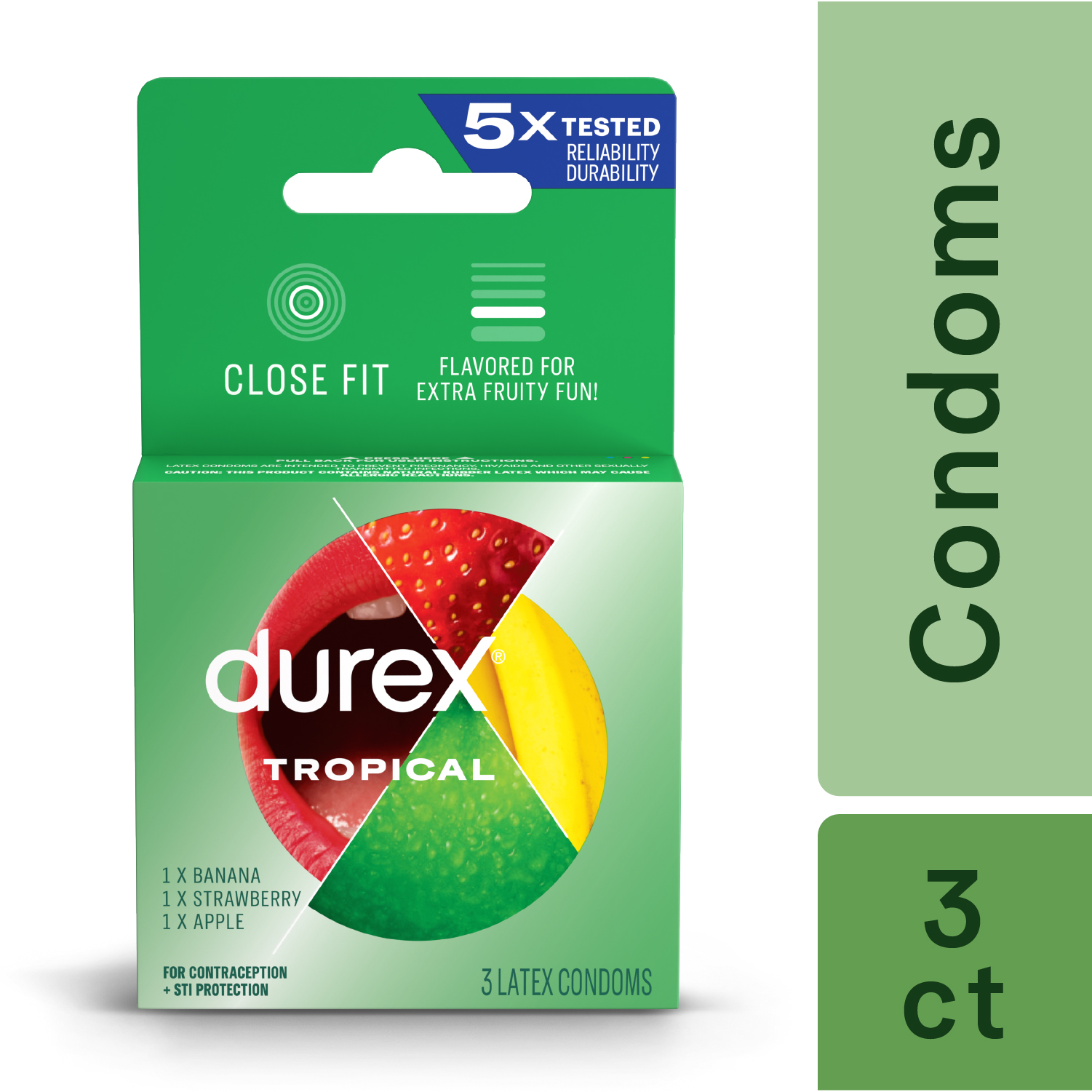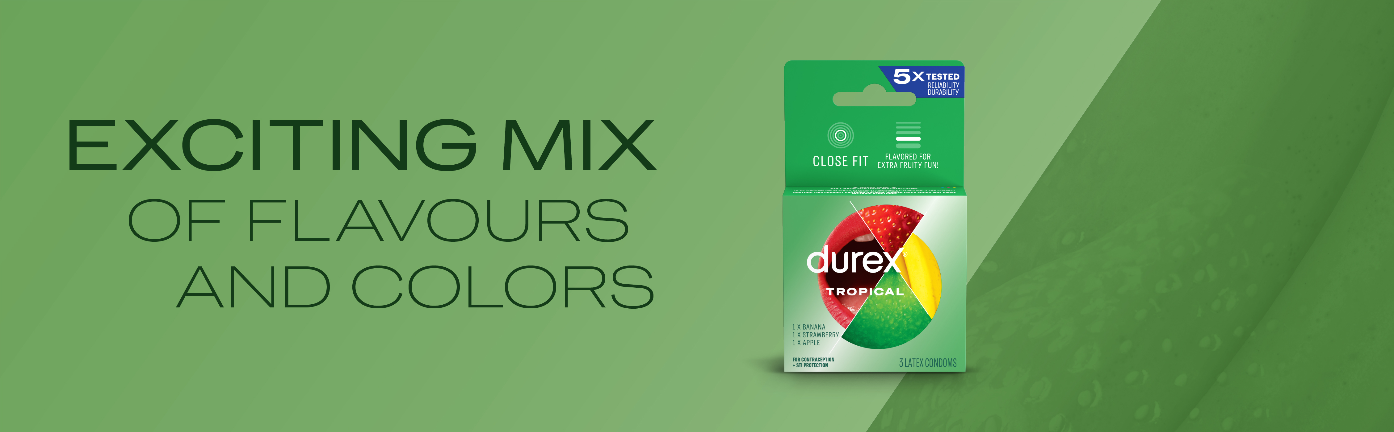 - DUREX TROPICAL CONDOMS: Multi-colored with several exciting flavors for added excitement between you and your partner