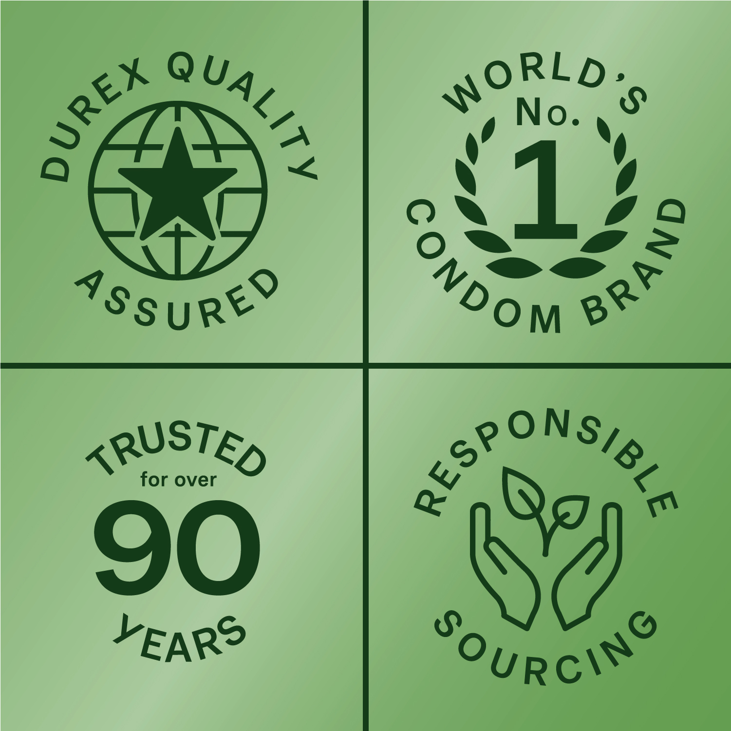 - DUREX QUALITY: Each Durex condom for men is 100 percent electronically tested for strength, flexibility and reliability