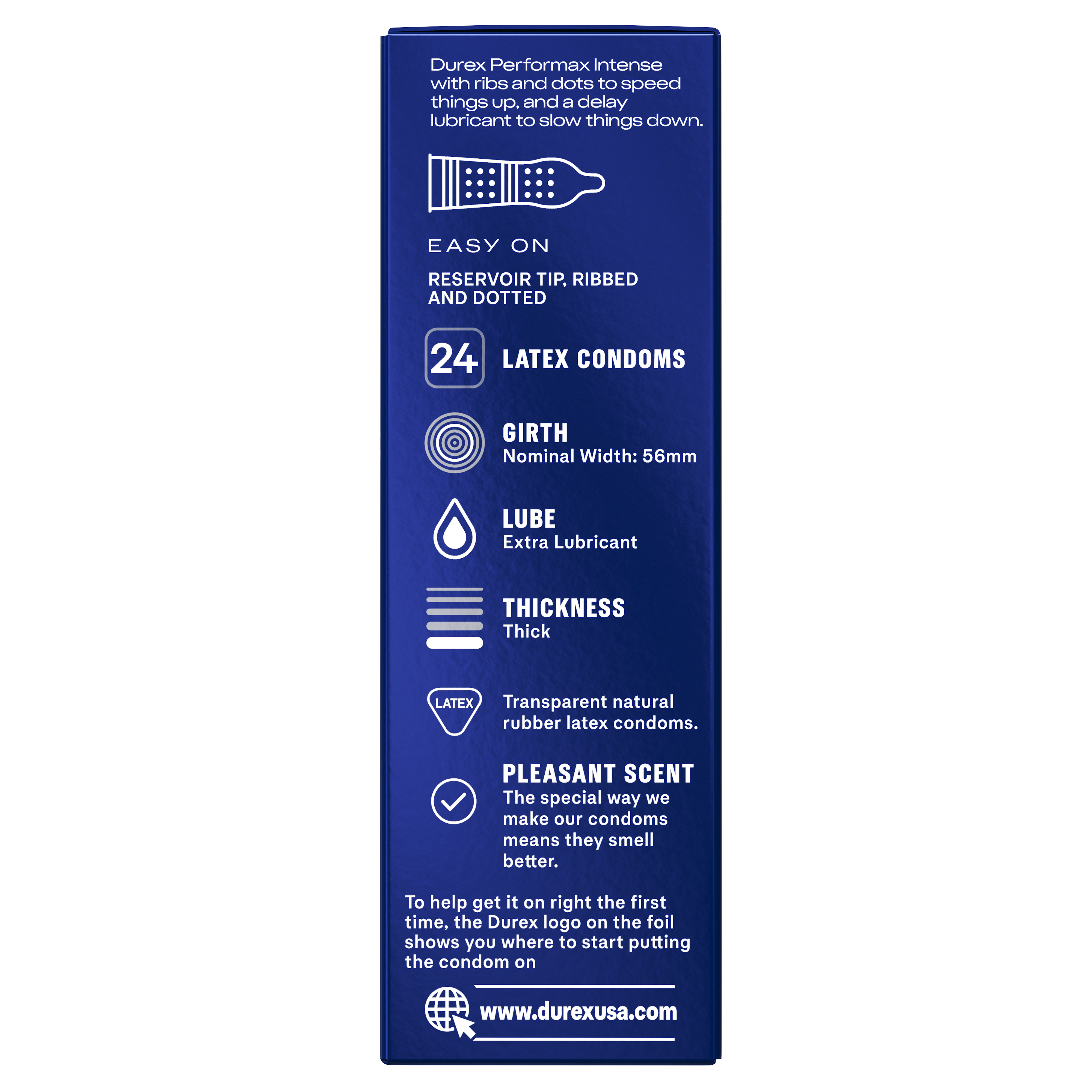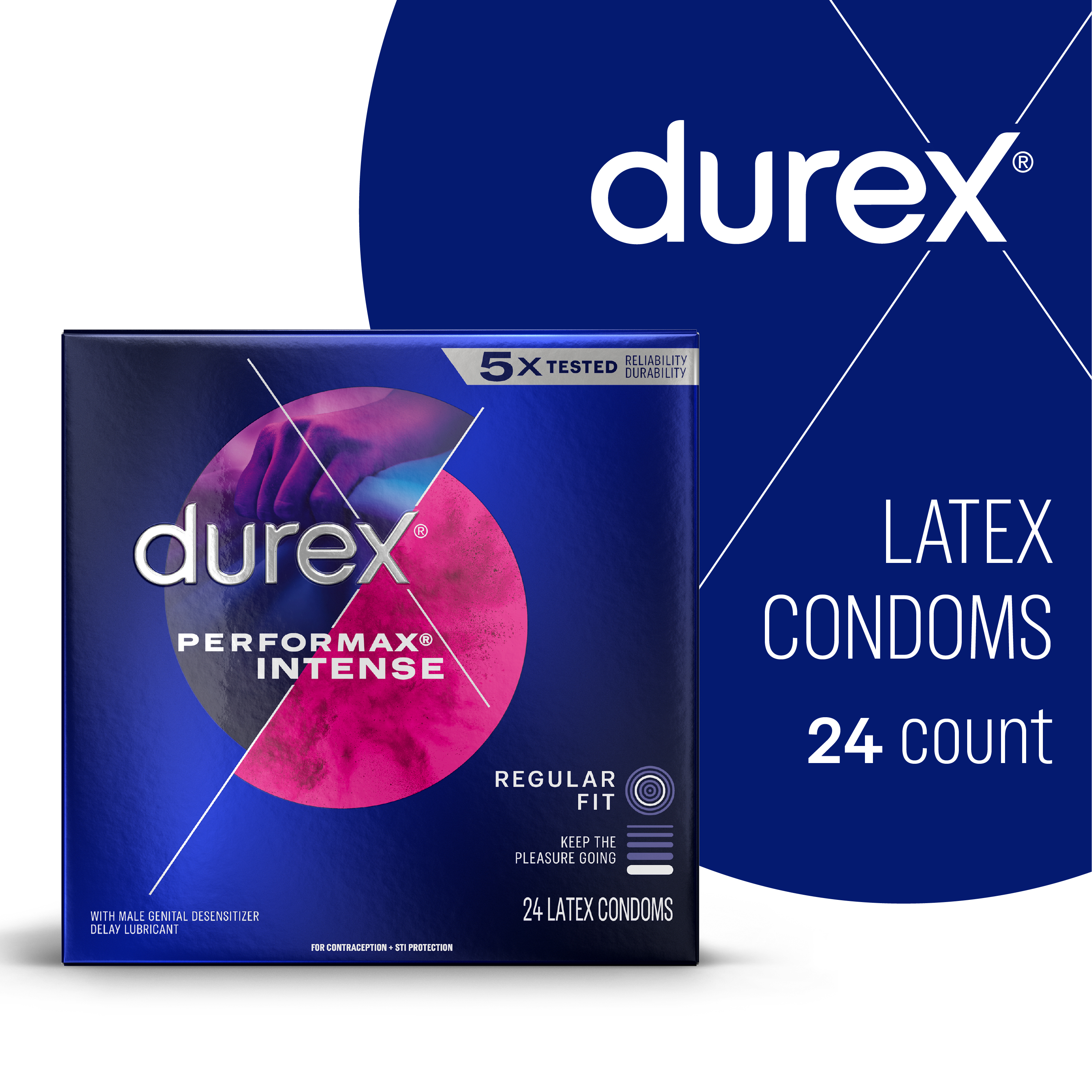 | Amazon Title | Durex Performax Intense Natural Rubber Latex Condoms, Regular Fit, 24 Count, Contains Desensitizing Lube for Men, FSA & HSA Eligible (Packaging May Vary) |