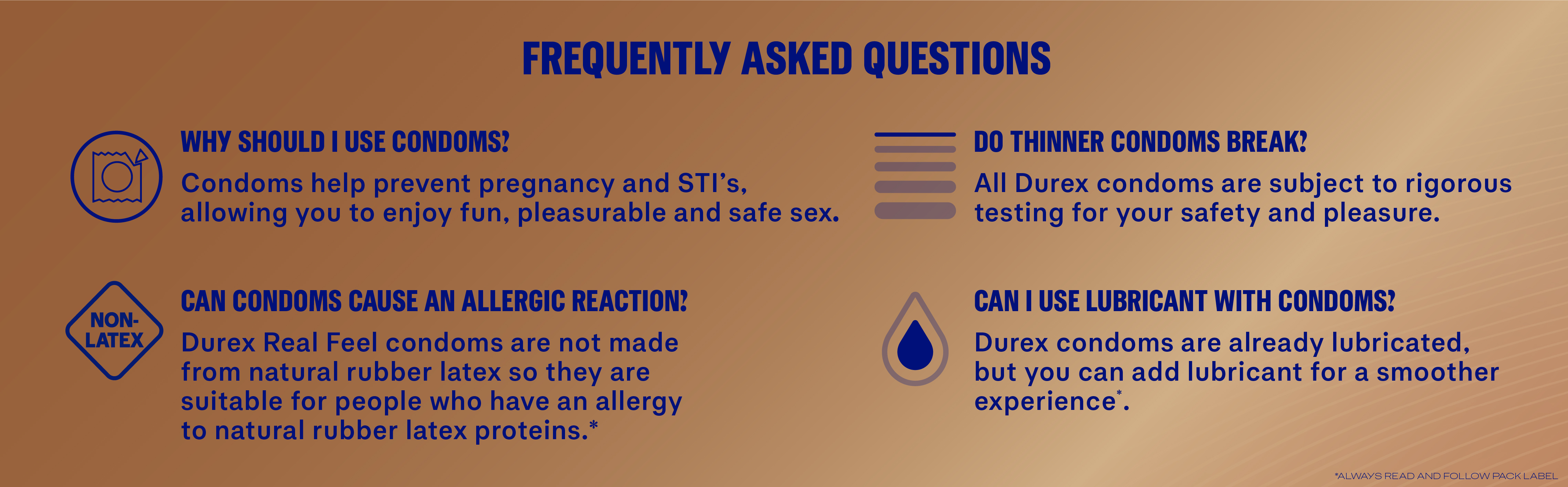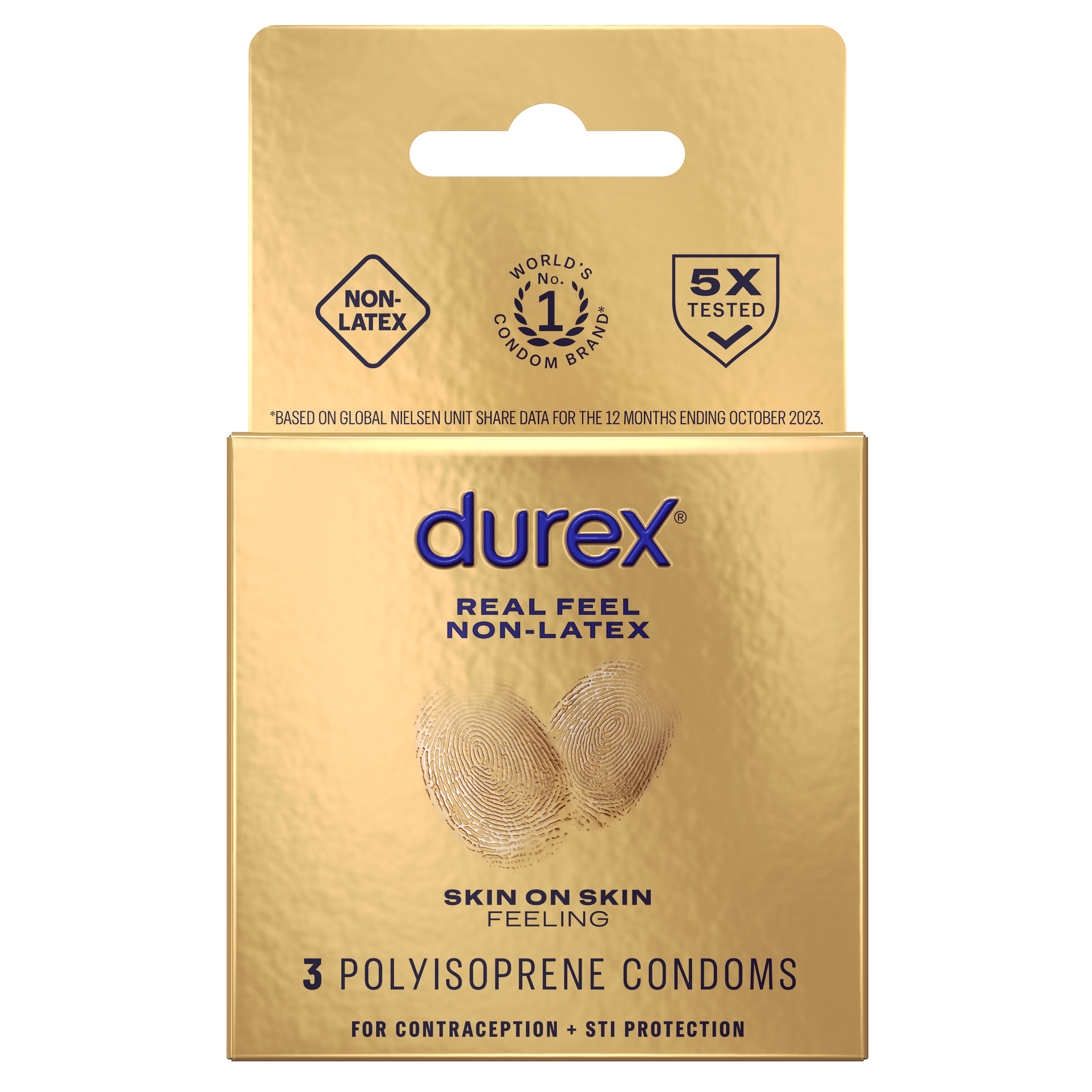 - DUREX AVANTI BARE REAL FEEL: Non-latex polyisoprene condoms for men are lubricated and offer a natural skin on skin feeling