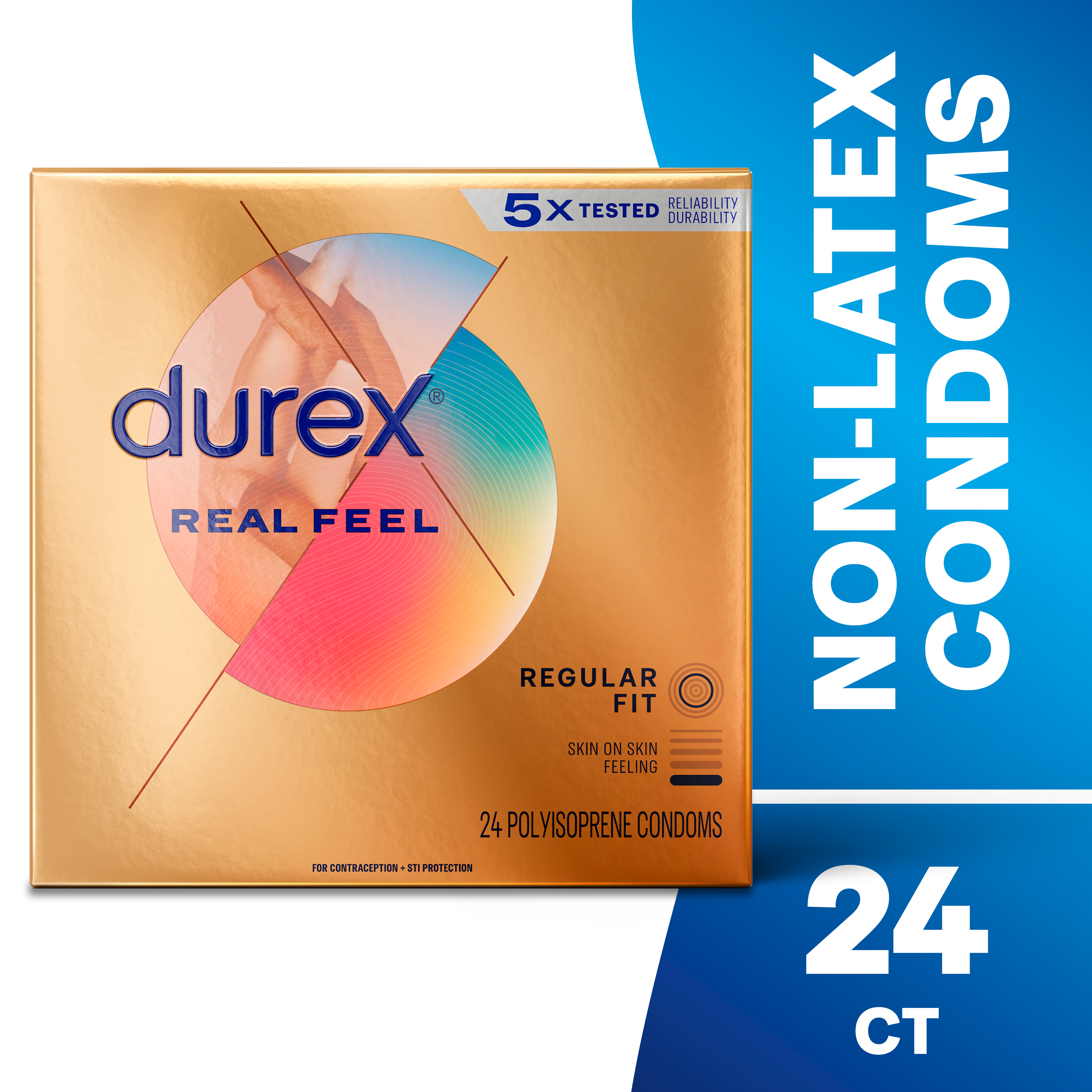 - DUREX AVANTI BARE REAL FEEL: Non-latex polyisoprene condoms for men are lubricated and offer a natural skin on skin feeling