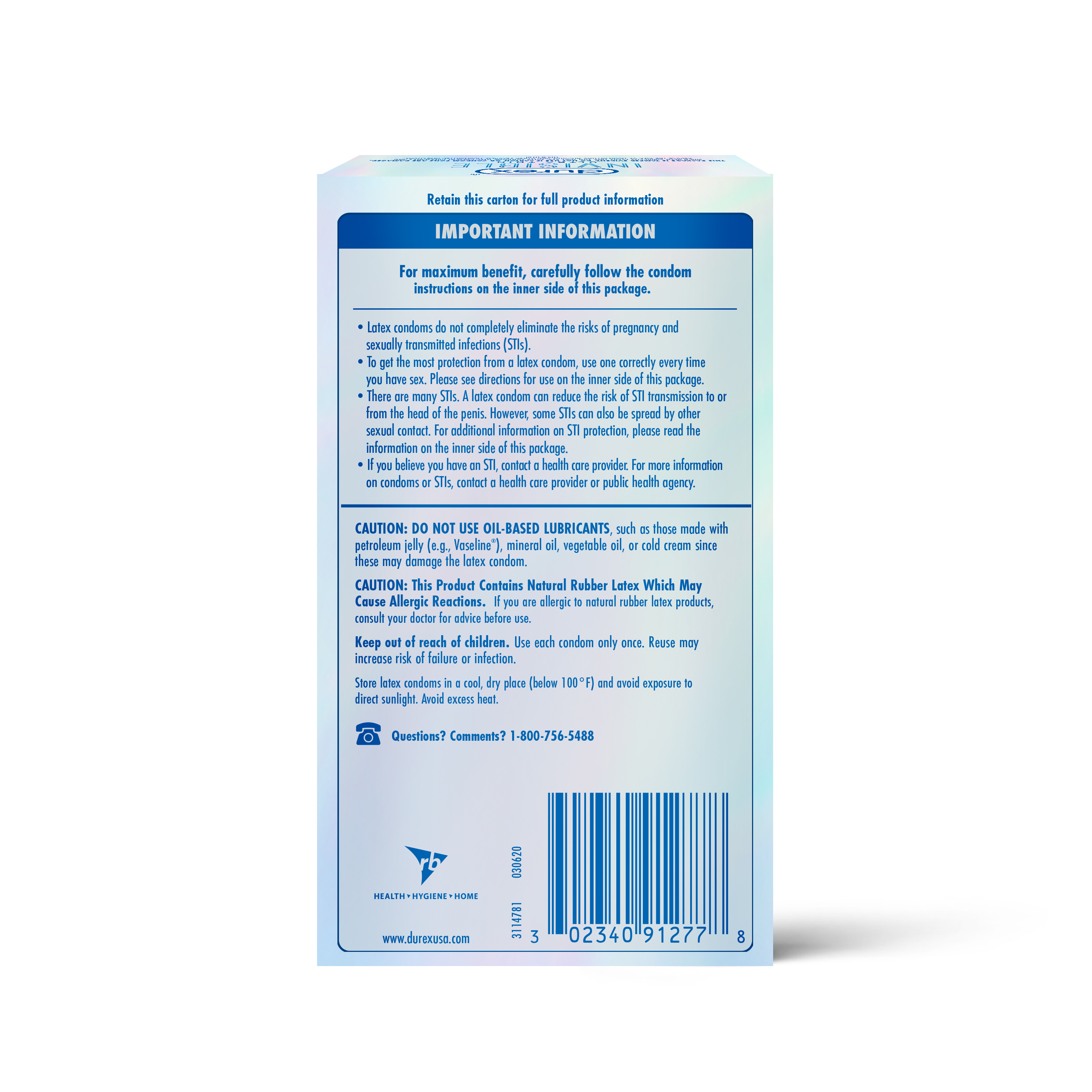 | Product Description | Durex Invisible Condoms are so thin, they're almost invisible – if you want to enjoy maximum sensitivity safely, these thin condoms are a perfect option. Invisible condoms are the thinnest developed by Durex and are designed to maximize sensitivity while providing a high level of protection. Extra thin, lubricated and nearly see through; these condoms are made from natural rubber latex. FSA (Flexible Spending Account) and HSA (Health Savings Account) eligible. Durex is the world's #1 condom brand* trusted over 80 years. Each Durex condom for men is 100 percent electronically tested for strength, flexibility and reliability and features a pleasant scent.
