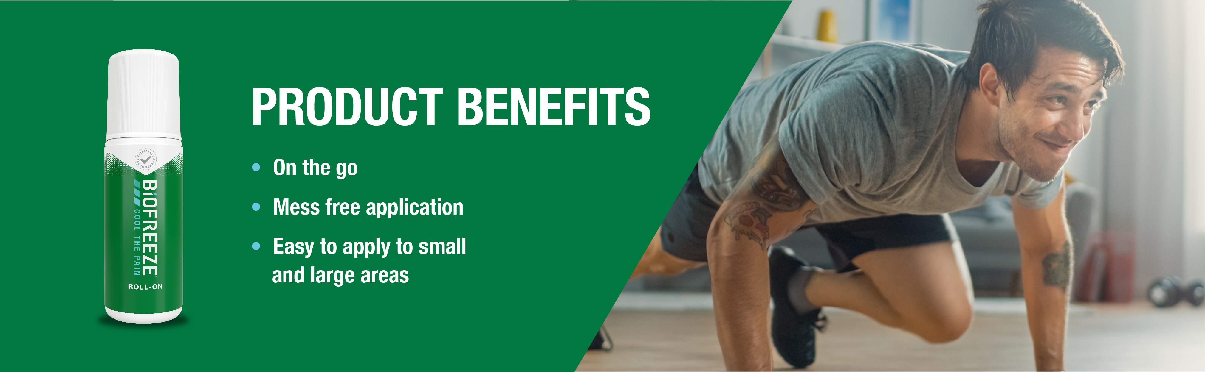 - Biofreeze roll-on applies easily for penetrating pain relief without the mess