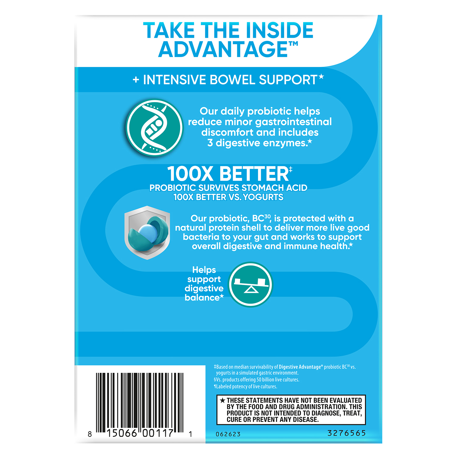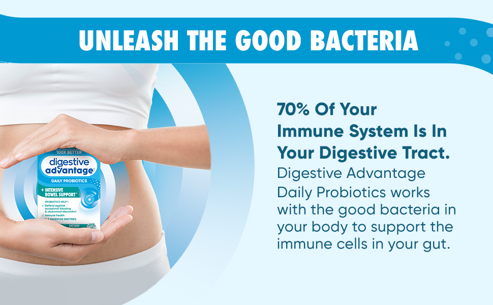 - IMMUNE SUPPORT: 70% of your immune system is in your digestive tract. The good bacteria in Digestive Advantage Probiotic helps support the immune cells in your gut.