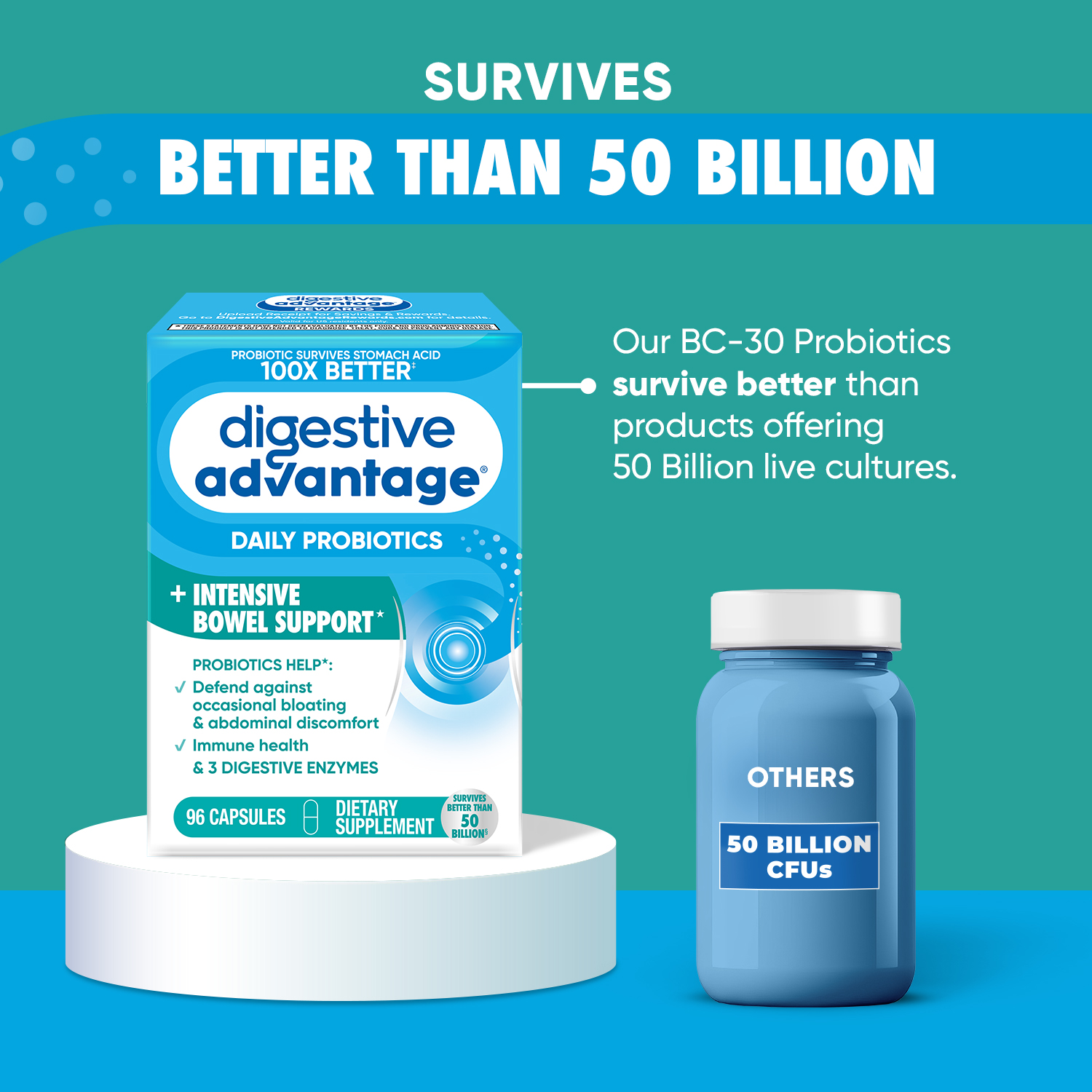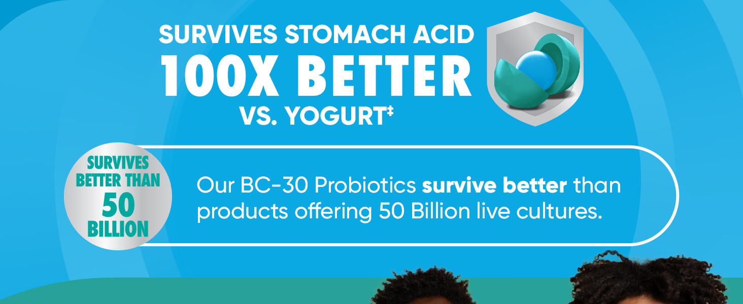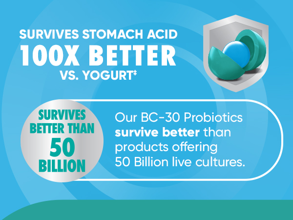 - BETTER THAN 50 BILLION: Our BC-30 Probiotics survive better than products offering 50 Billion live cultures.