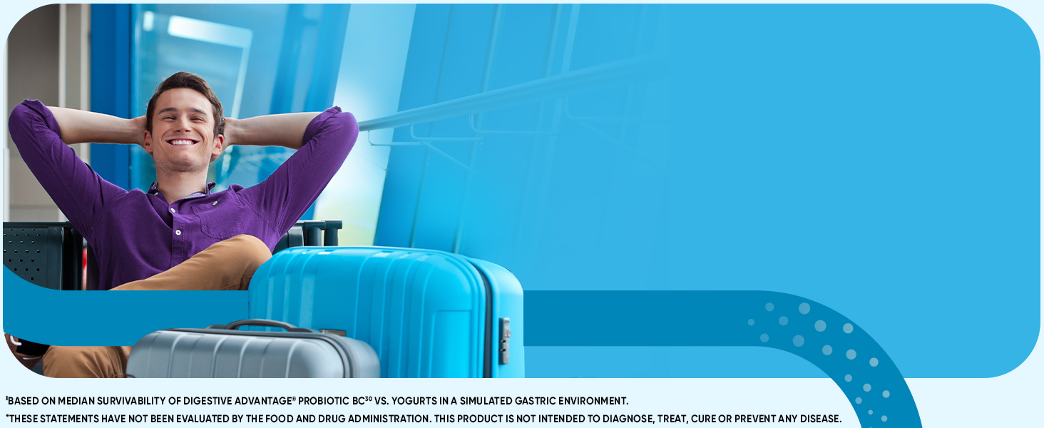 - HUNDRED TIMES BETTER: 1 Billion CFUs of patented BC-30 probiotics survives stomach acid 100X BETTER vs. yogurt. Based on median survivability of Digestive Advantage Probiotic BC30 vs. yogurts in a simulated gastric environment.