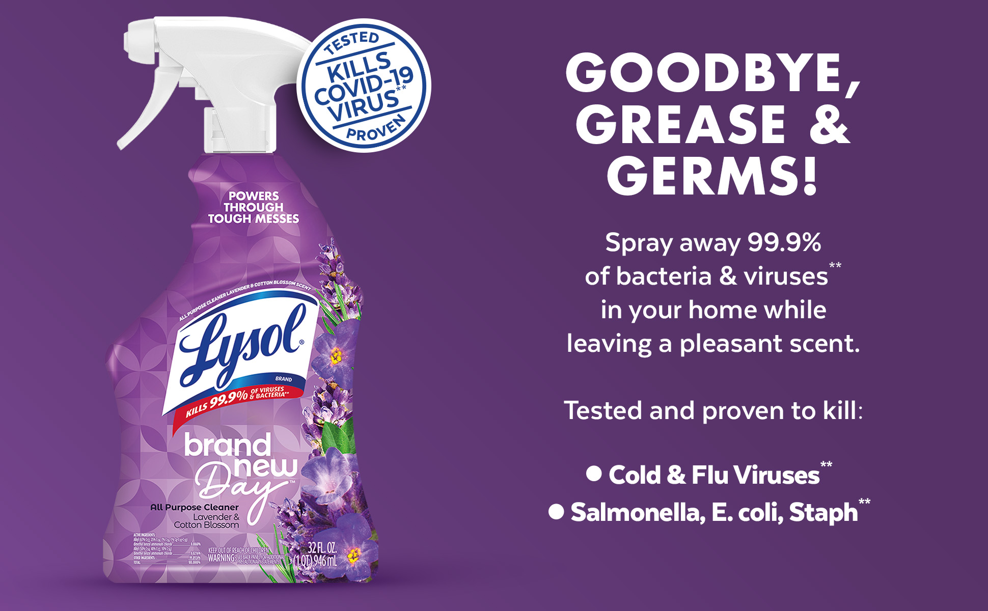 - LYSOL ALL PURPOSE CLEANER SPRAY: Lysol All Purpose Cleaner kills 99.9% of viruses and bacteria including the Covid-19 virus and Norovirus*