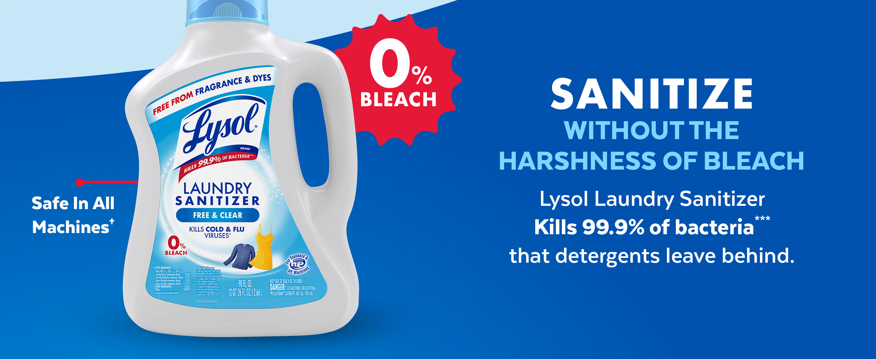 - FREE FROM FRAGRANCES AND DYES: Lysol Laundry Sanitizer Free and Clear is specially formulated without fragrances and dyes, making it ideal for baby clothes, bedding, and towels. Ensure a thorough clean, without scents or dyes.