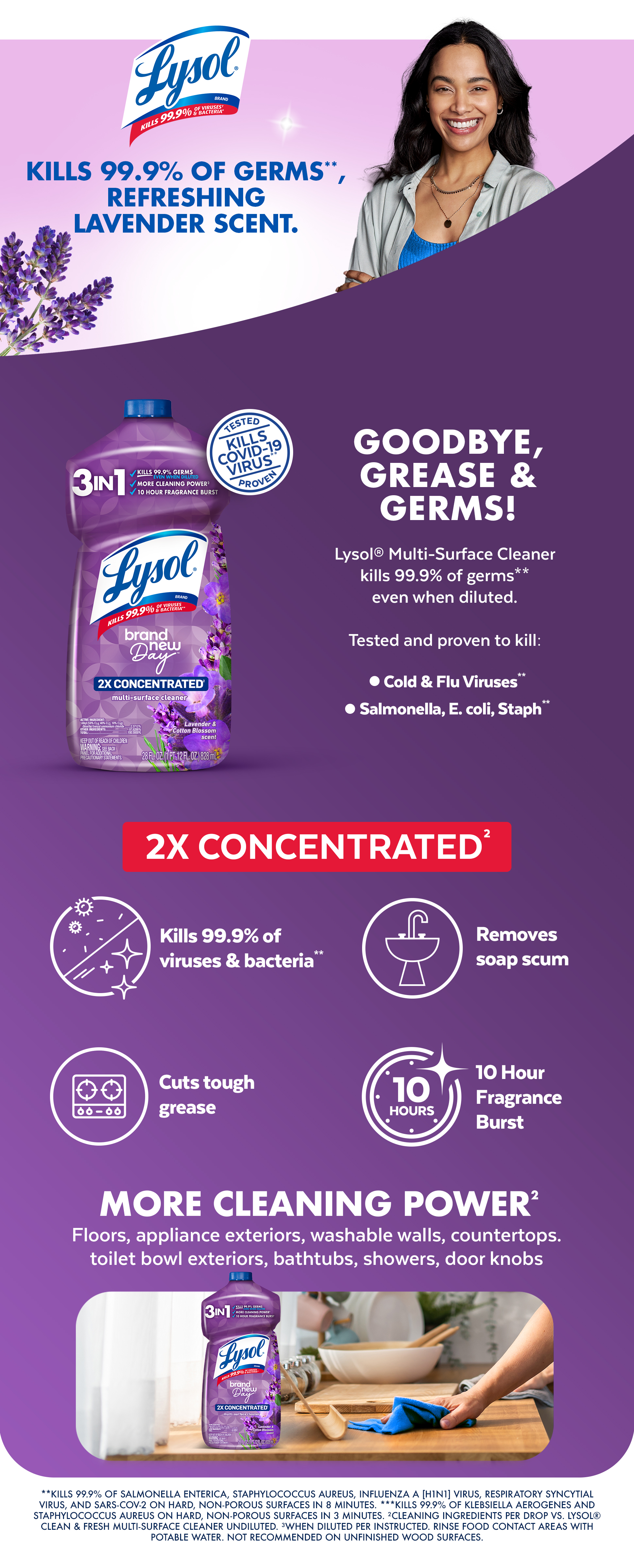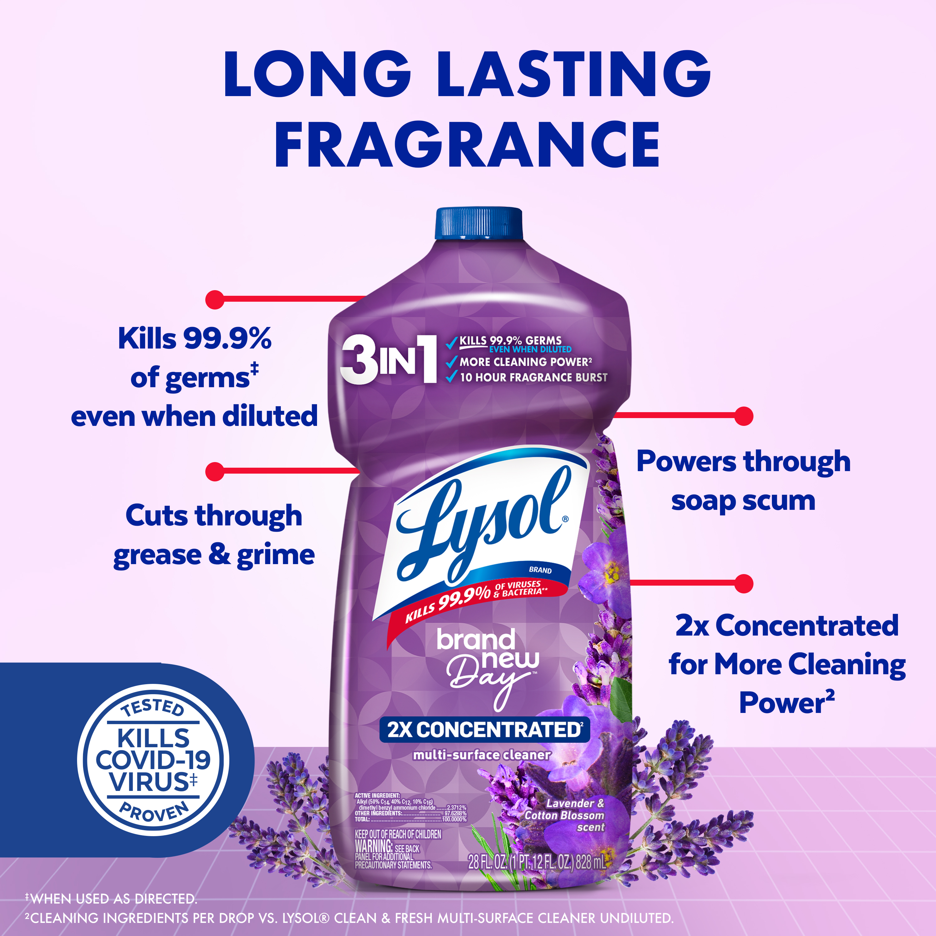 - WELCOMING FRAGRANCE: Lysol all purpose cleaner concentrate leaves a 10 hour burst of refreshing lavender & cotton blossom scent you'll love