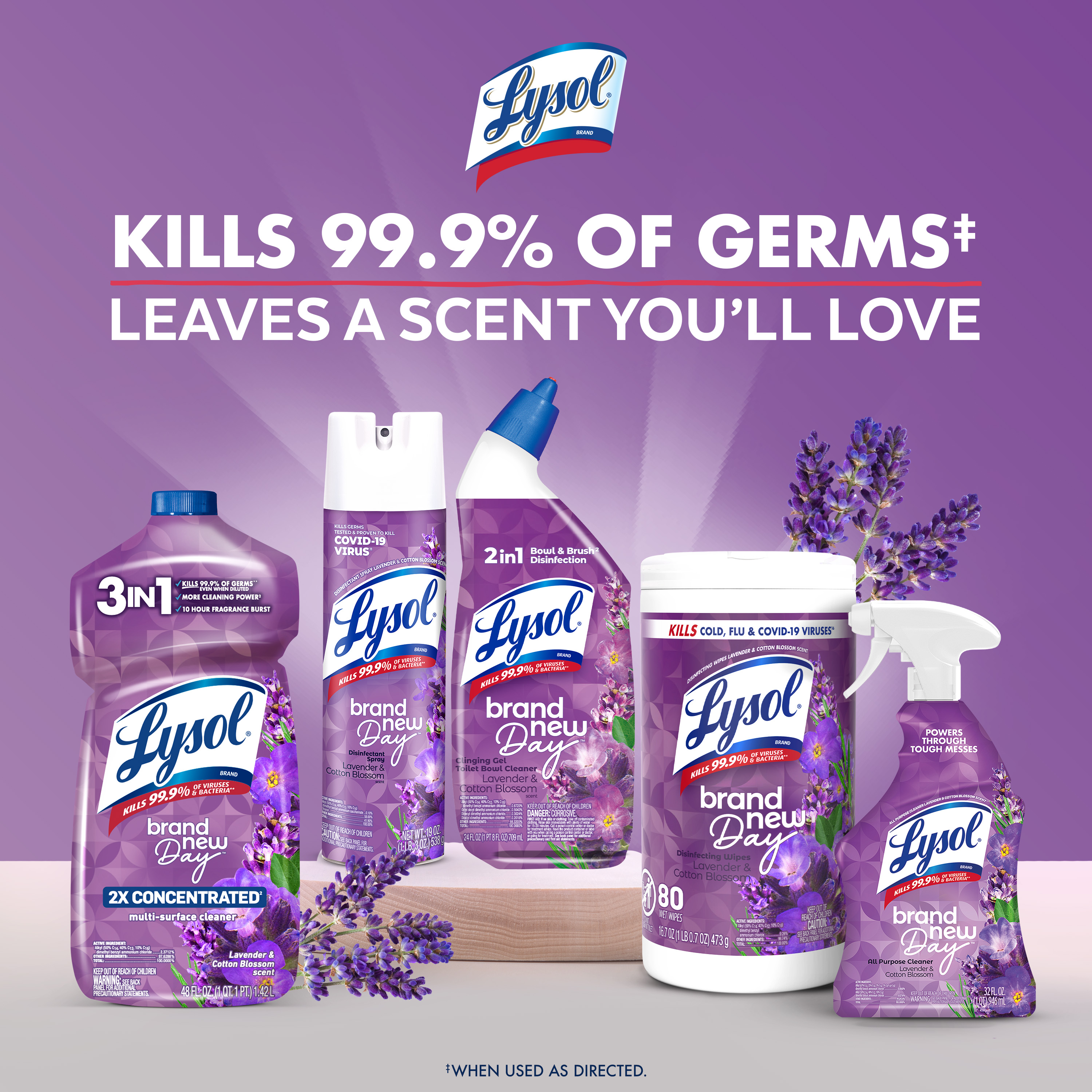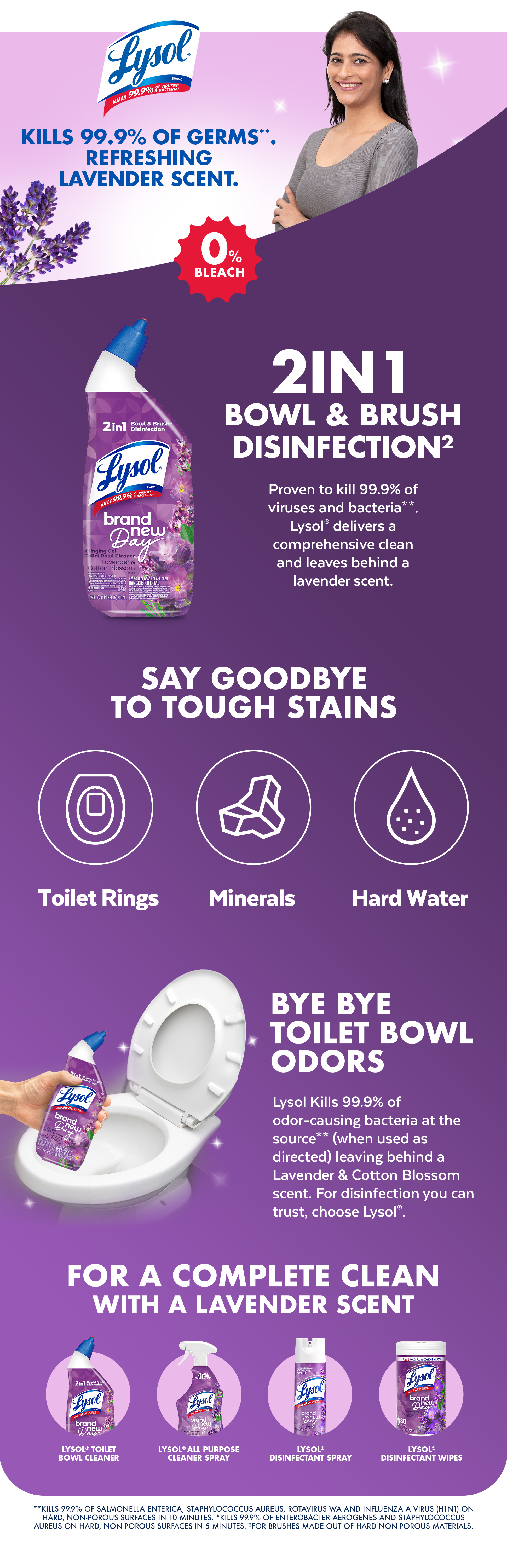 - TOILET BOWL CLEANER: Lysol Brand New Day™ Lavender & Cotton Blossom Toilet Bowl Cleaner is tested & proven to kill 99.9% of bacteria & viruses*