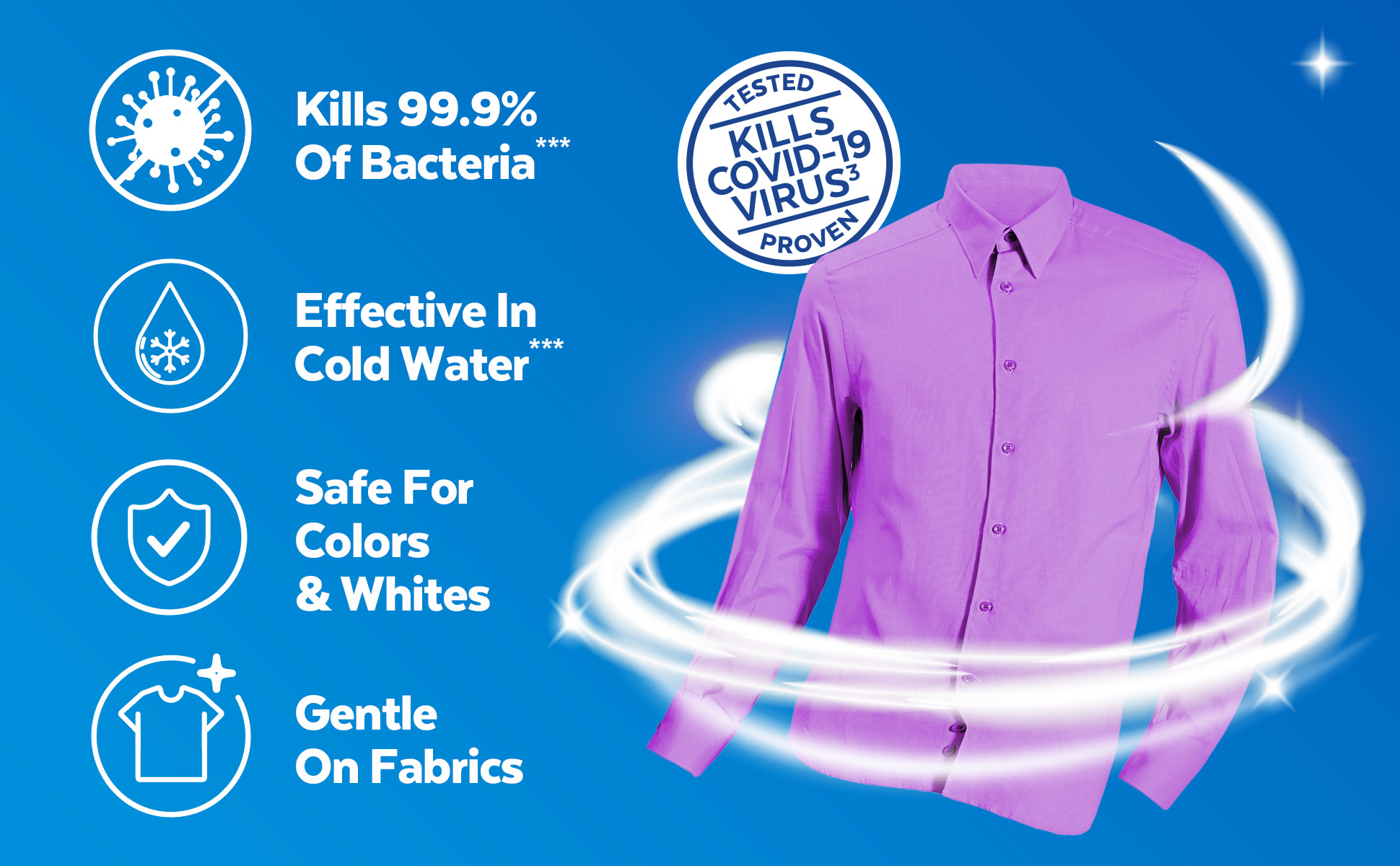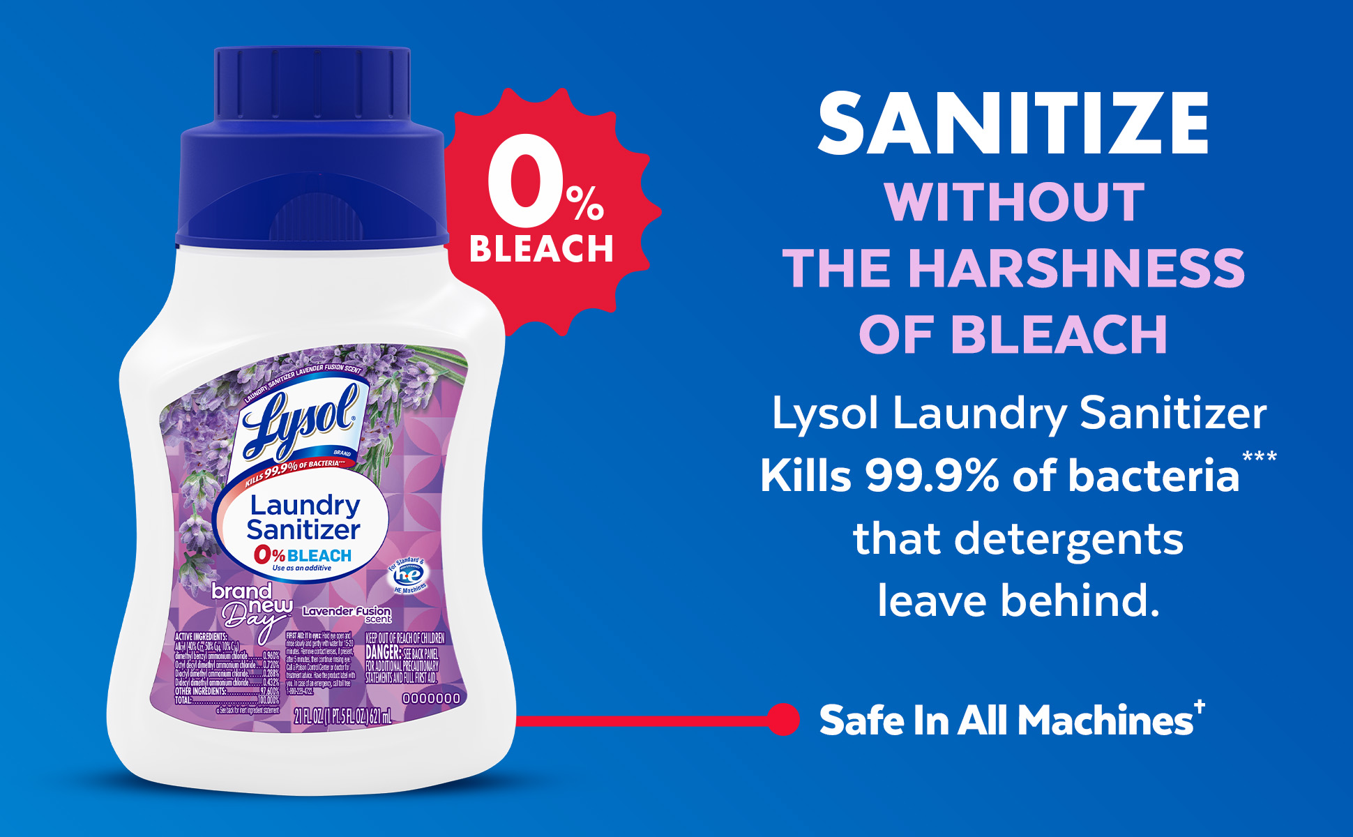 - EASY TO USE; WORKS IN ALL STANDARD & HE MACHINES: Add to the Fabric Softener compartment or during the rinse cycle to sanitize laundry and eliminate odor causing bacteria.