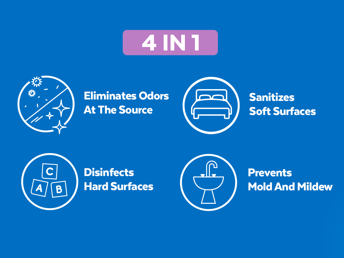 - UPHOLSTERY DEODORIZER: Lysol kills 99.9% of odor causing bacteria and helps kill and prevent mold and mildew. Essential for households with pets and kids, effectively eliminate odors on fabric, with our rugs, couch, furniture, and shoe deodorizer.