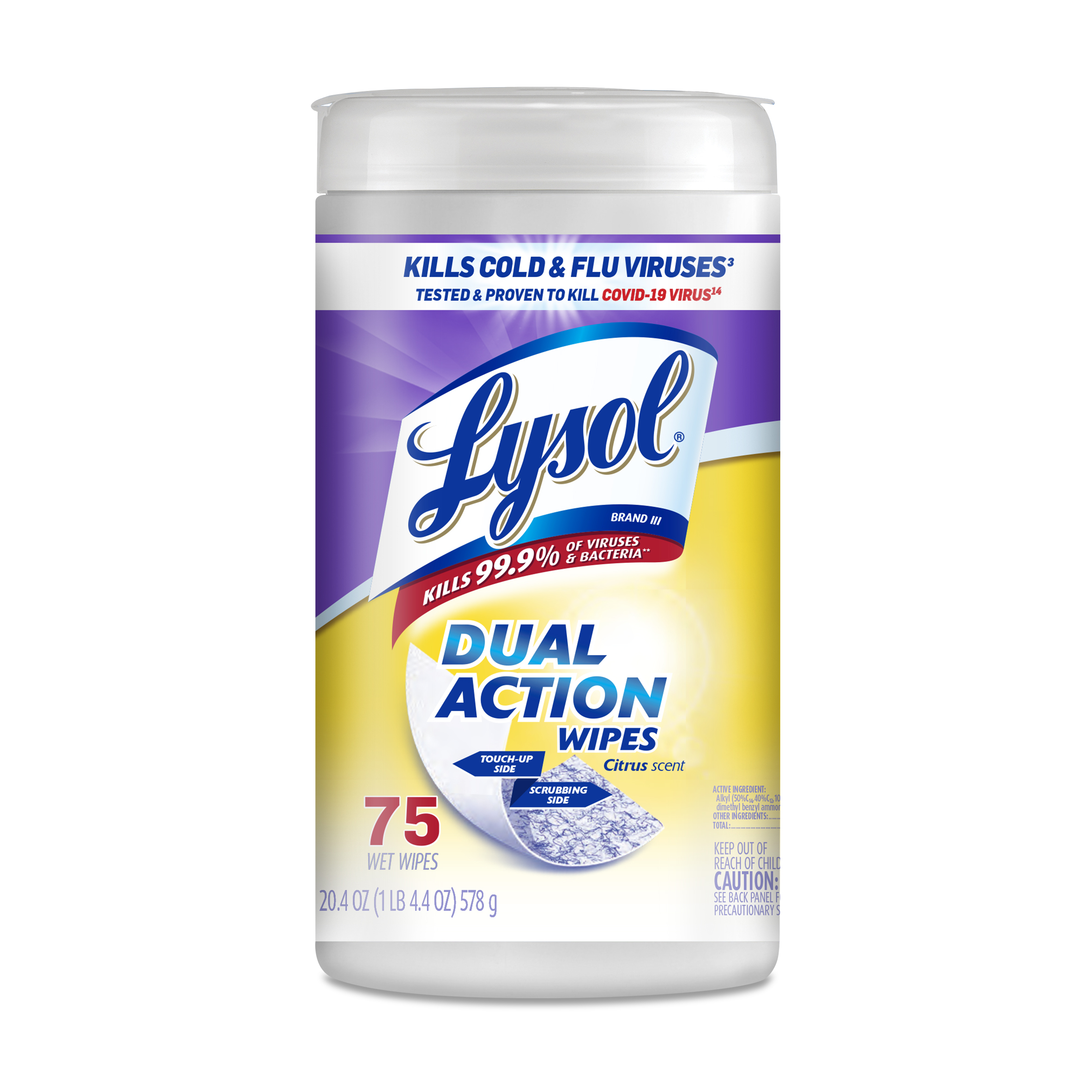 - DISINFECTING SCRUBBING WIPES KILLS 99.9% OF VIRUSES AND BACTERIA: Lysol Dual Action Disinfecting Wipes are tested and proven to kill 99.9% of viruses and bacteria, including 8 cold and flu viruses.* (Use as directed).