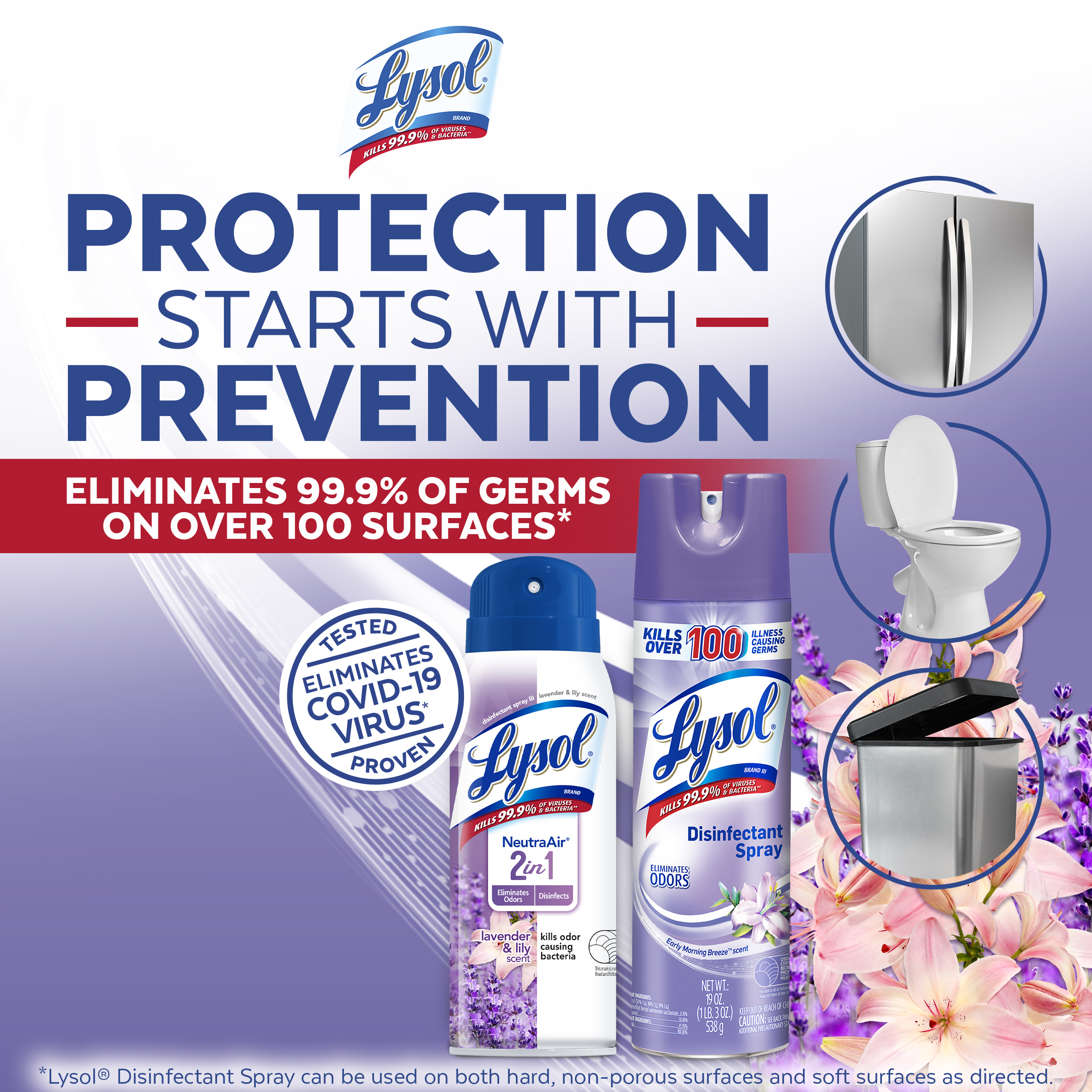 LYSOL® Disinfectant Spray - 1 Early Morning Breeze™ + Fabric Disinfectant - 1 Lavender Fields + Disinfectant Spray - NeutraAir™ - 1 Lavender & Lily - 4/(1x19)+(1x15)+(1x10) oz.