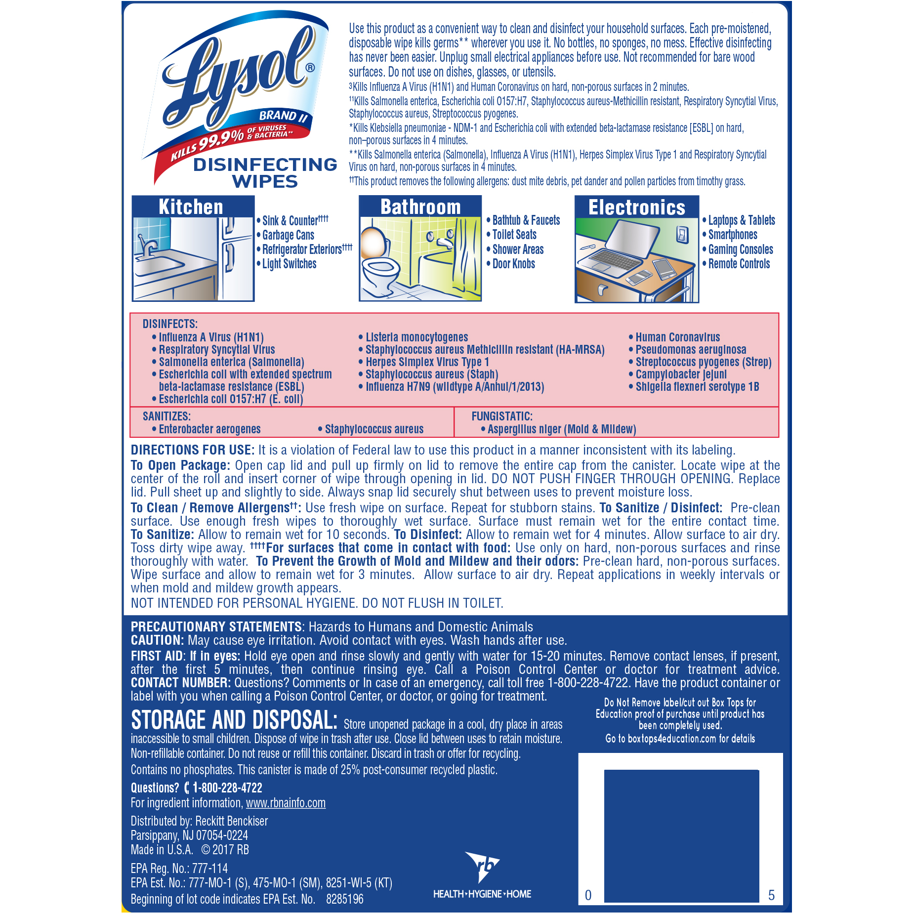 - Disinfects & kills 99.9% of viruses & bacteria* (EPA #777-114)