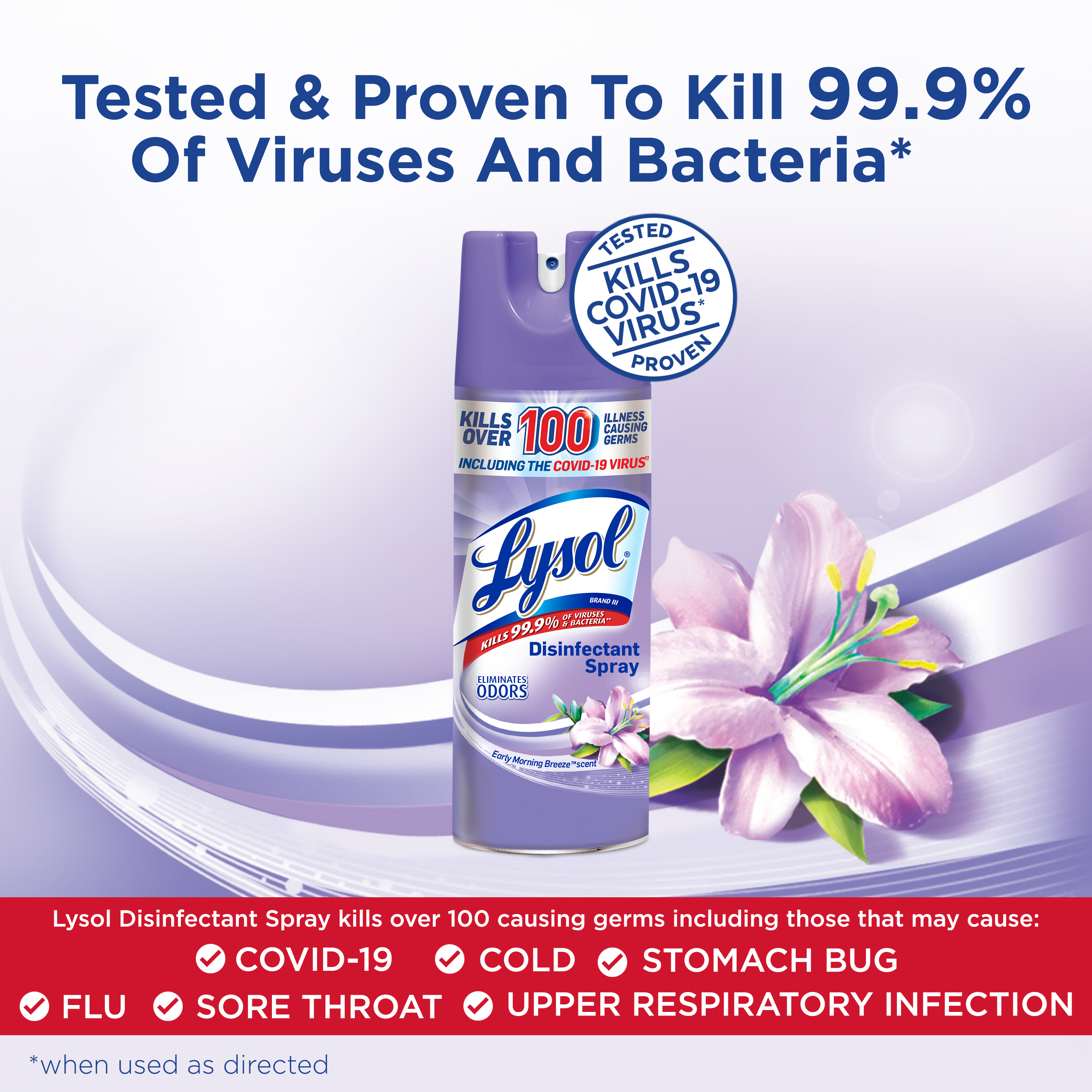 - DISINFECTANT SPRAY KILLS 99.9% OF VIRUSES AND BACTERIA: Lysol Disinfectant Spray is tested and proven to kill 99.9% of viruses and bacteria, including COVID-19/Coronavirus* (when used as directed).
