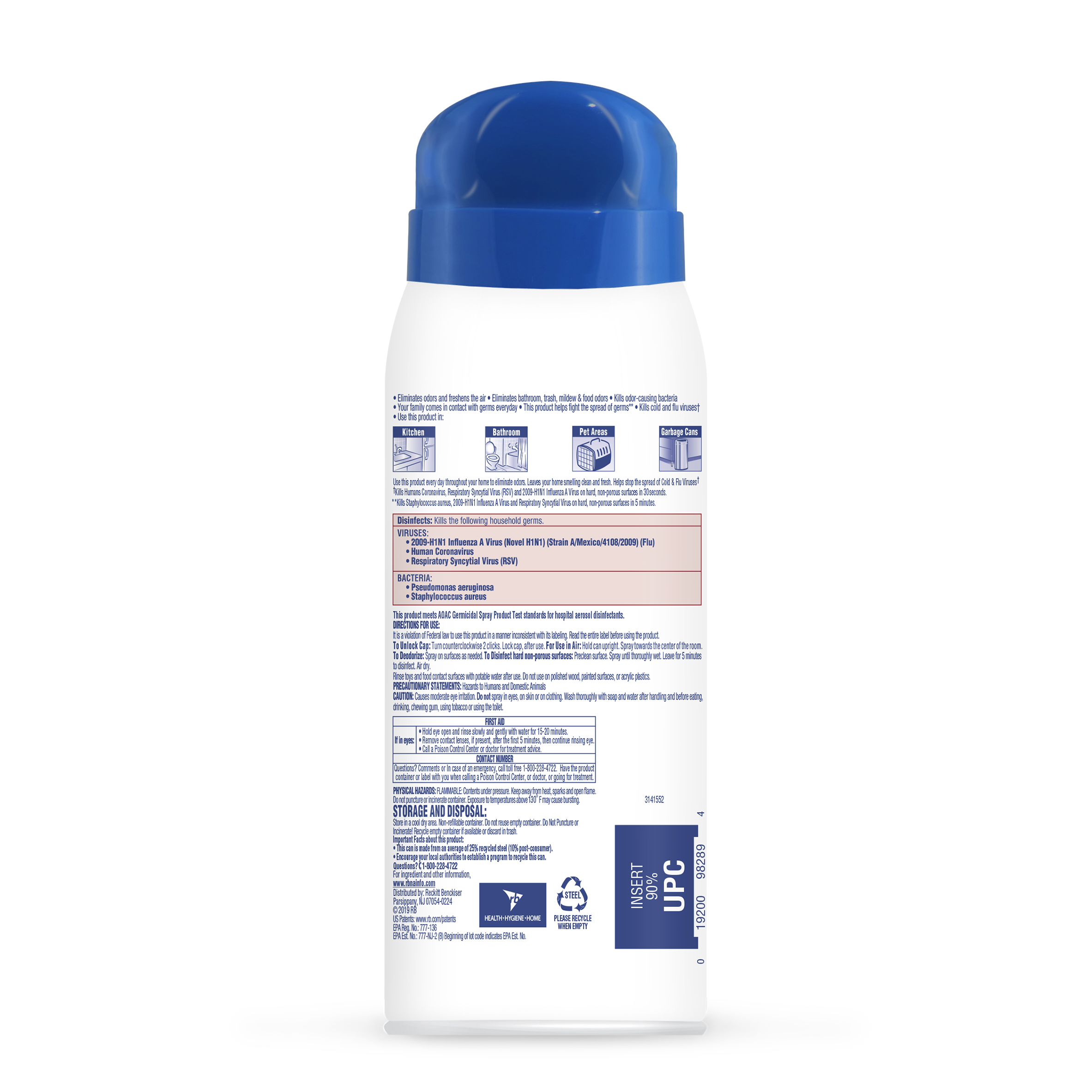 - How it works: Disinfects hard surfaces, deodorizes and freshens the air