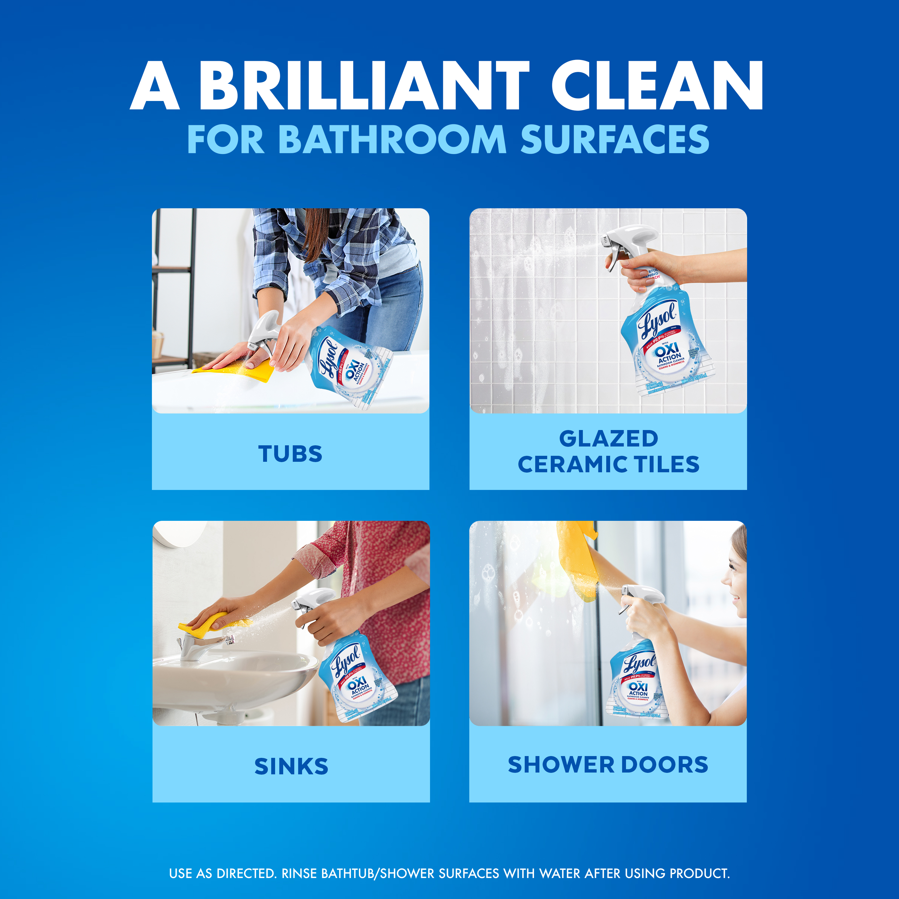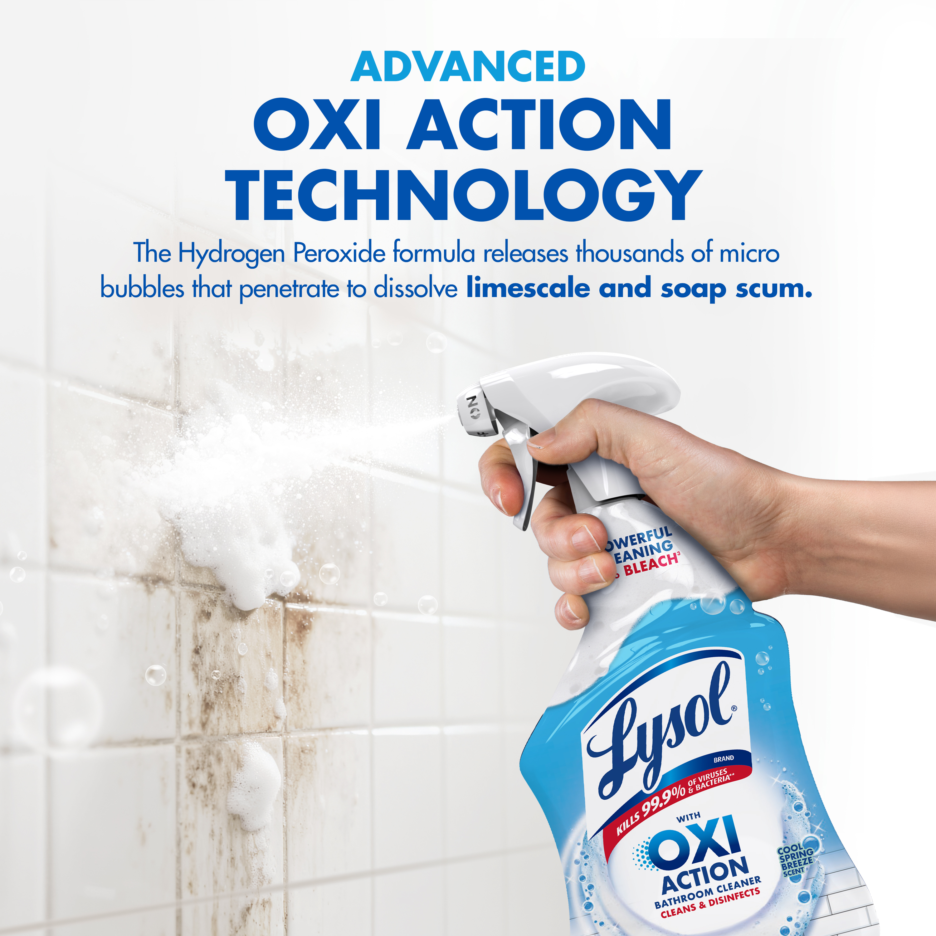 - ADVANCED OXI ACTION TECHNOLOGY: Formulated with hydrogen peroxide and Oxi Action Technology, this spray cleaner breaks down stubborn soap scum, limescale, and bathroom residue for a deeper, more effective clean.