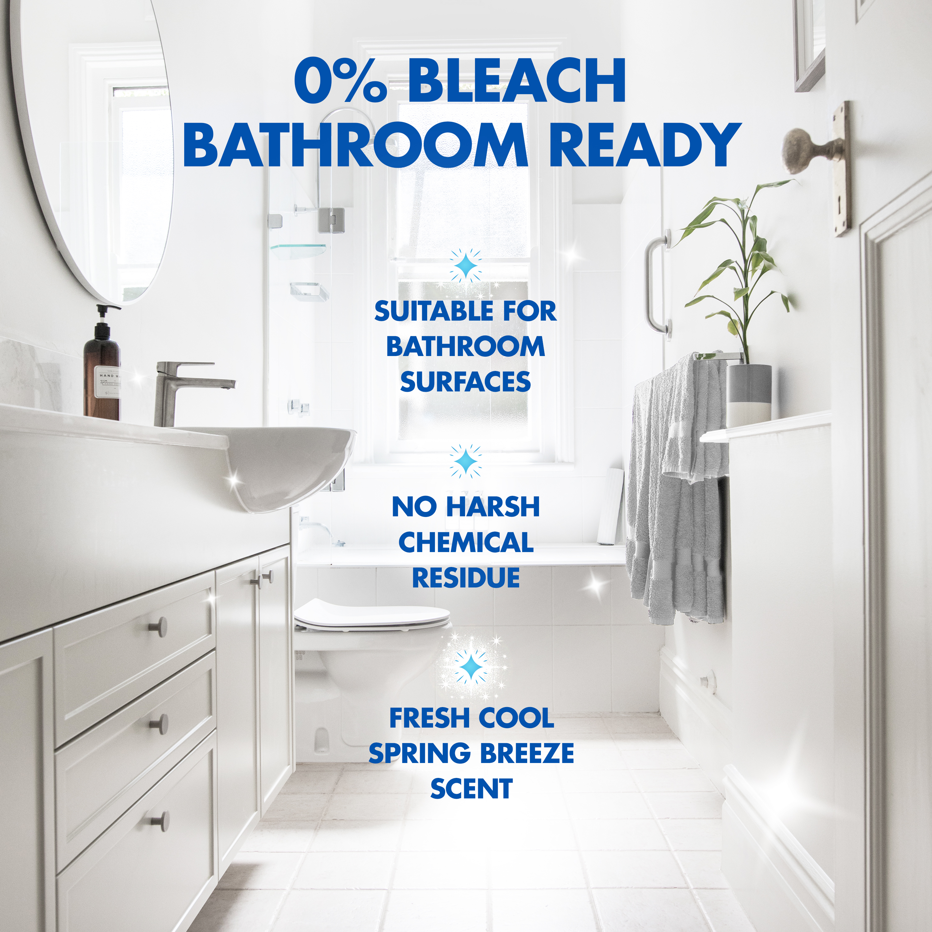- POWERFUL BATHROOM CLEANING WITH 0% BLEACH: Deep-cleaning, bleach-free* formula gives you the strength of a bathroom cleaner spray without the harshness of traditional bleach bathroom cleaners — ideal for bleach-sensitive surfaces.