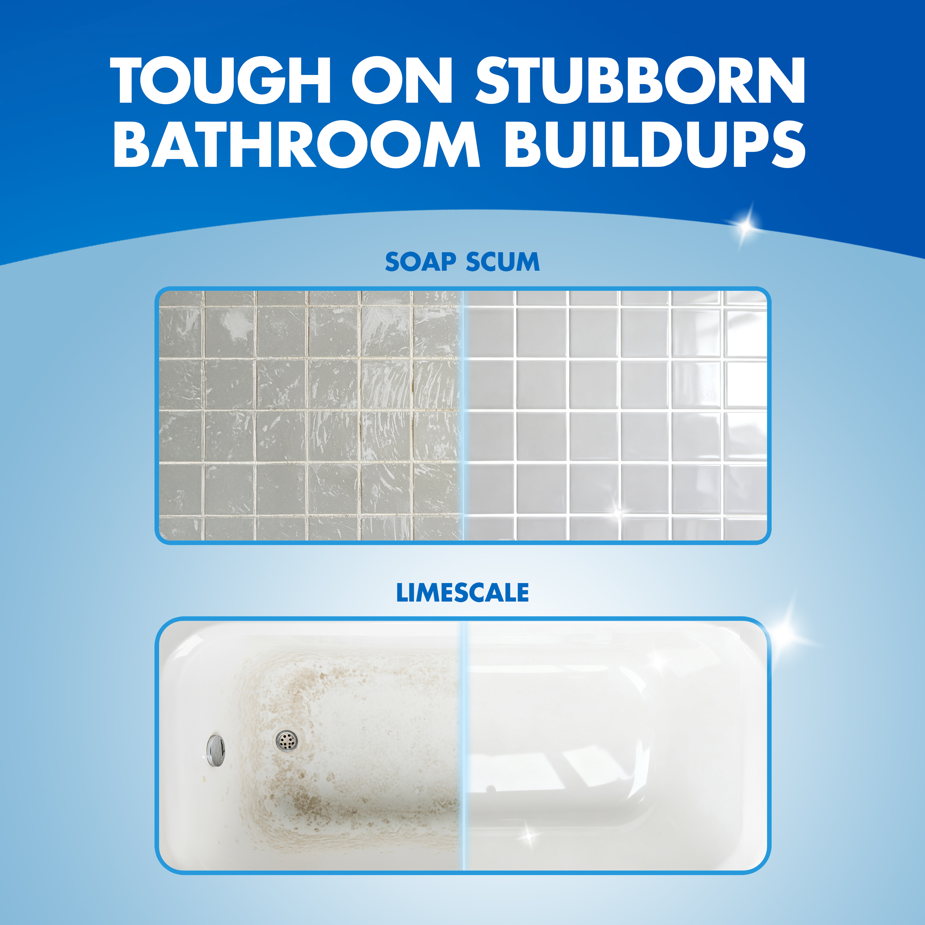 - CUTS THROUGH SOAP SCUM & LIMESCALE: Highly effective bathroom spray cleaner for tackling residue in showers, tubs, sinks, faucets, tiles, grout, and chrome fixtures.