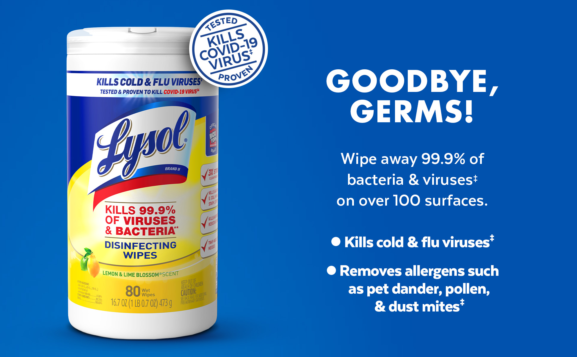 - LYSOL DISINFECTING WIPES ELIMINATE 99.9% OF VIRUSES AND BACTERIA: Tested and proven to disinfect and eliminate 99.9% of viruses and bacteria, including 8 cold and flu viruses* (*Use as directed)