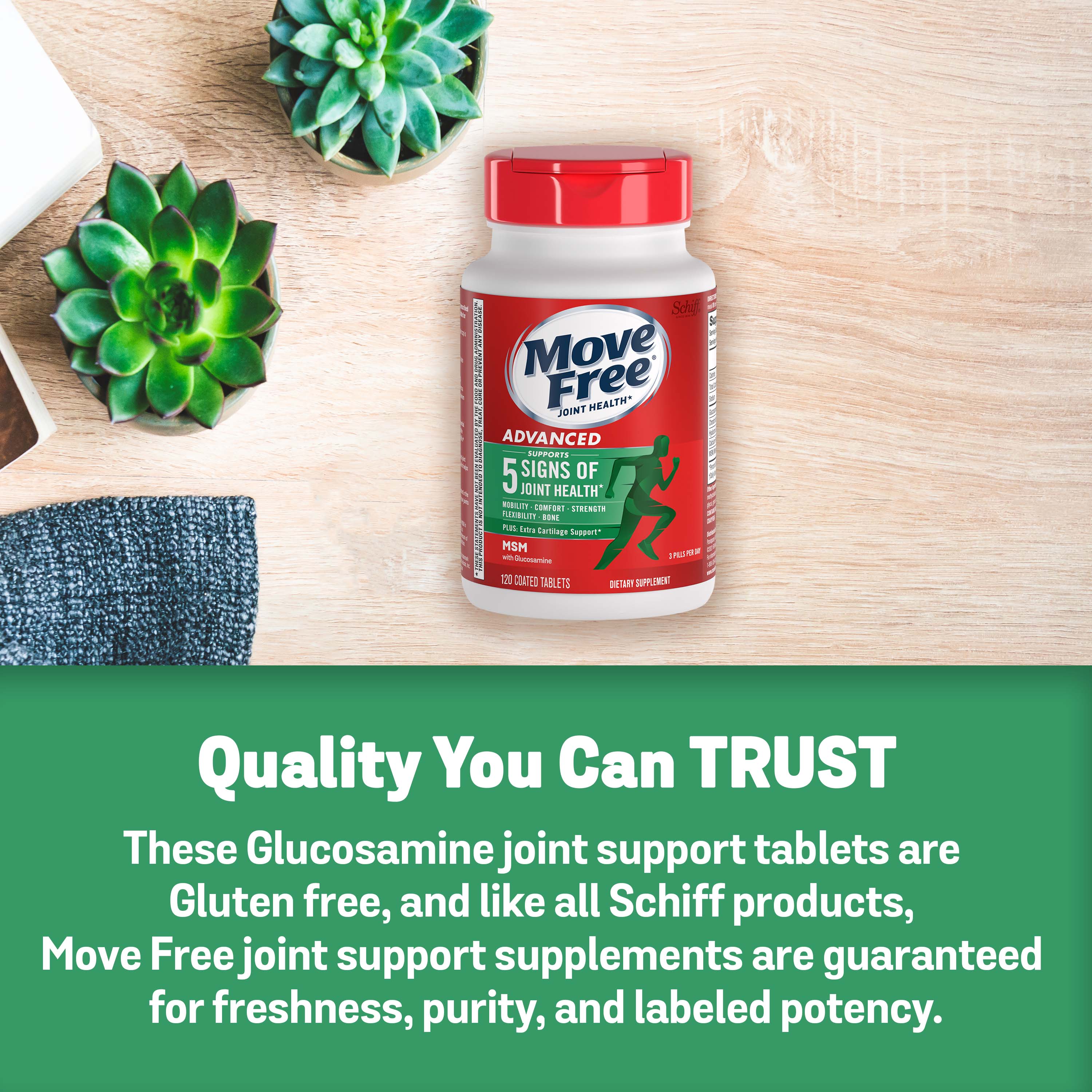 - SUPPORTS 5 SIGNS OF JOINT HEALTH: Move Free Advanced supports Mobility, Comfort, Flexibility, Bone & Muscle, PLUS it provides extra cartilage support.*