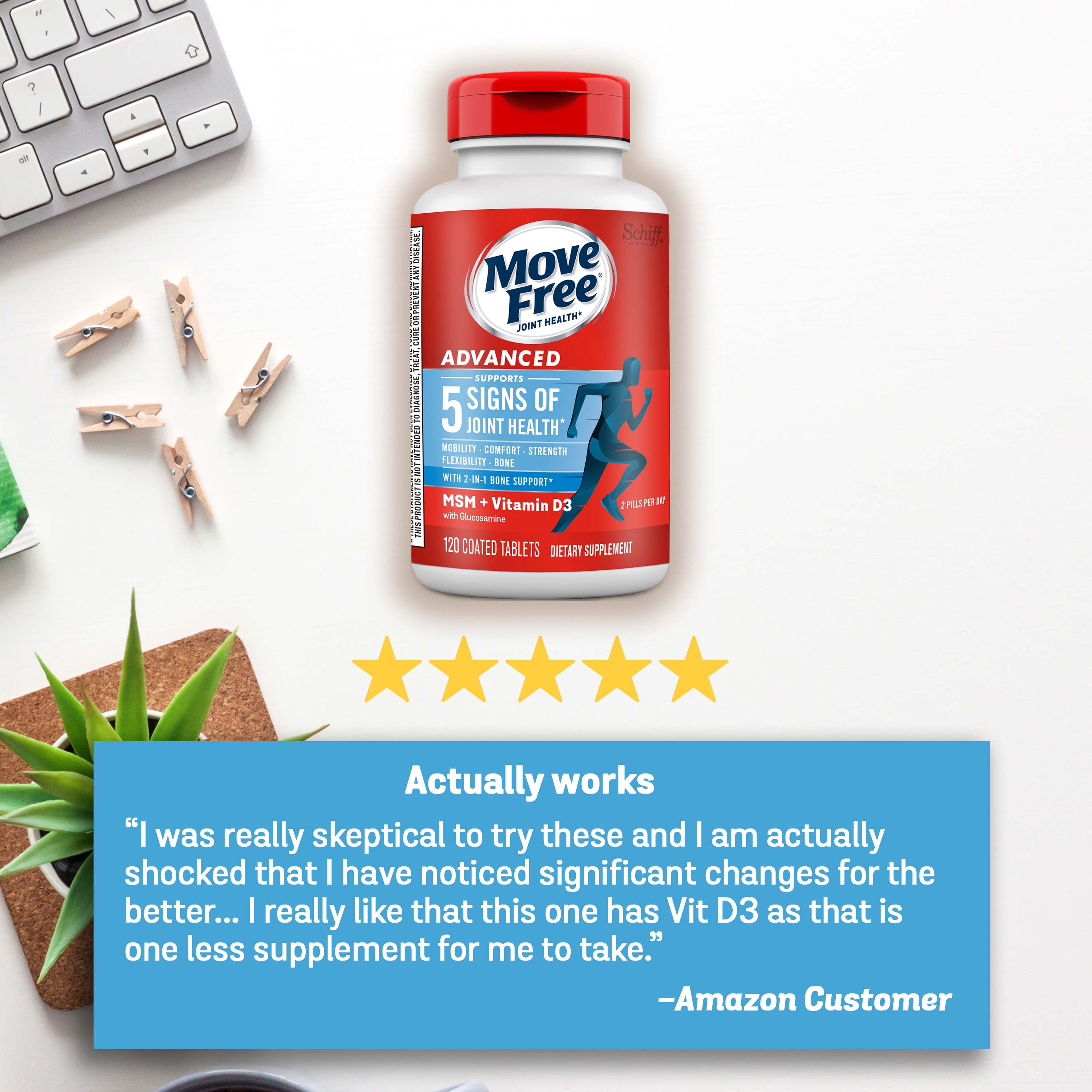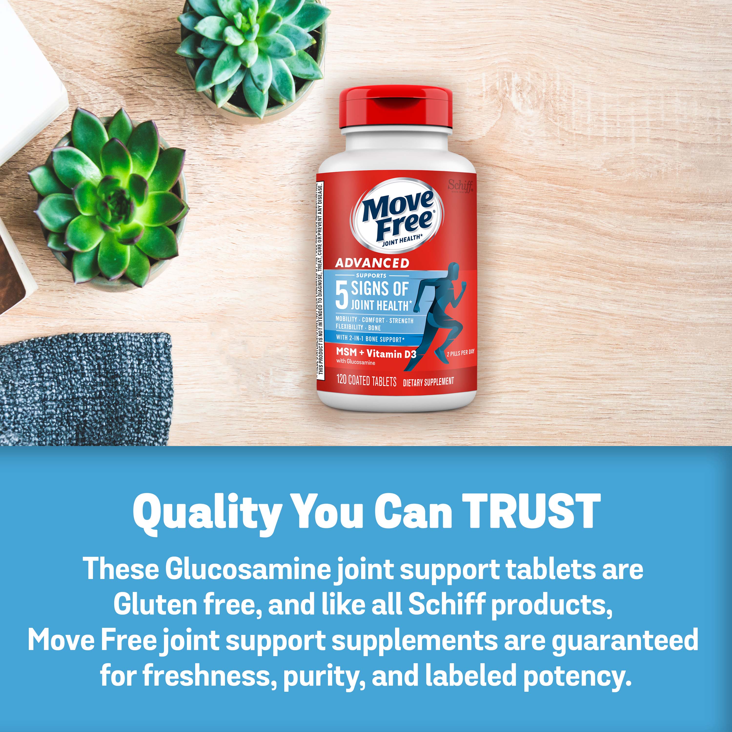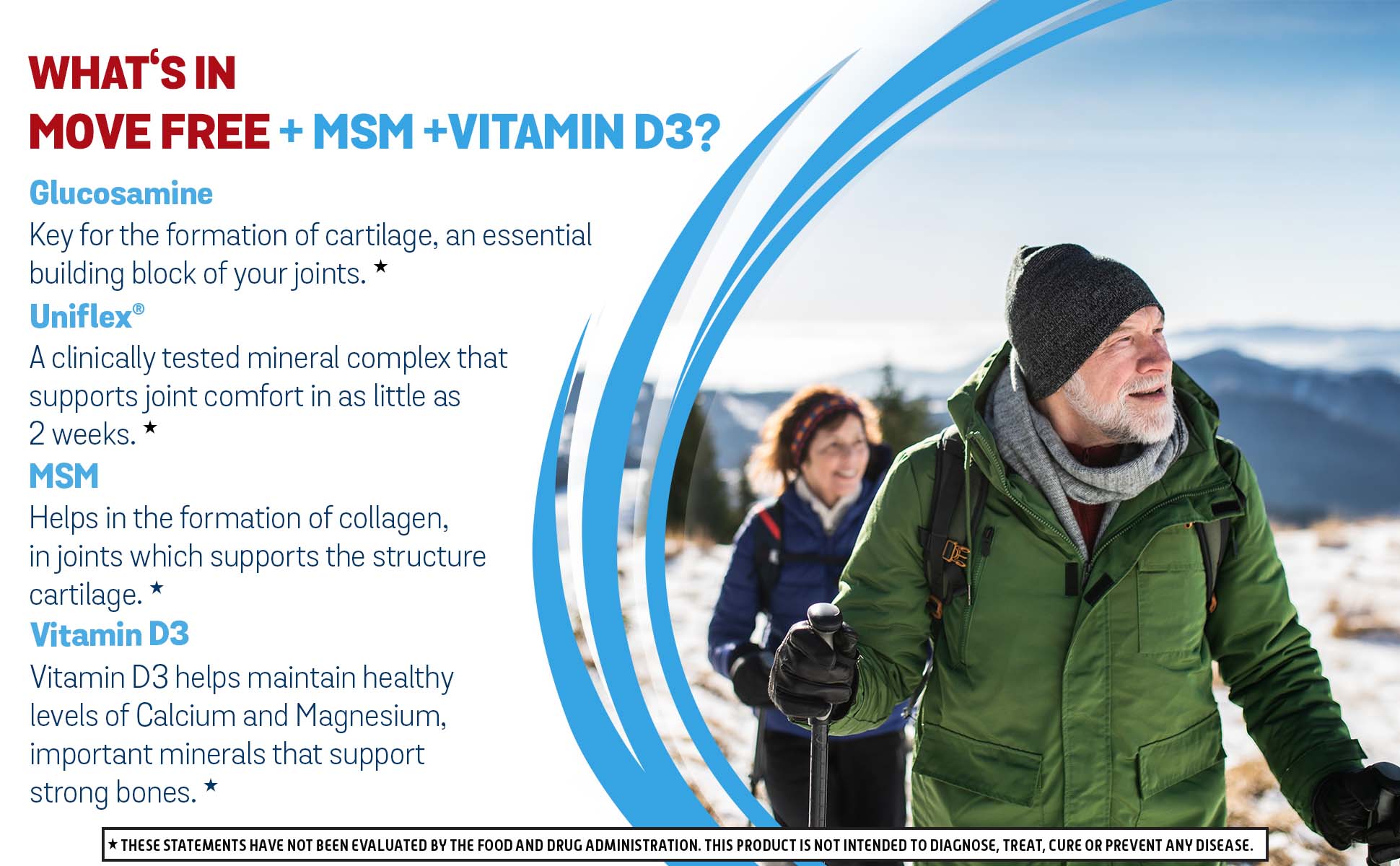 - JOINT, BONE & IMMUNE HEALTH: Move Free Advanced supports Mobility, Comfort, Flexibility, Bone & Muscle. PLUS, MSM provides extra cartilage support and Vitamin D3 provides Bone & Immune Support.*