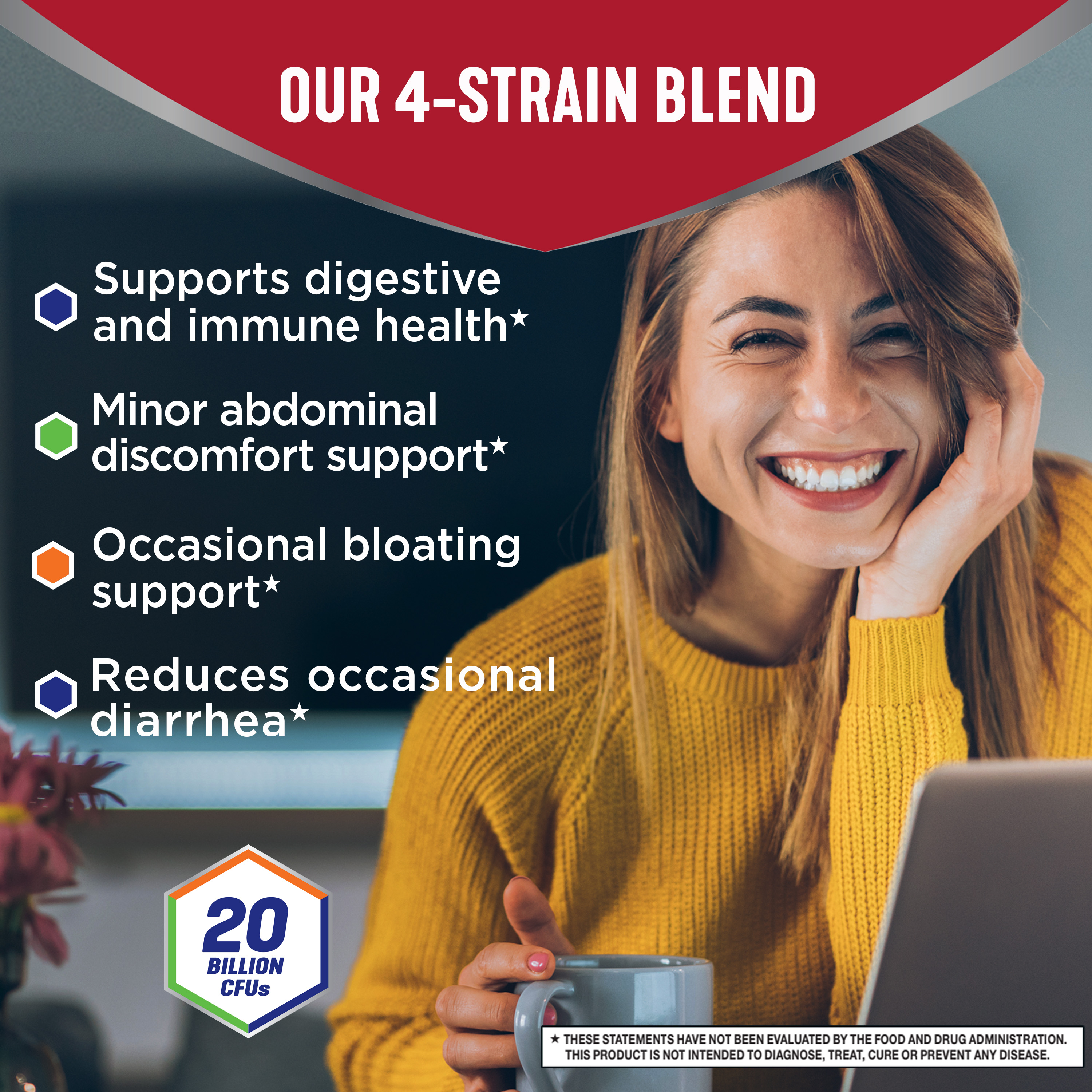 - CLINICALLY PROVEN MULTI-STRAIN PROBIOTIC BLEND: A unique 4-strain blend of probiotics with 20 billion CFUs per serving. Clinically proven probiotic blend that helps support digestive health.*