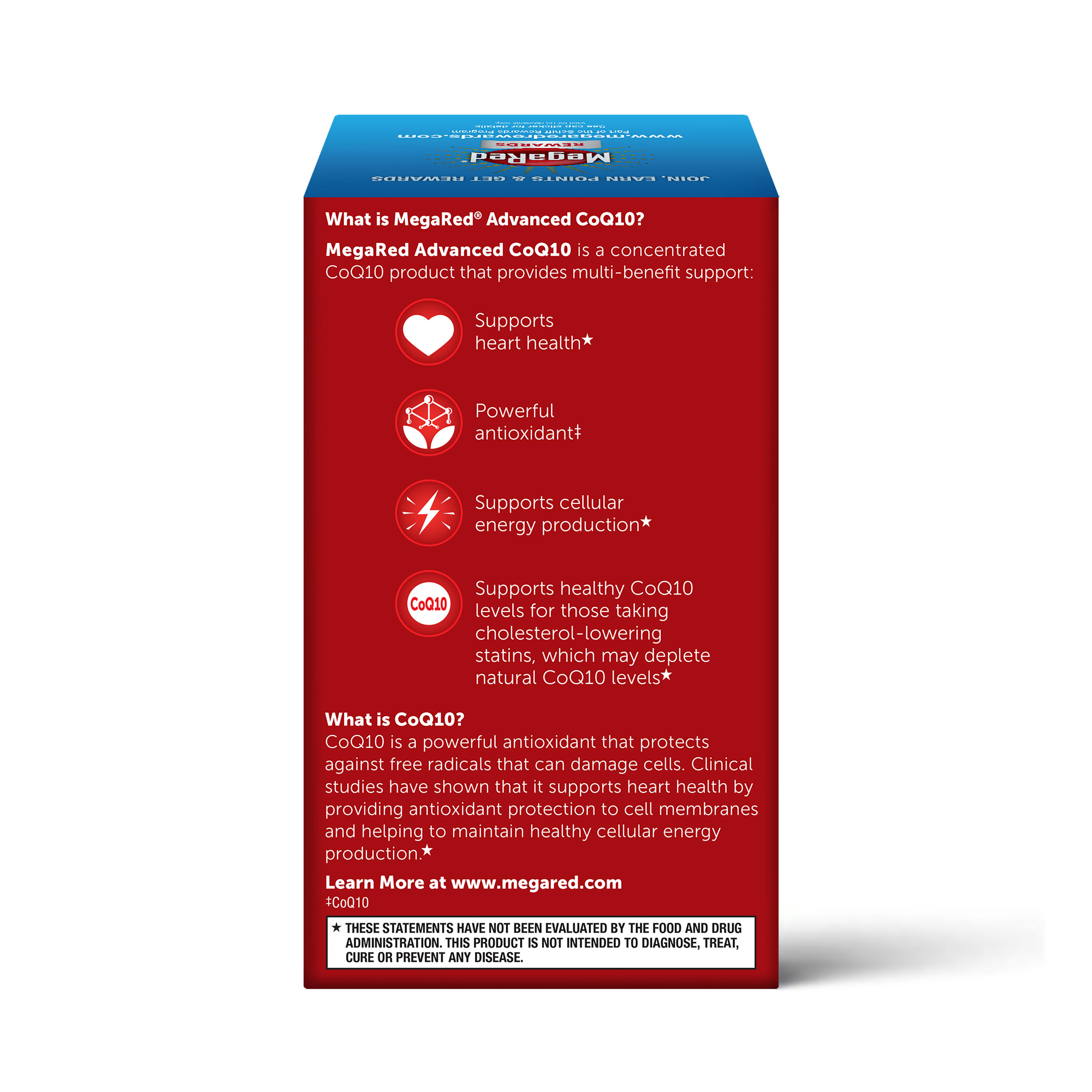- SUPPORTS HEALTHY COQ10 LEVELS: MegaRed Advanced CoQ10 supports healthy CoQ10 levels for those taking cholesterol-lowering statins, which may deplete natural CoQ10 levels.*