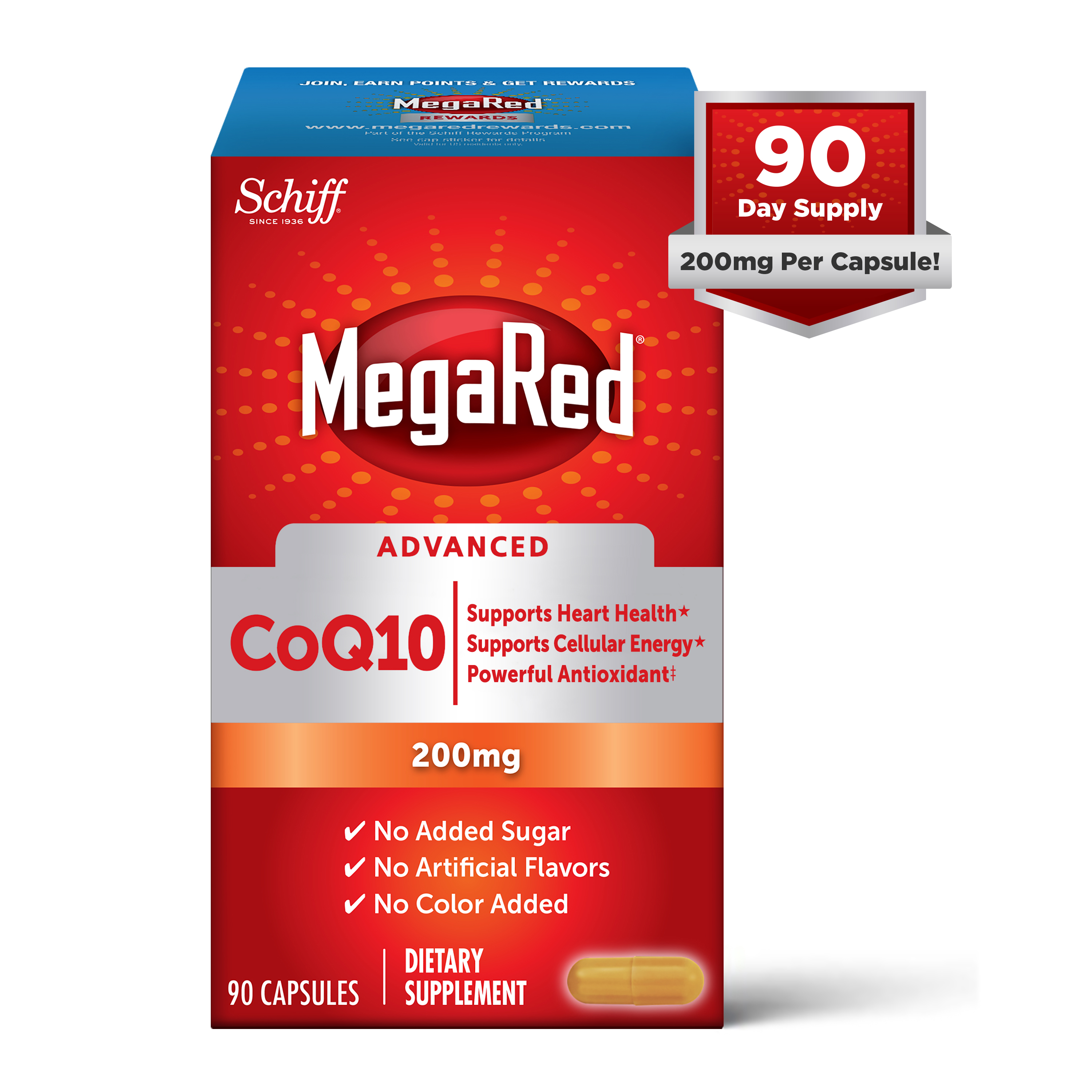 - DIRECTIONS FOR USE: Adults take one (1) capsule daily. MegaRed Advanced CoQ10 provides 90 servings per box!