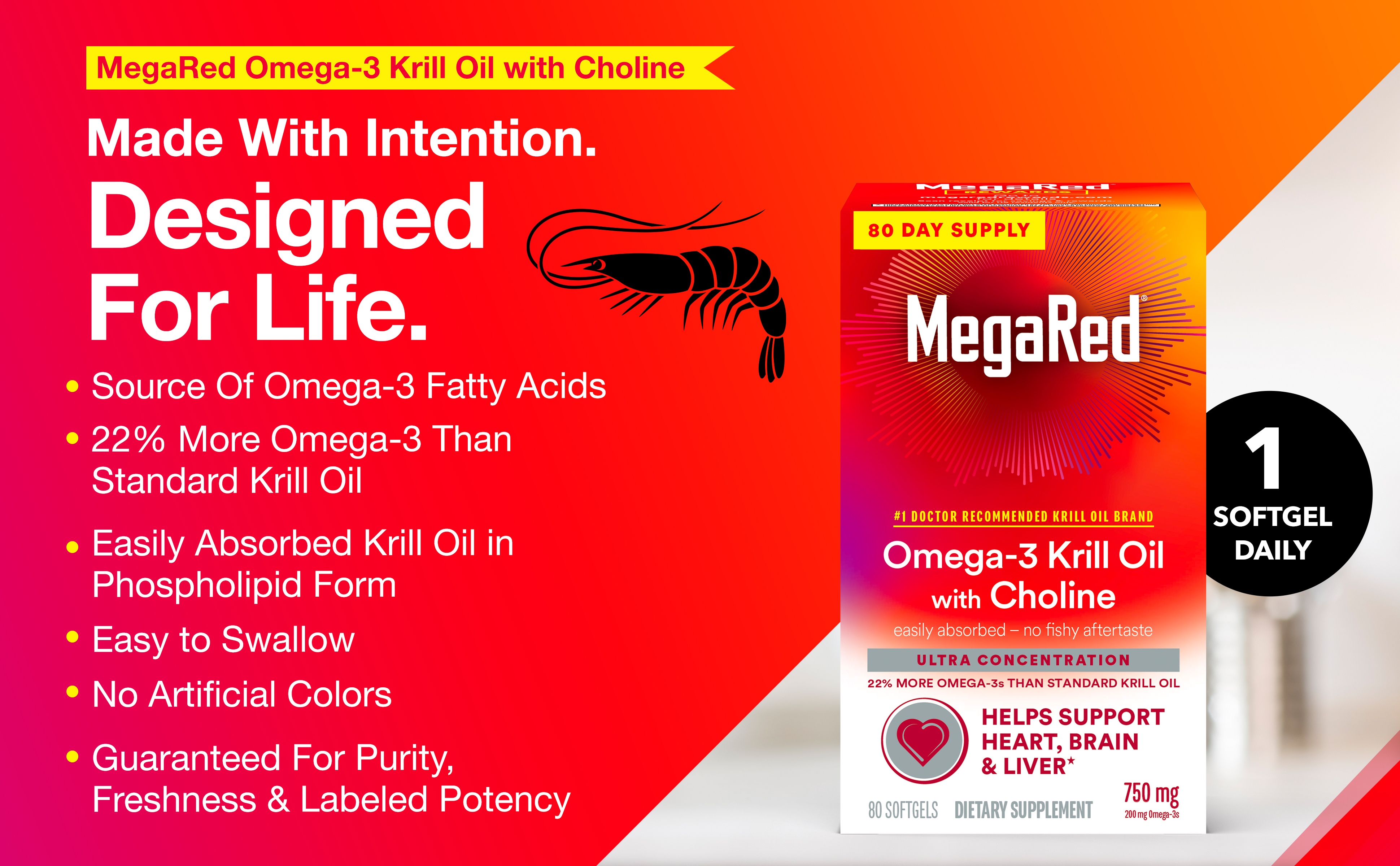 - LIVER HEALTH SUPPORT: With 55mg Choline, this MegaRed helps support liver health so you can live a healthier and bolder life.*