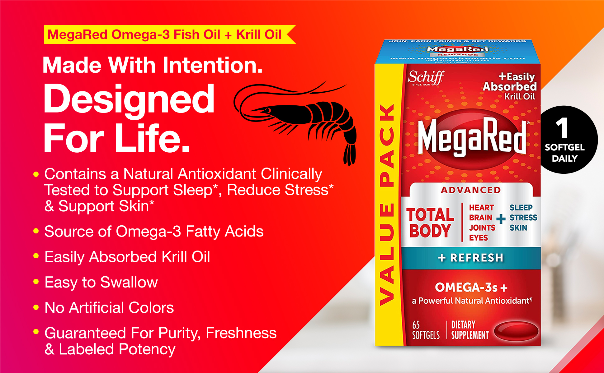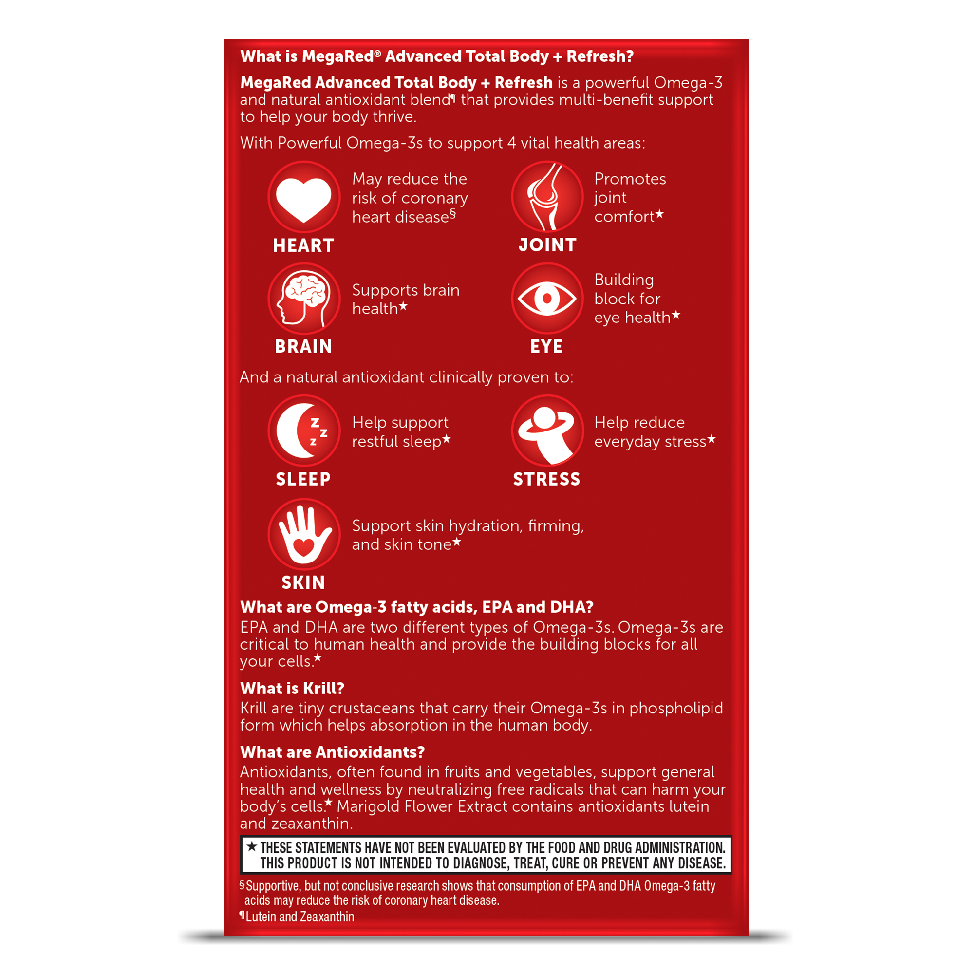- WHAT IS MEGARED TOTAL BODY + REFRESH: A powerful Omega-3 and natural antioxidant blend¶ that provides multi-benefit support to help your body thrive.