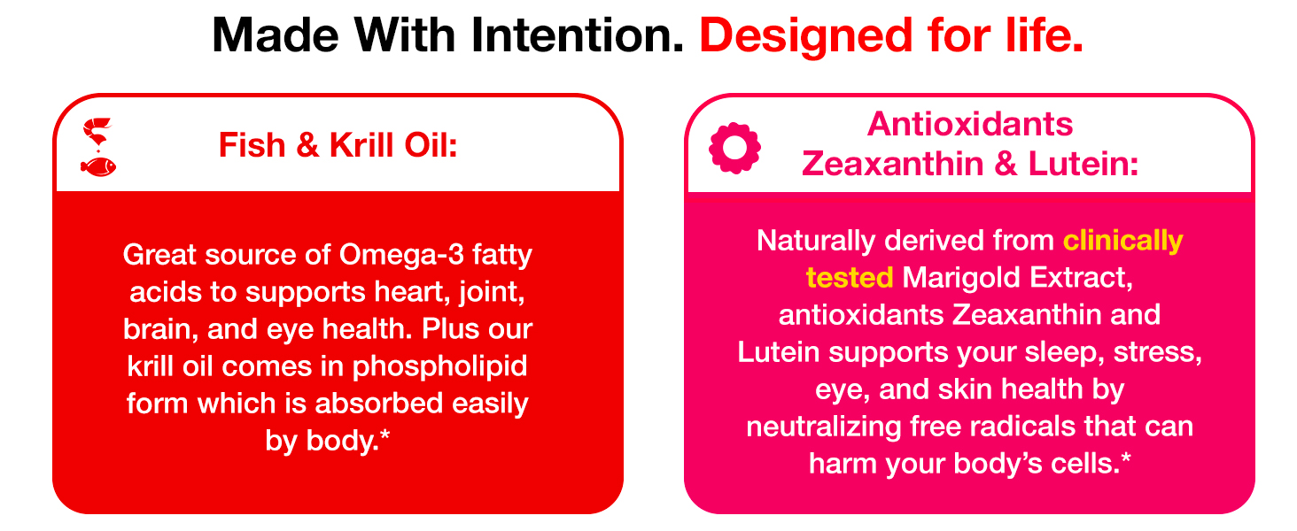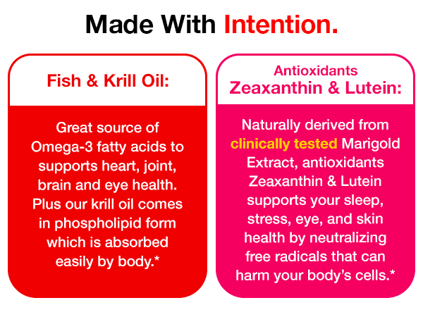- PLUS EASILY ABSORBED KRILL OIL: Krill is one of earth’s most abundant and sustainable organisms.