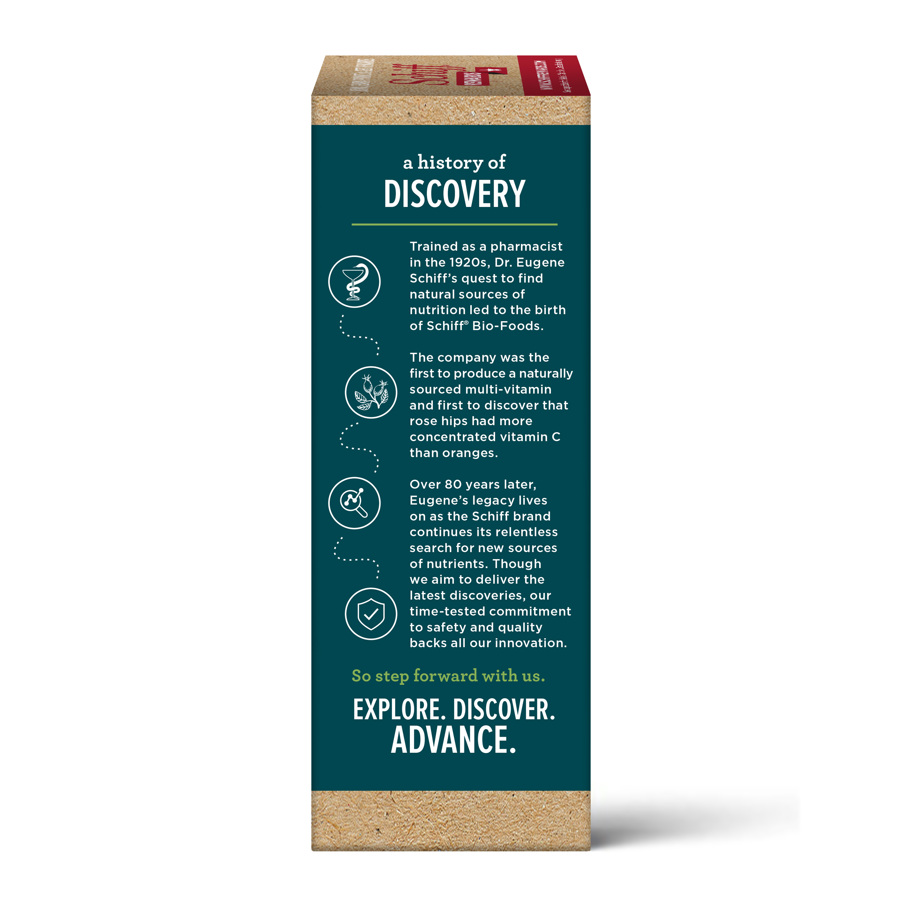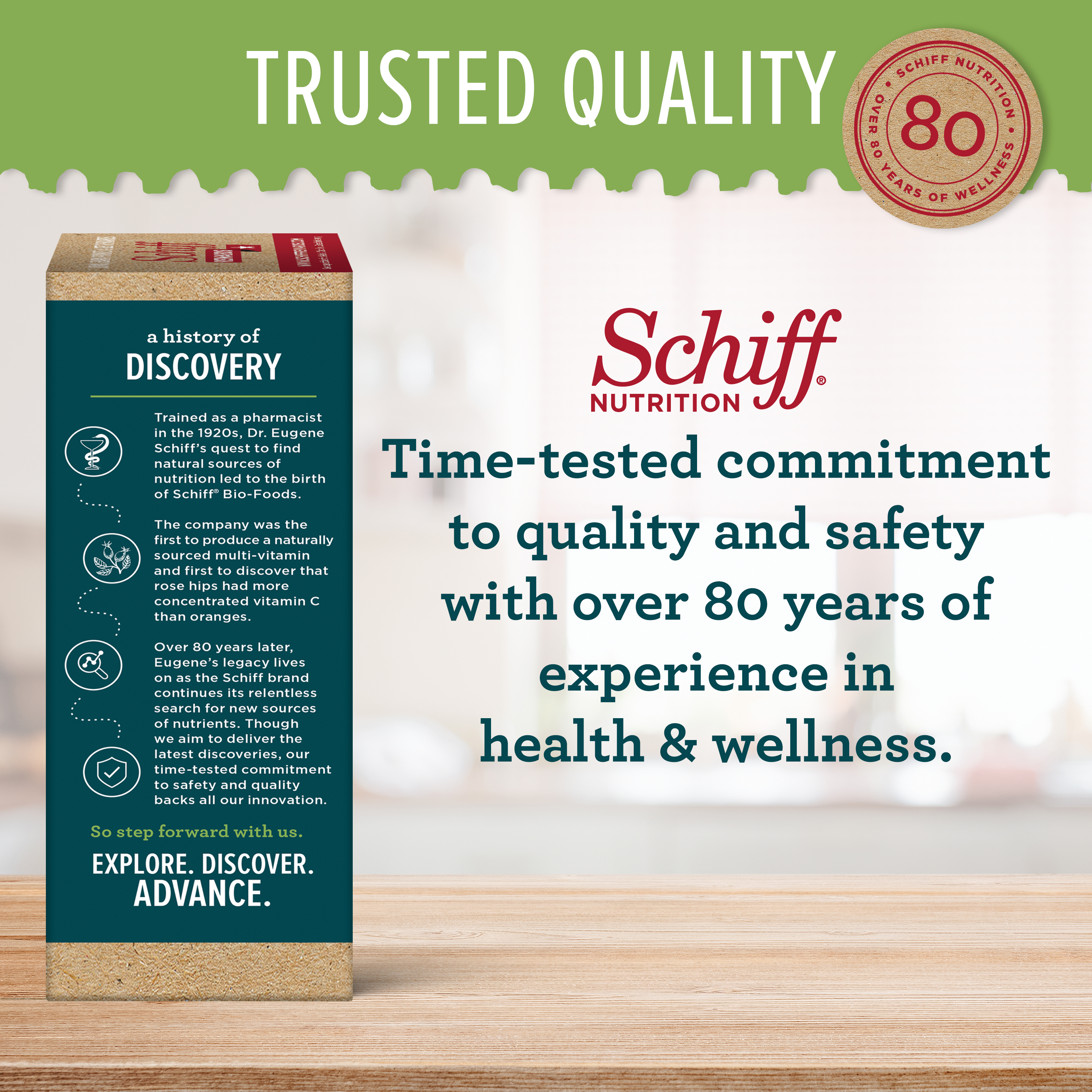 - A BRAND YOU CAN TRUST: Dr. Eugene Schiff began his quest to find natural sources of nutrition over 80 years ago and Schiff was the first company to produce a naturally sourced multi-vitamin. Eugene's legacy lives on as the Schiff brand continues its relentless search for new sources of nutrients. Our commitment to safety & quality backs all our innovation. We guarantee our products' purity, freshness and labeled potency.