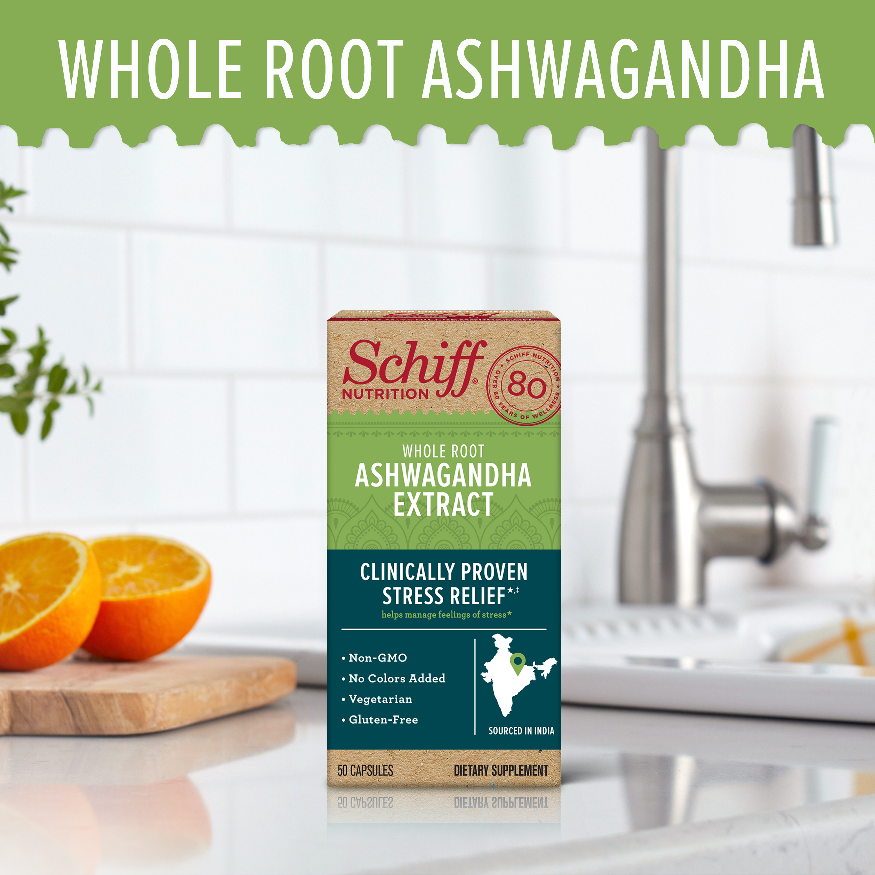- HIGH QUALITY INGREDIENTS & TRANSPARENTLY SOURCED ASHWAGANDHA: At Schiff we use only high quality ingredients. These Whole Root Ashwagandha Extract capsules are VEGETARIAN, NON-GMO, and GLUTEN-FREE with NO COLORS ADDED. We've specially crafted this product to have high quality ingredients that you can trust. Our Ashwagandha is sourced in India and is guaranteed for purity & freshness.