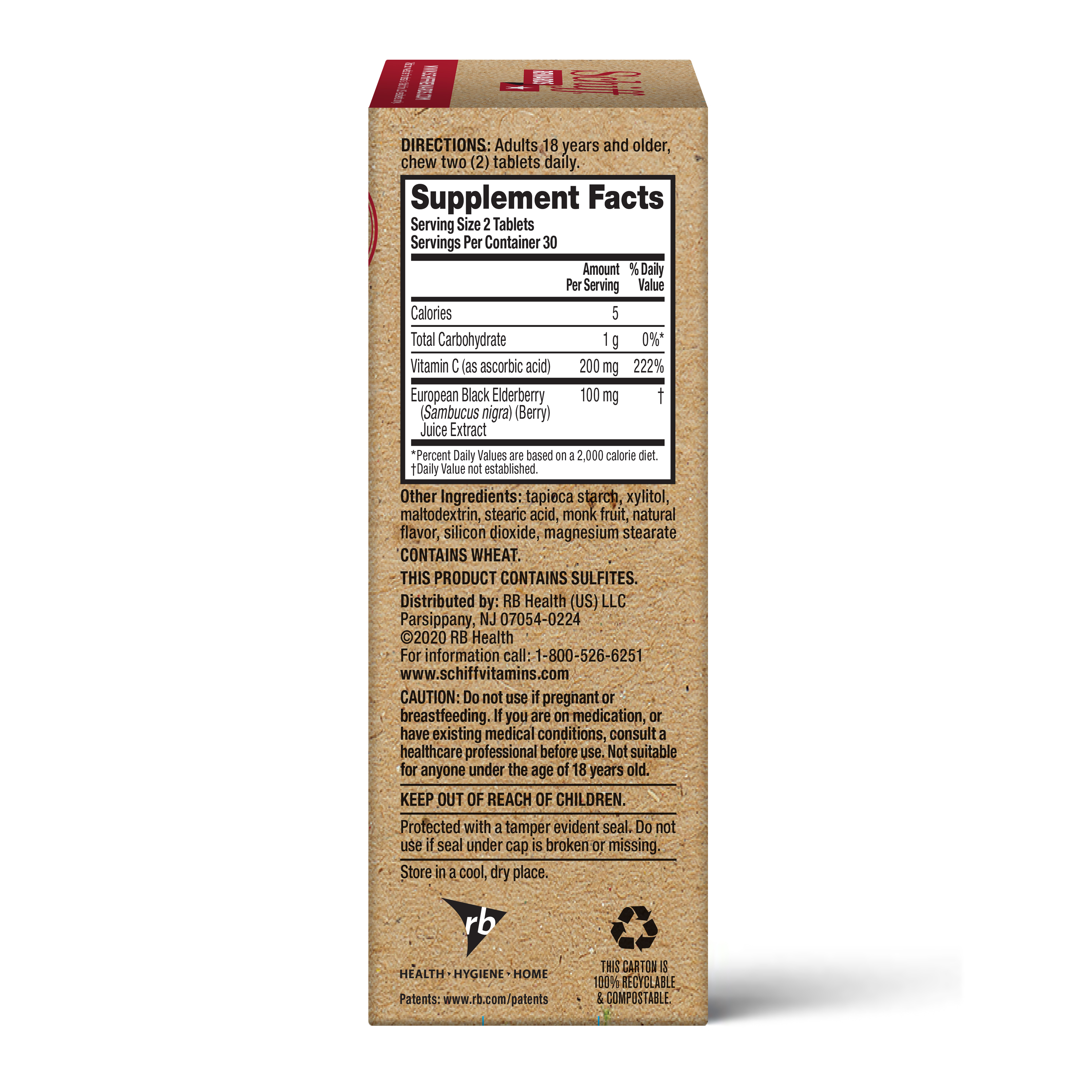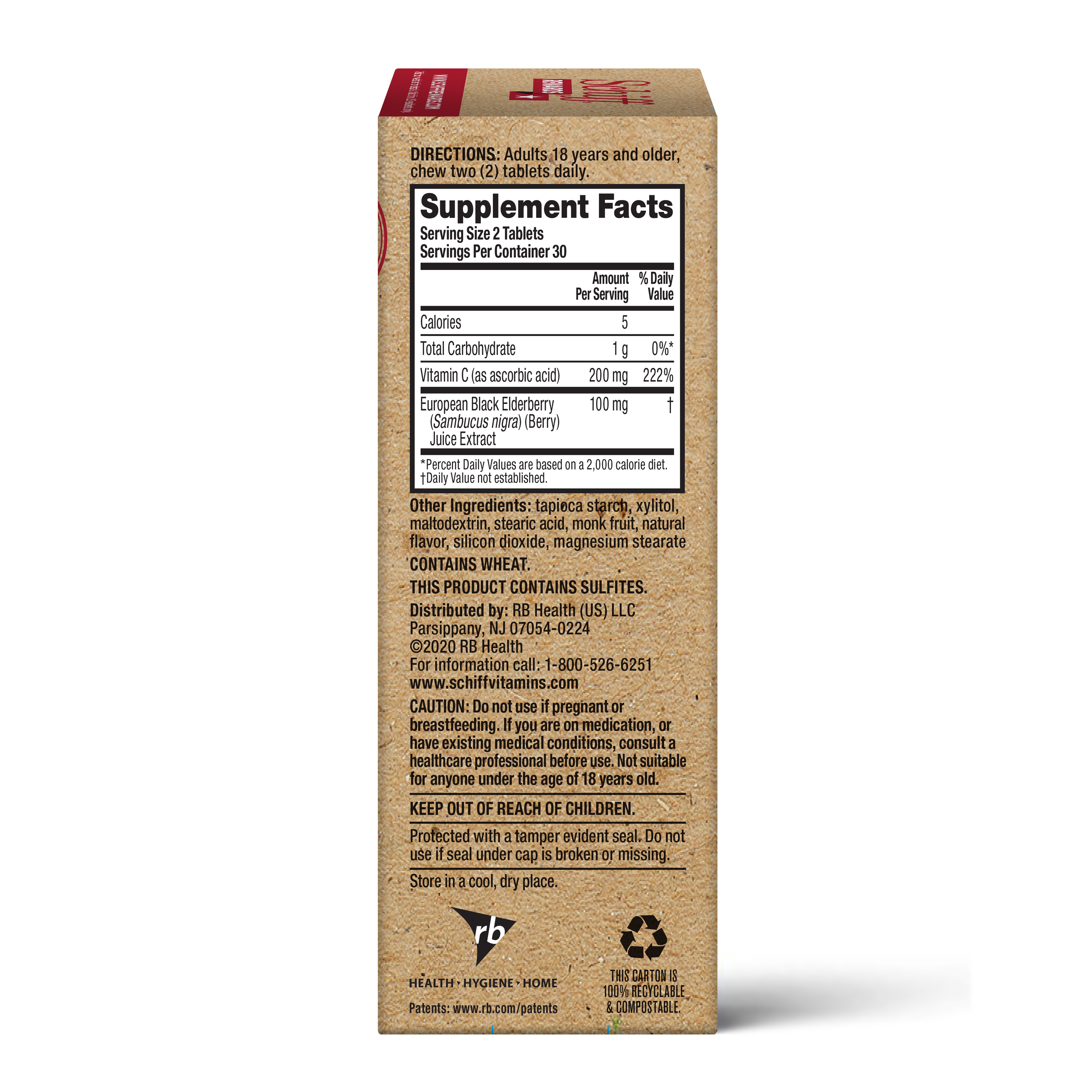 SCHIFF® Elderberry Extract + Vitamin C - Chewable Tablets 12/60 ct.