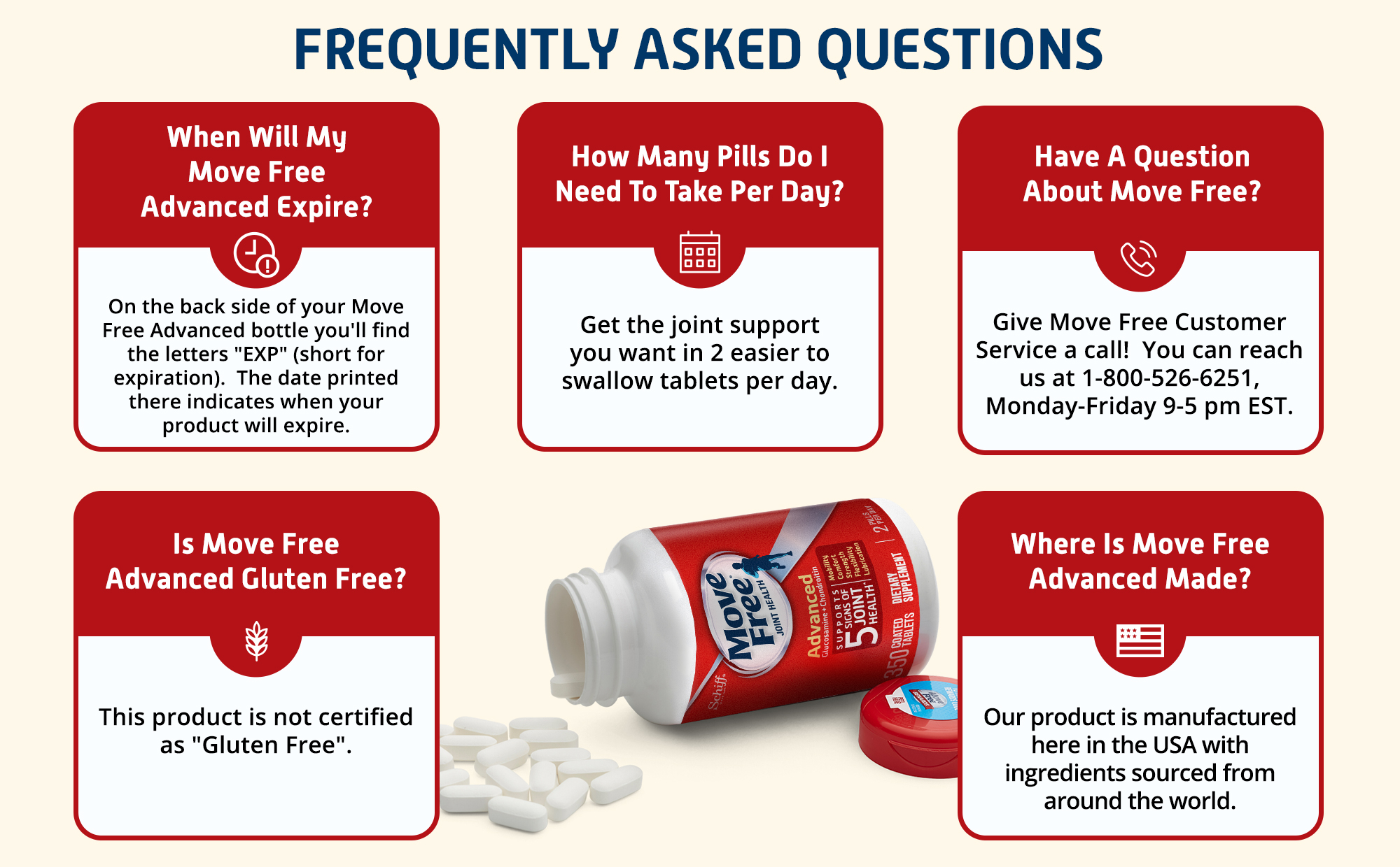 - HAVE A QUESTION ABOUT MOVE FREE: Give Move Free Customer Service a call! You can reach us at 1-800-526-6251, Monday-Friday 9-5 pm EST.