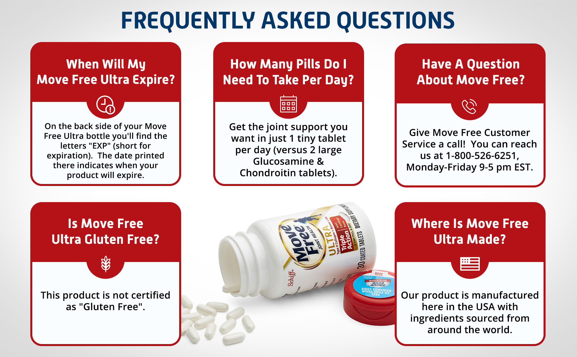 - HAVE A QUESTION ABOUT MOVE FREE: Give Move Free Customer Service a call! You can reach us at 1-800-526-6251, Monday-Friday 9-5 pm EST.