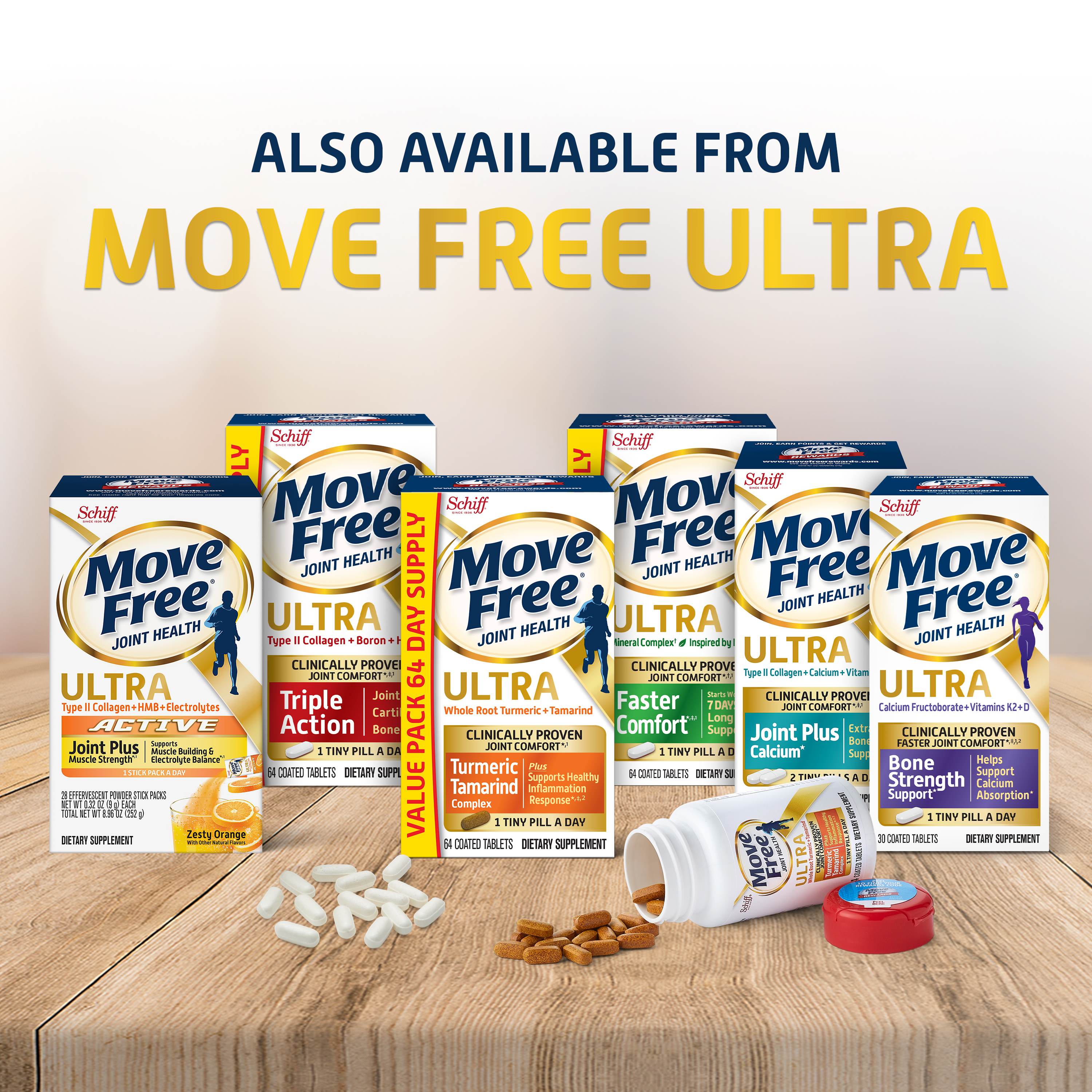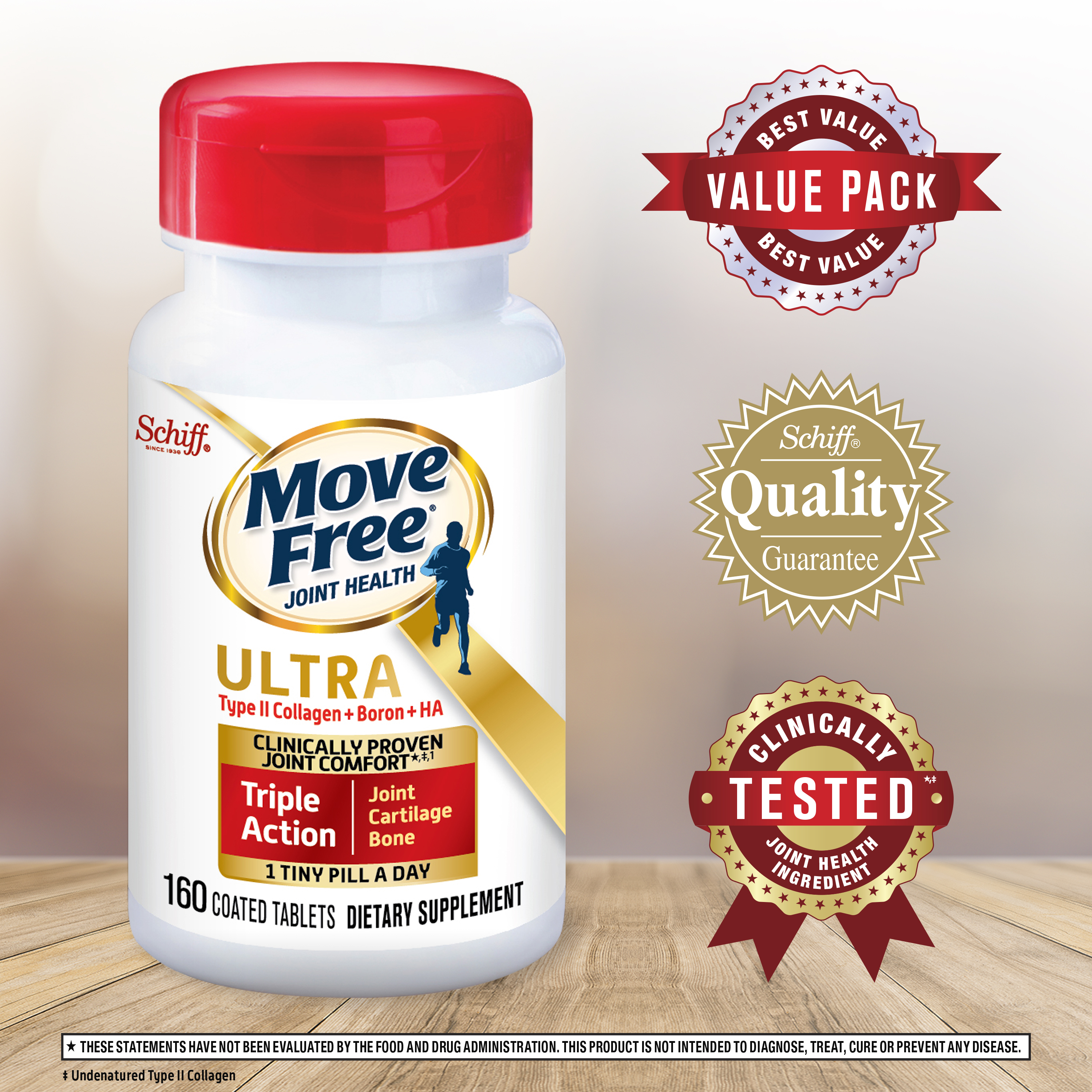 - DID YOU KNOW: Move Free Ultra Triple Action has clinically proven Type II Collagen, which is proven to deliver better joint comfort that improves over time.*¹ Get the joint support you want in just 1 tiny pill per day!
