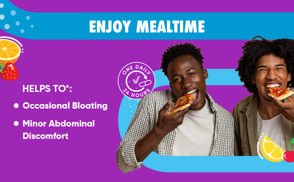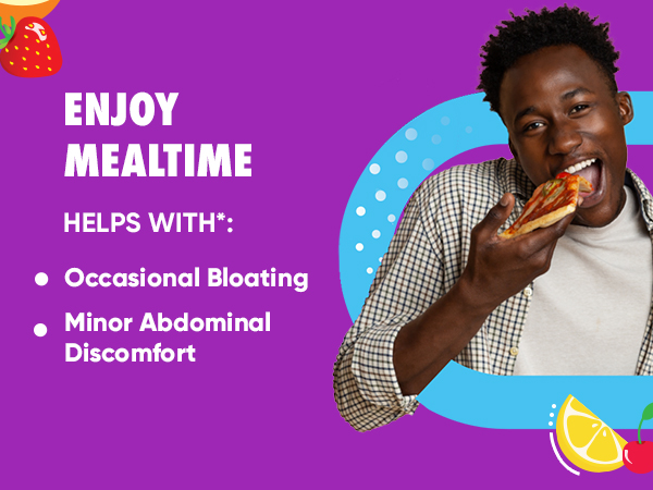 - Helps lessen minor abdominal discomfort, bloating and may relieve occasional diarrhea