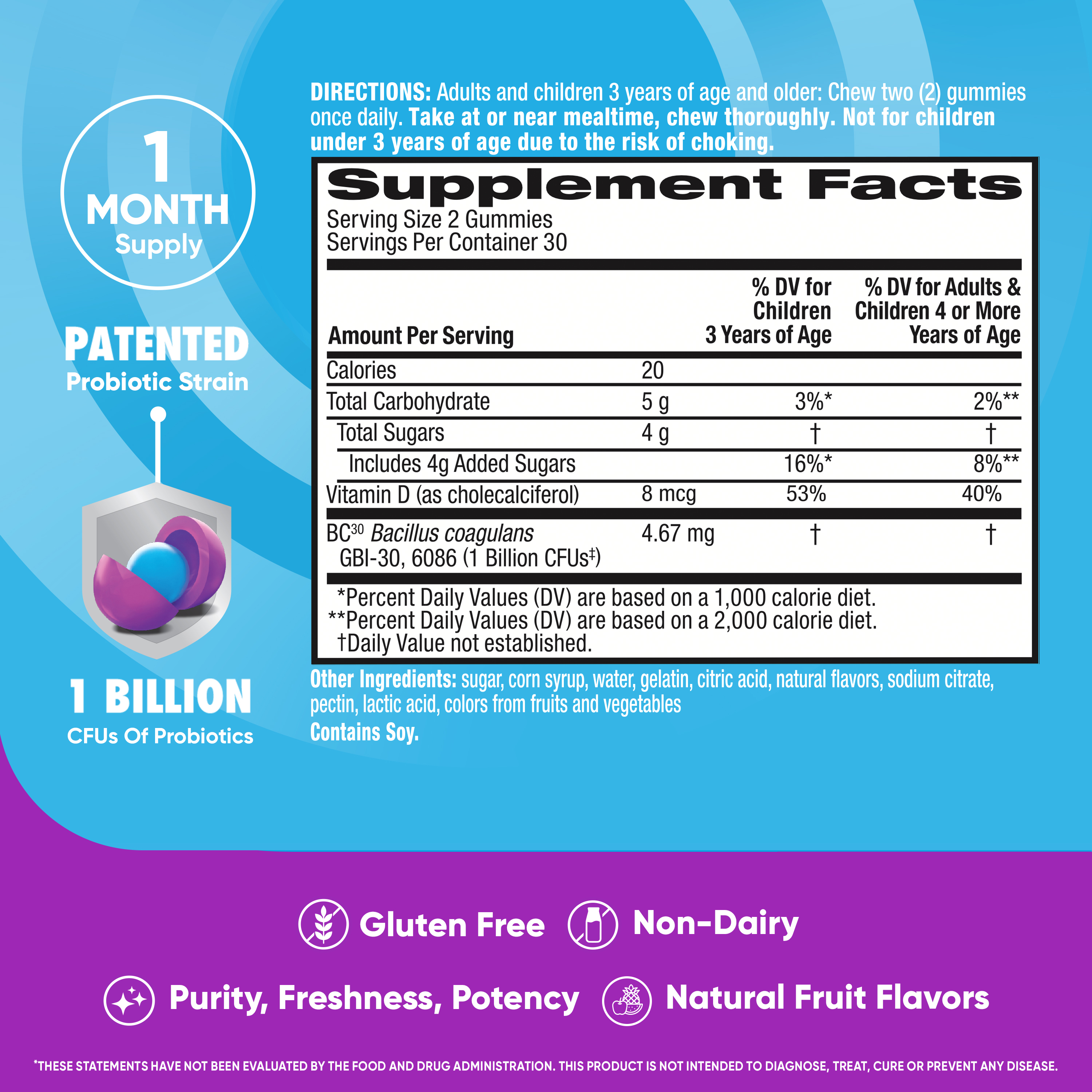 - Delicious natural fruit-flavored gummies with no artificial flavors