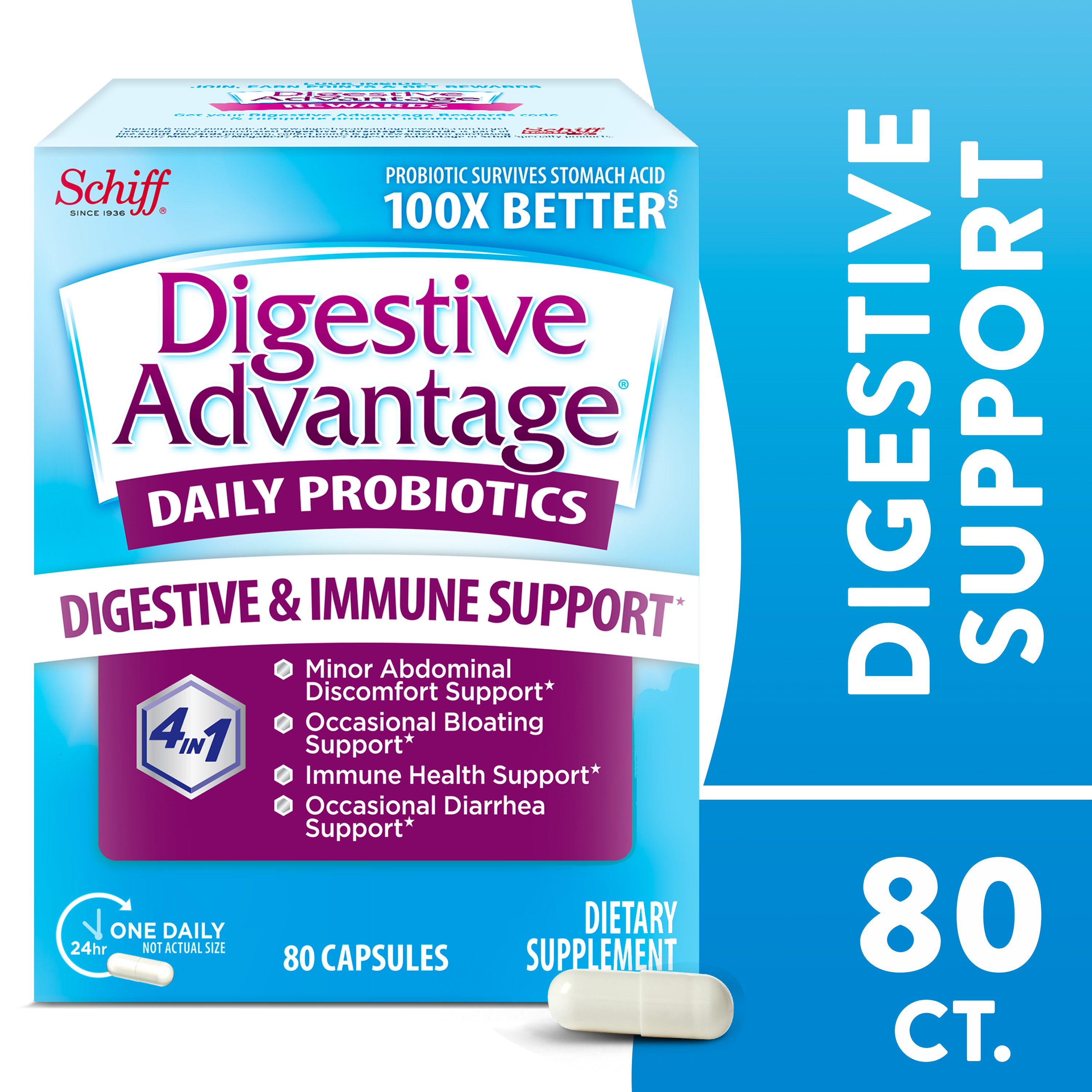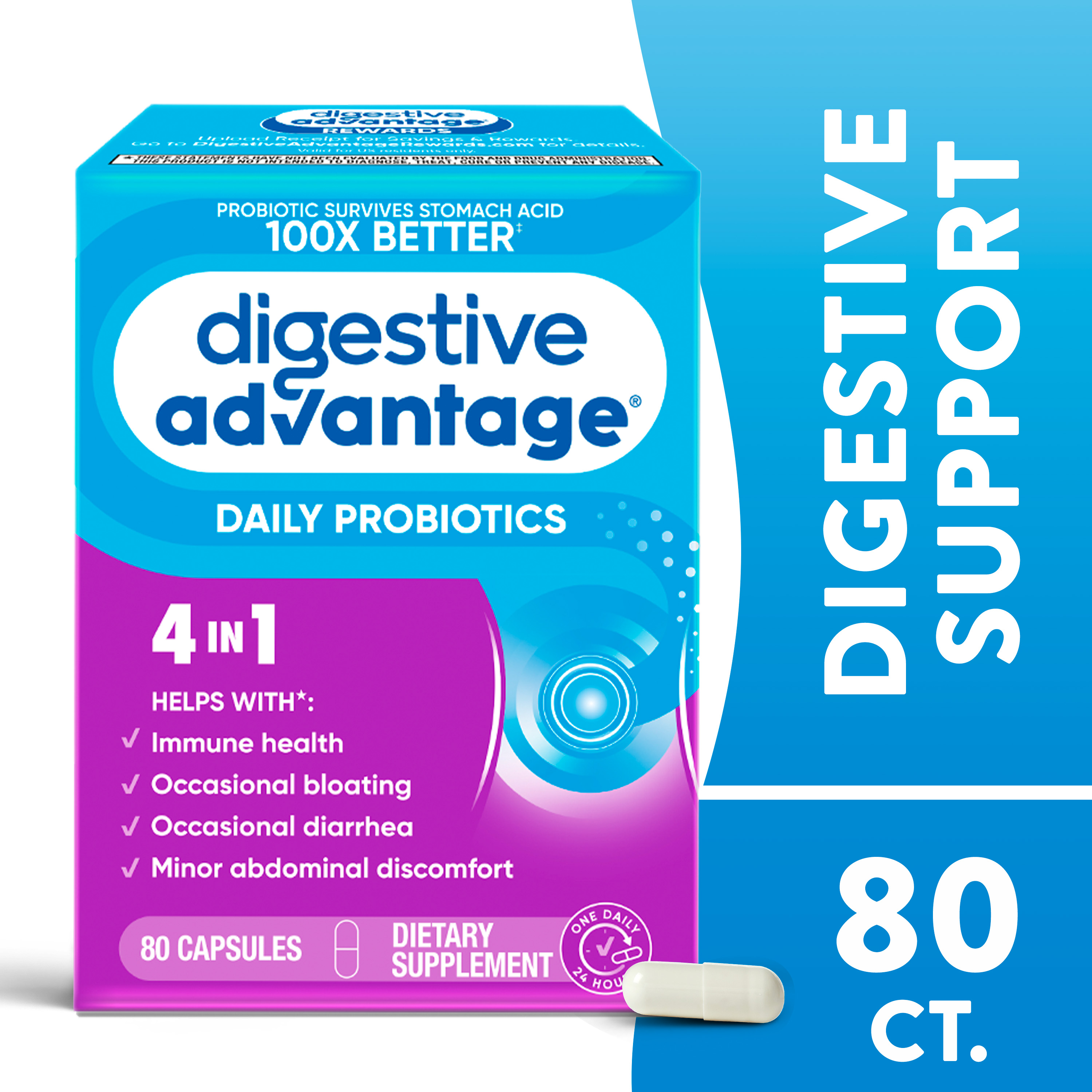 - IMMUNITY: 70% of your immune system is in your digestive tract. The good bacteria in Digestive Advantage Daily Probiotics helps support the immune cells in your gut.