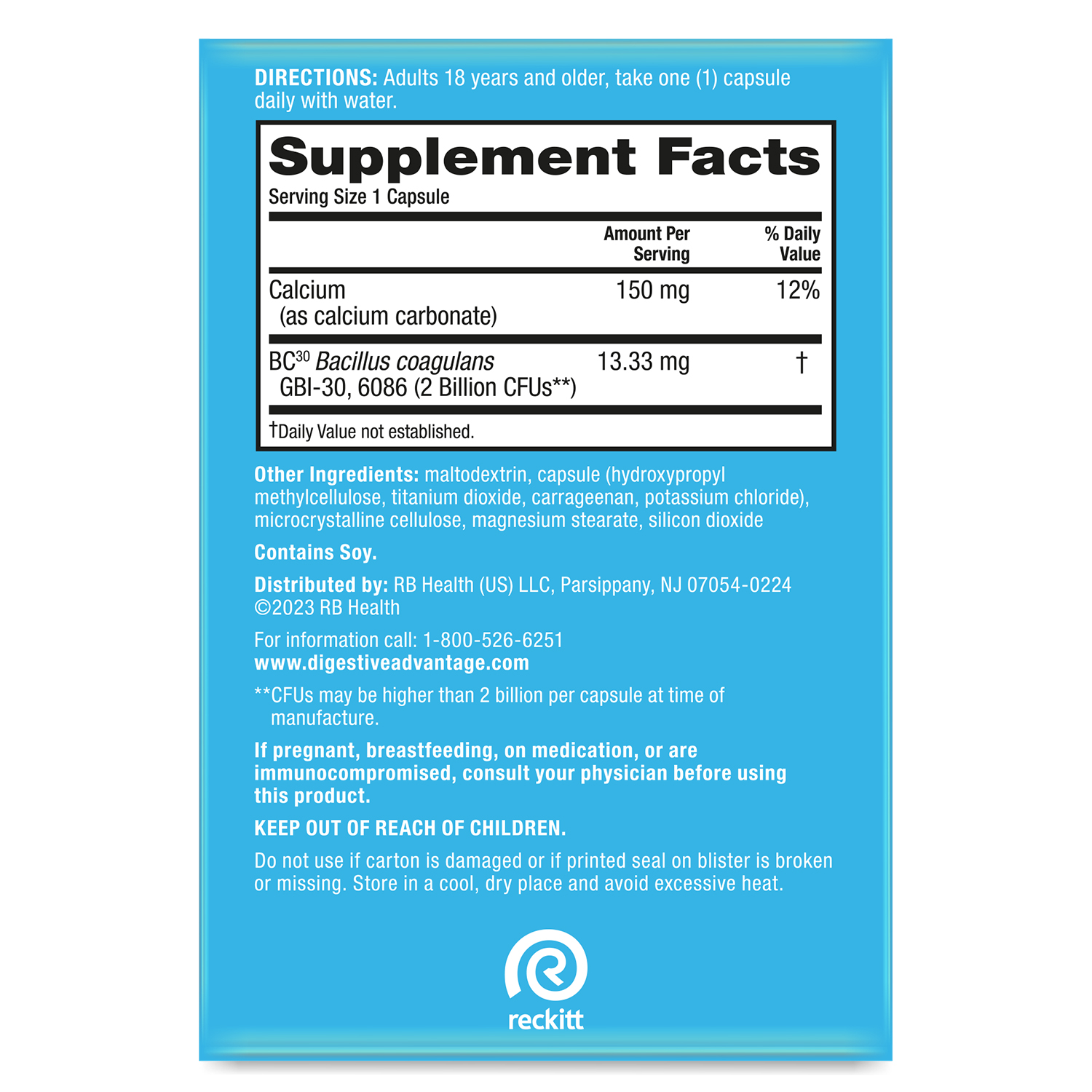 - 100X BETTER: 2 Billion CFUs of patented BC-30 probiotics survives stomach acid 100X BETTER vs. yogurt‡