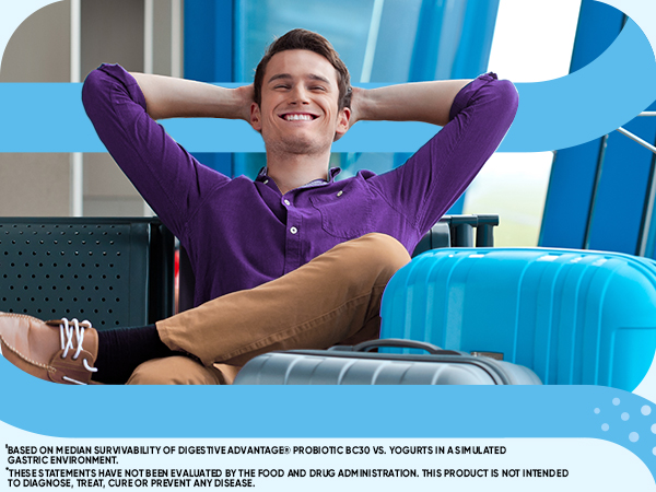 - ‡Based on median survivability of Digestive Advantage® Probiotic BC30 vs. yogurts in a simulated gastric environment.